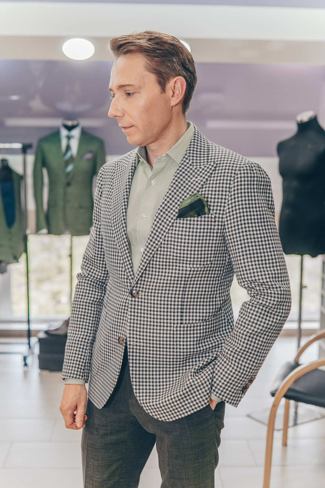 Наши фишки, считаю, в кастомизации всех наших продуктов. Это и посадка изделия – на другом человеке этот же пиджак будет сидеть совсем по другому. Это и ткань, и фурнитура, которую мы подбираем в зависимости от образа жизни, привычек данного клиента. Это и монограмма на пиджаке или сорочки, а вышить мы можем все, что пожелает клиент.