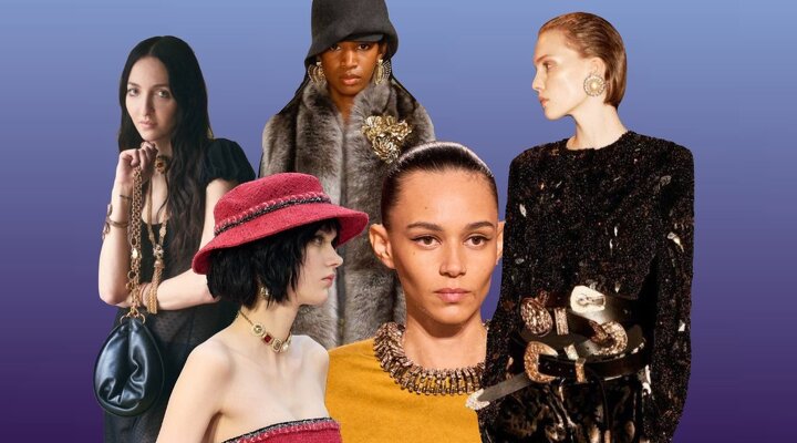 Греметь тяжеловесными украшениями не стесняются и худрук Schiaparelli Дэниел Розберри, выбирающий массивные серьги-круги с жемчужными и черными вставками, и Миучча Прада, которая во время показа Miu Miu замиксовала золотистые серьги с акцентной гранд-брошью. Чемена Камали в Chloe голосует за тотальный jewelry-максимализм и наряжает экс-редактора британского Vogue Тиш Вайншток в колье с кисточками и ретро-чокер. А креативный директор Saint Laurent Энтони Ваккарелло решил соблюсти фэшн-баланс и отказался от ювелирной многослойности в пользу самодостаточного колье.