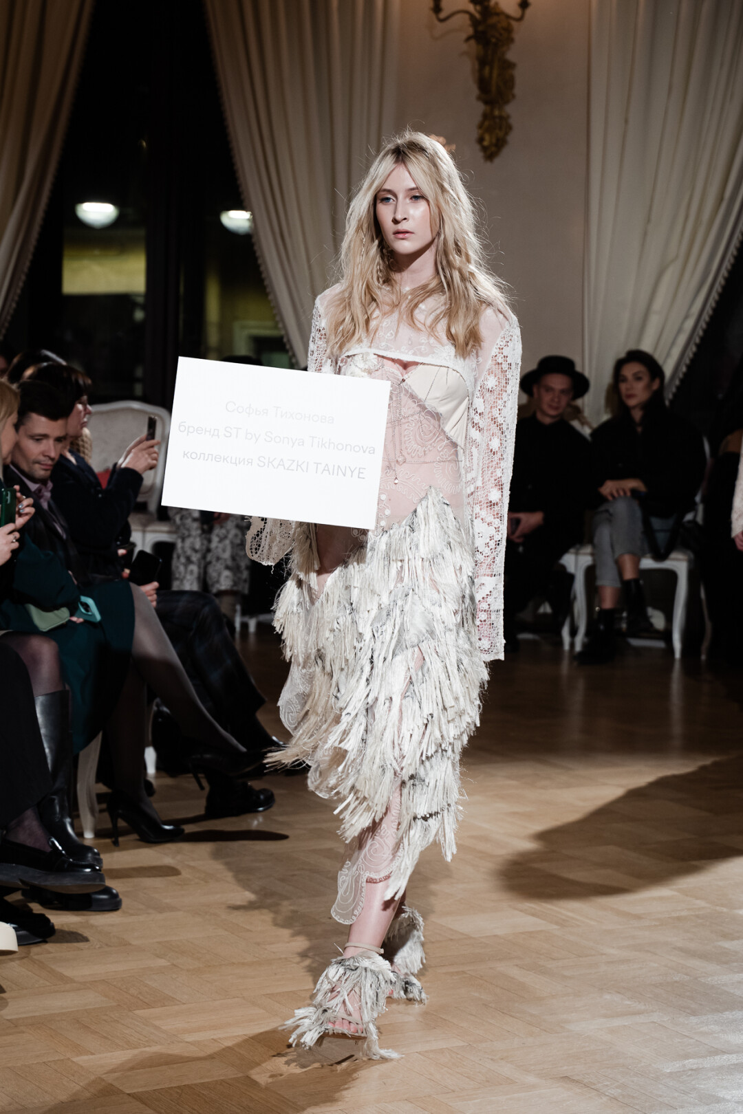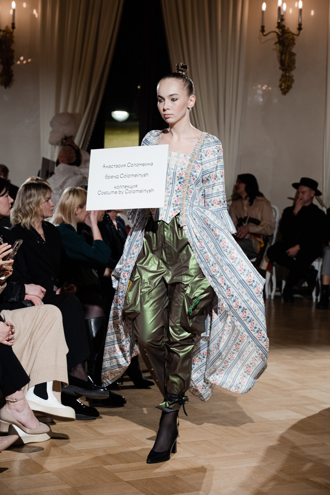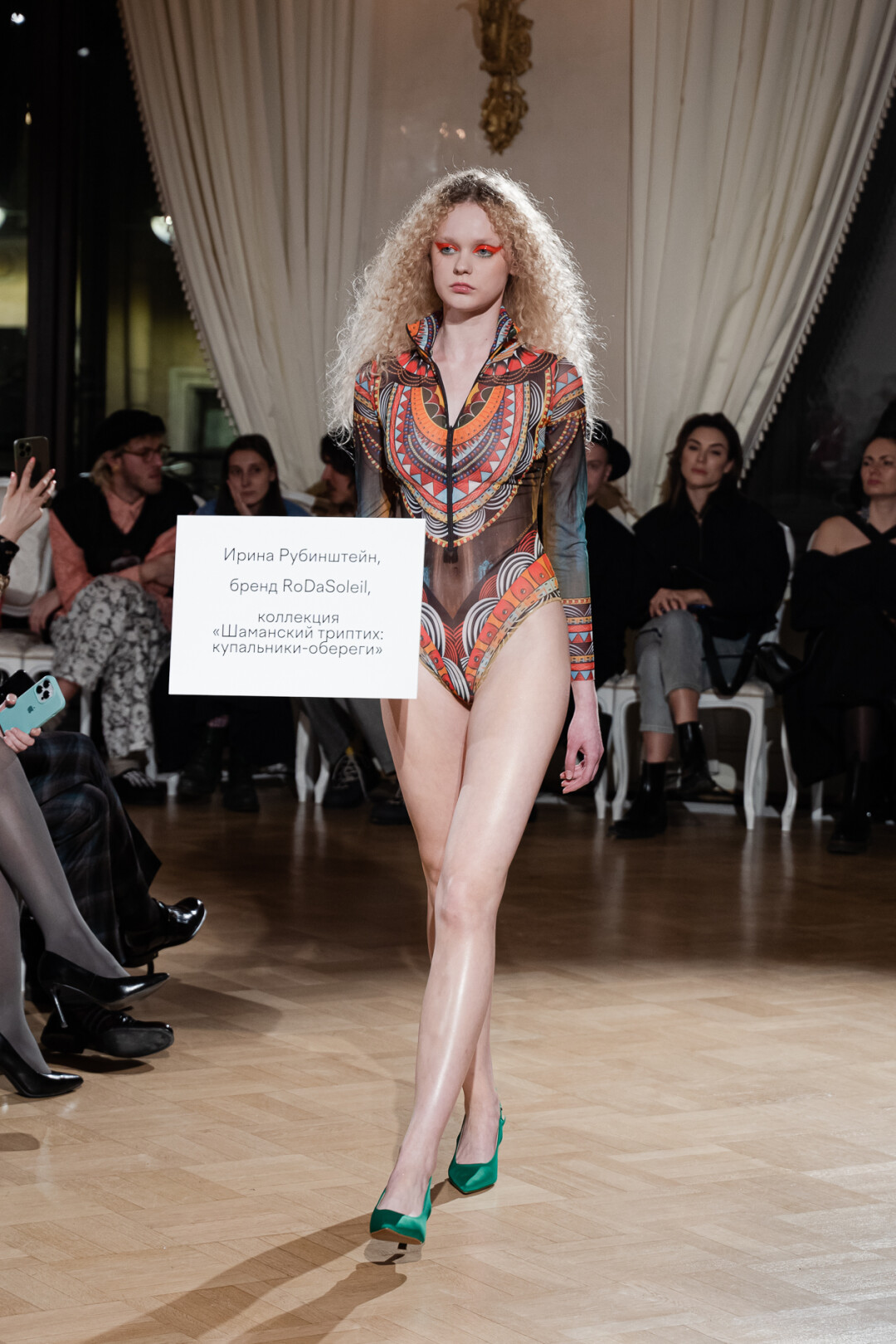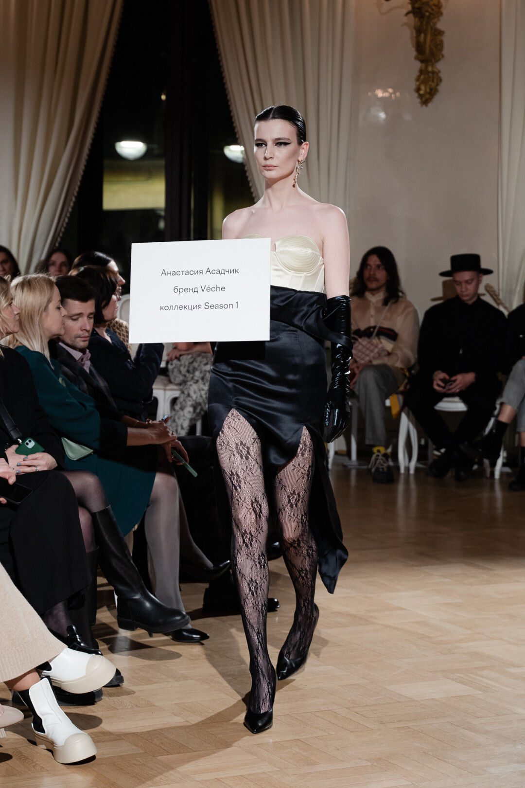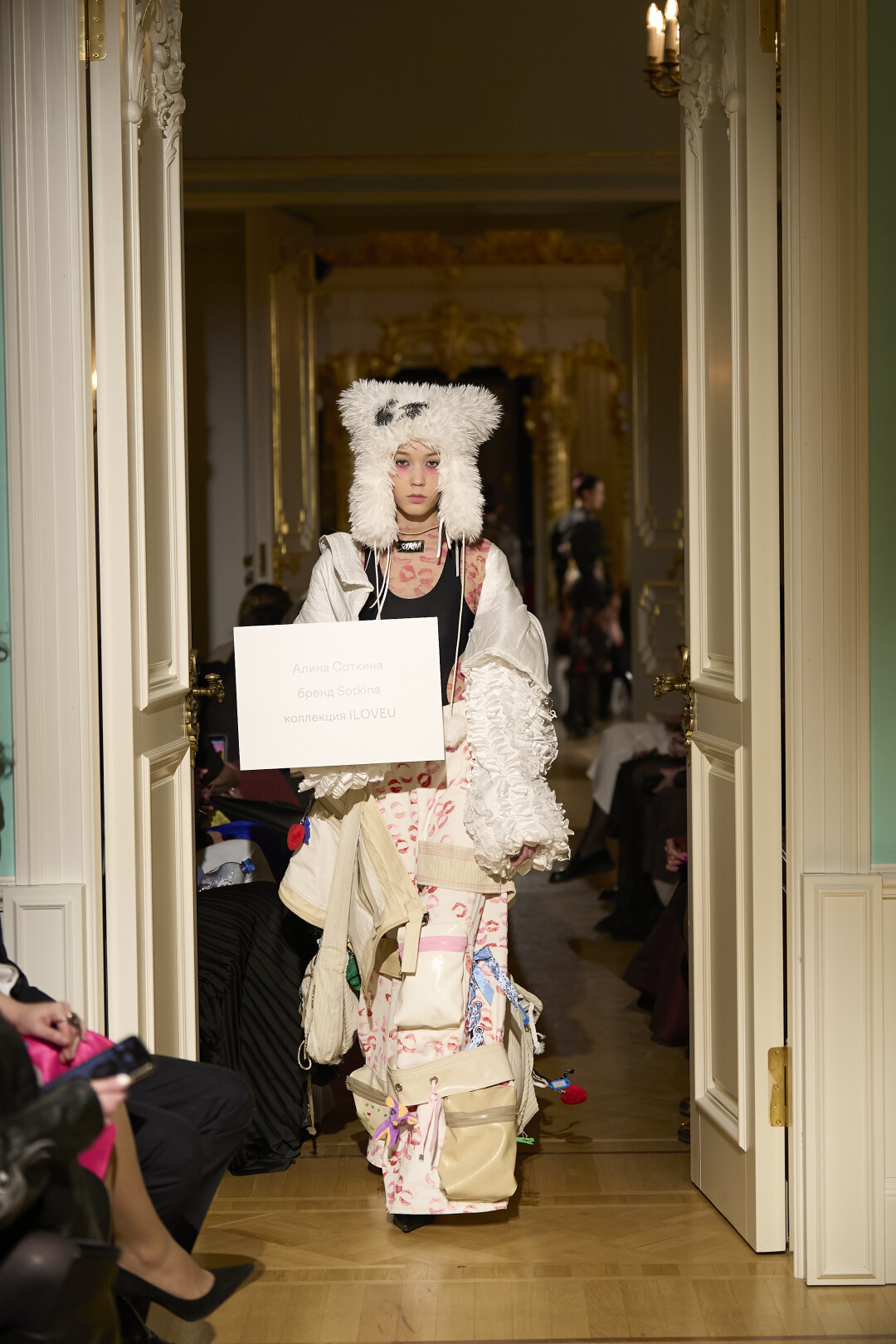 Любимые герои «Собака.ru» вышли поддержать юные дарования дрим-составом: Юлдус Бахтиозина дефилировала в характерном оперении Bagatelle, Виктория Портфолио – в искрометном чепце, приспущенном платье и стеганой баске оттенка пыльной розы BITTE_RUHE, Полина Сидихина примерила интеллектуальную (работает как SPF), но суеверную (купальники-обереги) пляжную одежду RoDaSoleil, а Екатерина Смольникова выбрала кавайно-няшные вещи в жанре трэш-манги дизайнера Алины Соткиной. Лиза Гусевская укрылась советским одеялом-курткой от Ани Рассказовой, а Евгения Сероусова прошлась в прозрачном силиконе авторства Софьи Тихоновой. Срежиссировал происходящее Сергей Луковский, а стилизовала показ (и эффектно выступала в цветочном кэтсьюте Насти Соломеиной) Эльмира Тулебаева. Было модно!