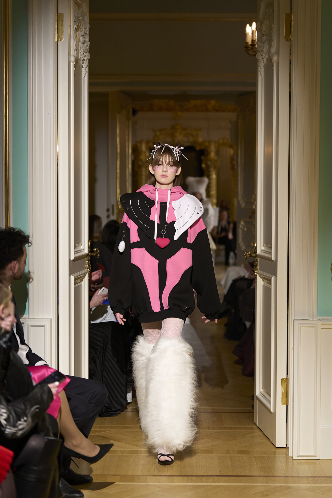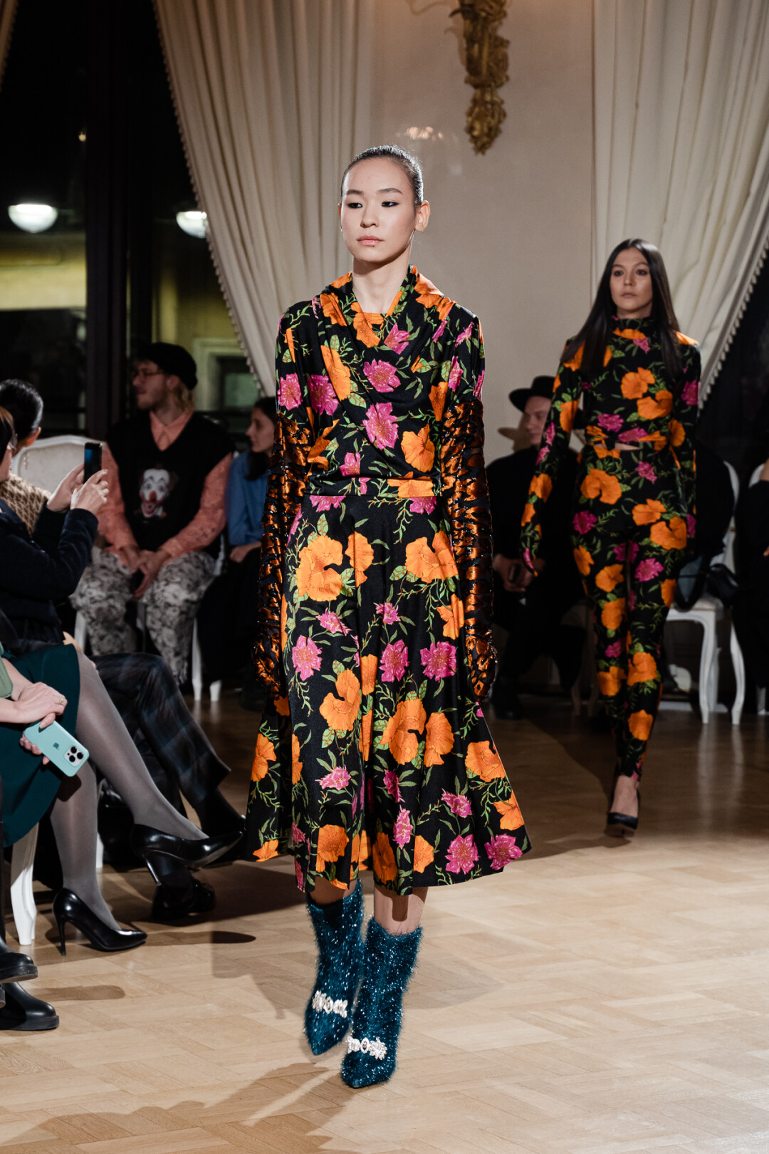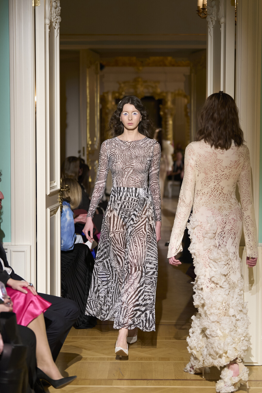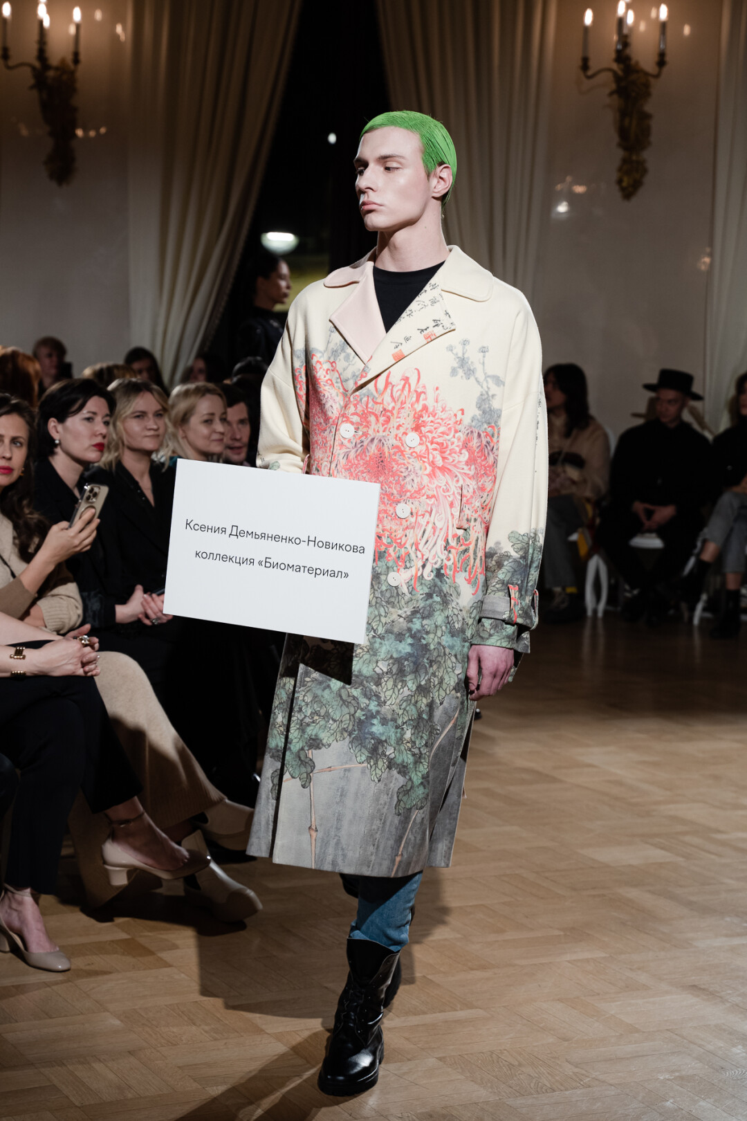 Любимые герои «Собака.ru» вышли поддержать юные дарования дрим-составом: Юлдус Бахтиозина дефилировала в характерном оперении Bagatelle, Виктория Портфолио – в искрометном чепце, приспущенном платье и стеганой баске оттенка пыльной розы BITTE_RUHE, Полина Сидихина примерила интеллектуальную (работает как SPF), но суеверную (купальники-обереги) пляжную одежду RoDaSoleil, а Екатерина Смольникова выбрала кавайно-няшные вещи в жанре трэш-манги дизайнера Алины Соткиной. Лиза Гусевская укрылась советским одеялом-курткой от Ани Рассказовой, а Евгения Сероусова прошлась в прозрачном силиконе авторства Софьи Тихоновой. Срежиссировал происходящее Сергей Луковский, а стилизовала показ (и эффектно выступала в цветочном кэтсьюте Насти Соломеиной) Эльмира Тулебаева. Было модно!
