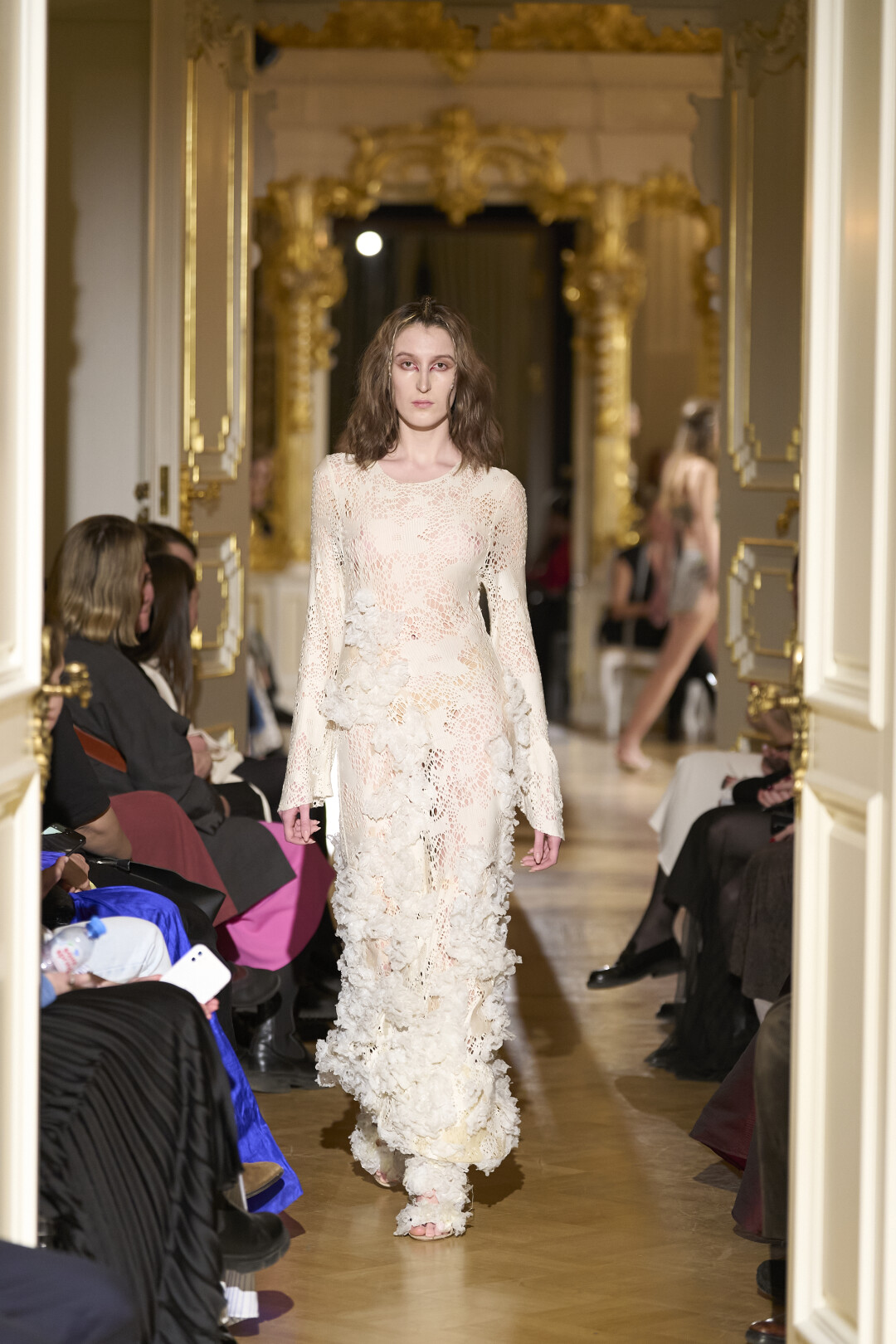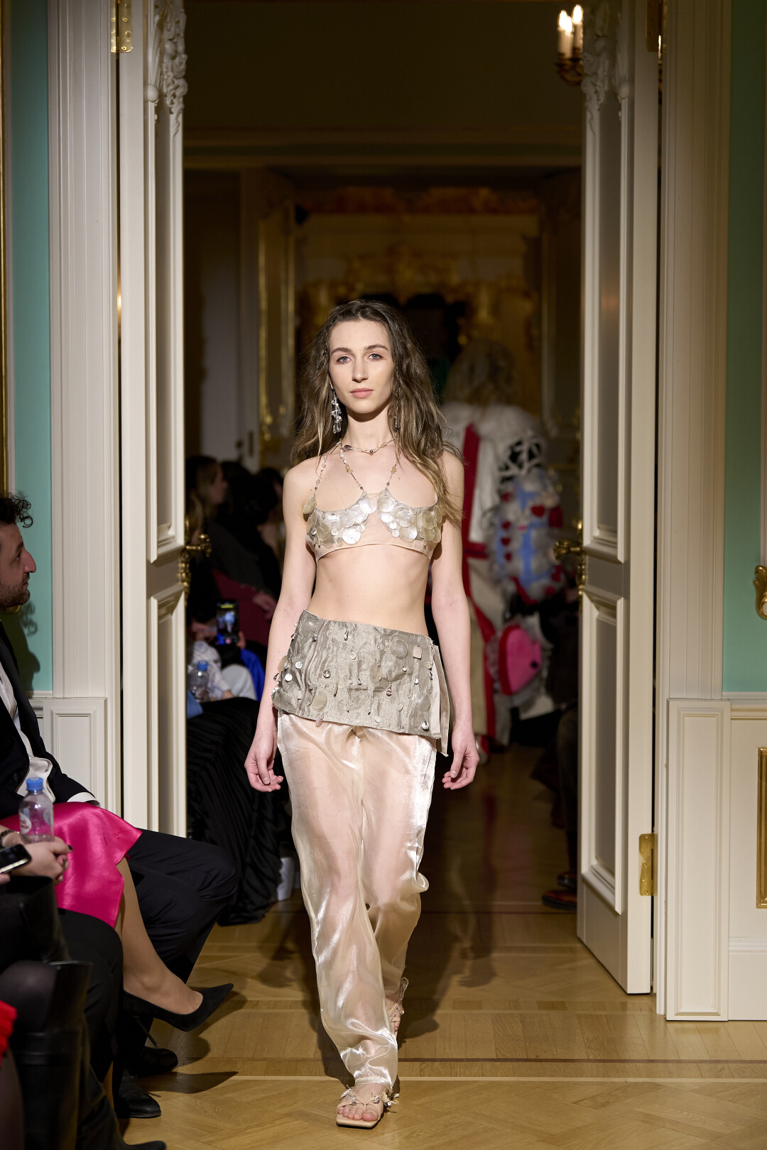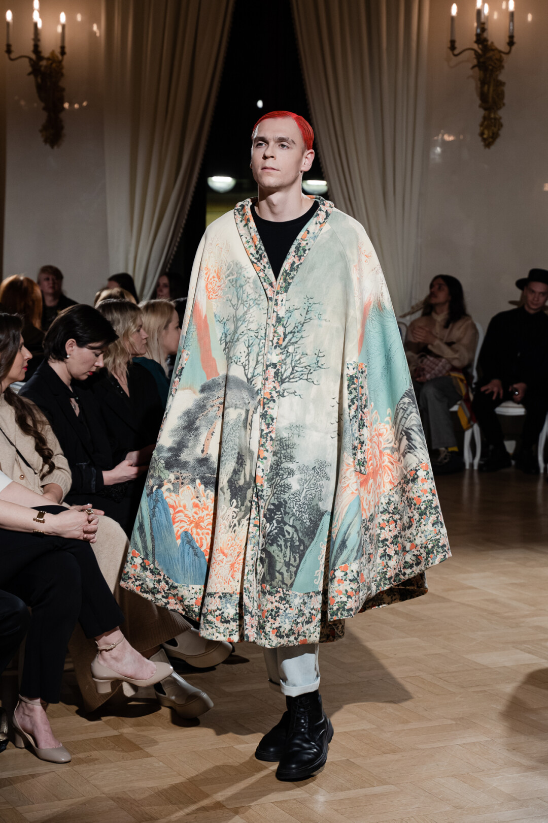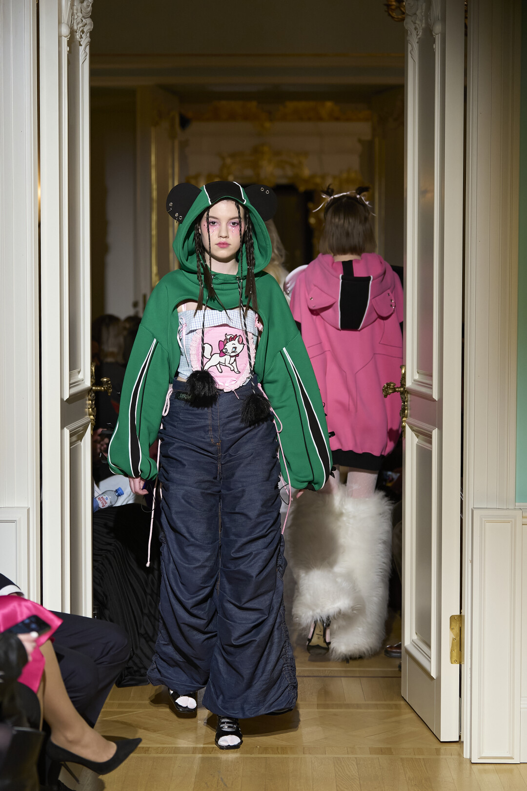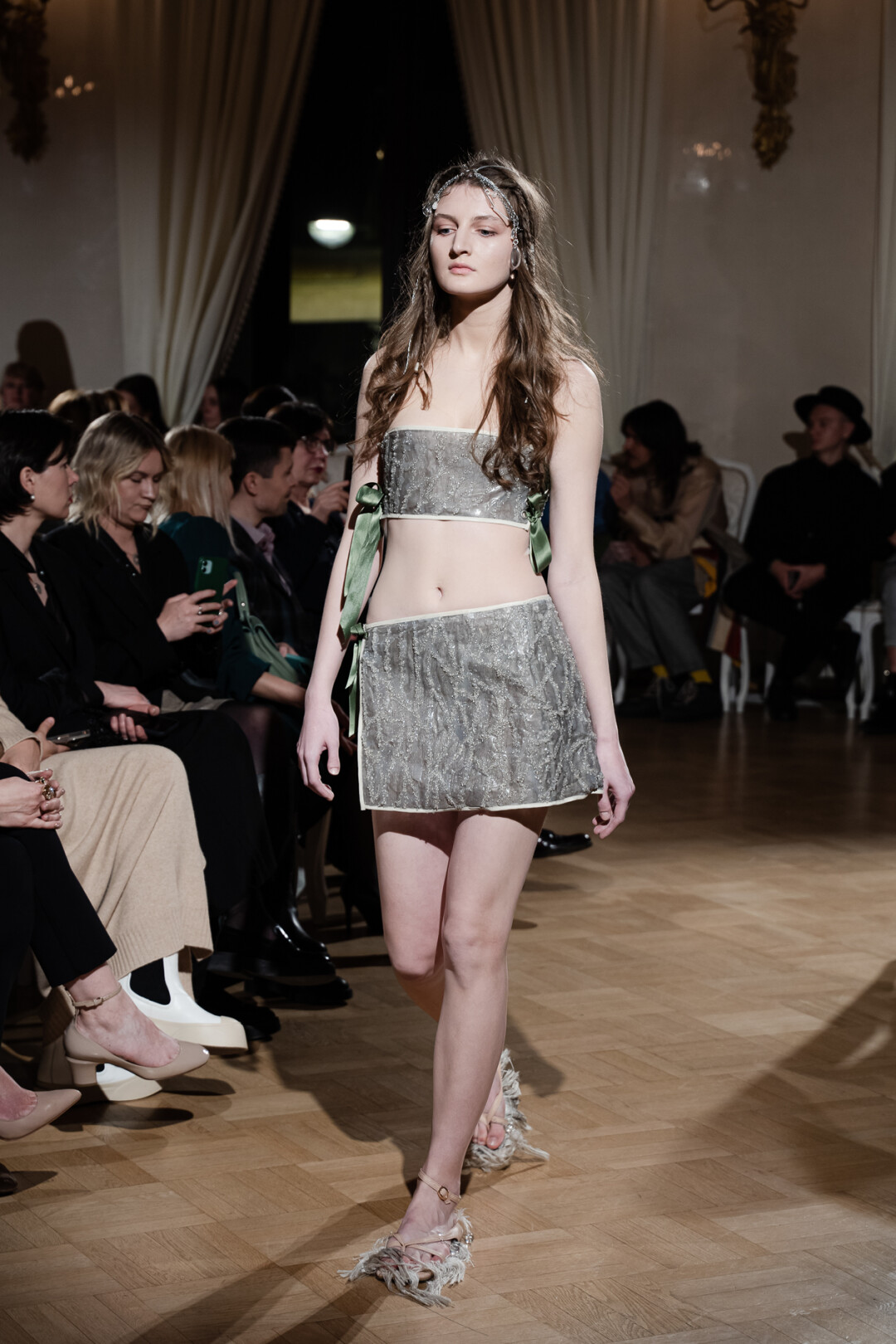 Любимые герои «Собака.ru» вышли поддержать юные дарования дрим-составом: Юлдус Бахтиозина дефилировала в характерном оперении Bagatelle, Виктория Портфолио – в искрометном чепце, приспущенном платье и стеганой баске оттенка пыльной розы BITTE_RUHE, Полина Сидихина примерила интеллектуальную (работает как SPF), но суеверную (купальники-обереги) пляжную одежду RoDaSoleil, а Екатерина Смольникова выбрала кавайно-няшные вещи в жанре трэш-манги дизайнера Алины Соткиной. Лиза Гусевская укрылась советским одеялом-курткой от Ани Рассказовой, а Евгения Сероусова прошлась в прозрачном силиконе авторства Софьи Тихоновой. Срежиссировал происходящее Сергей Луковский, а стилизовала показ (и эффектно выступала в цветочном кэтсьюте Насти Соломеиной) Эльмира Тулебаева. Было модно!