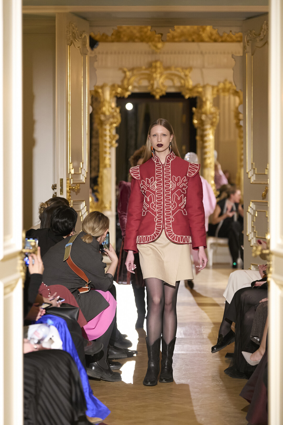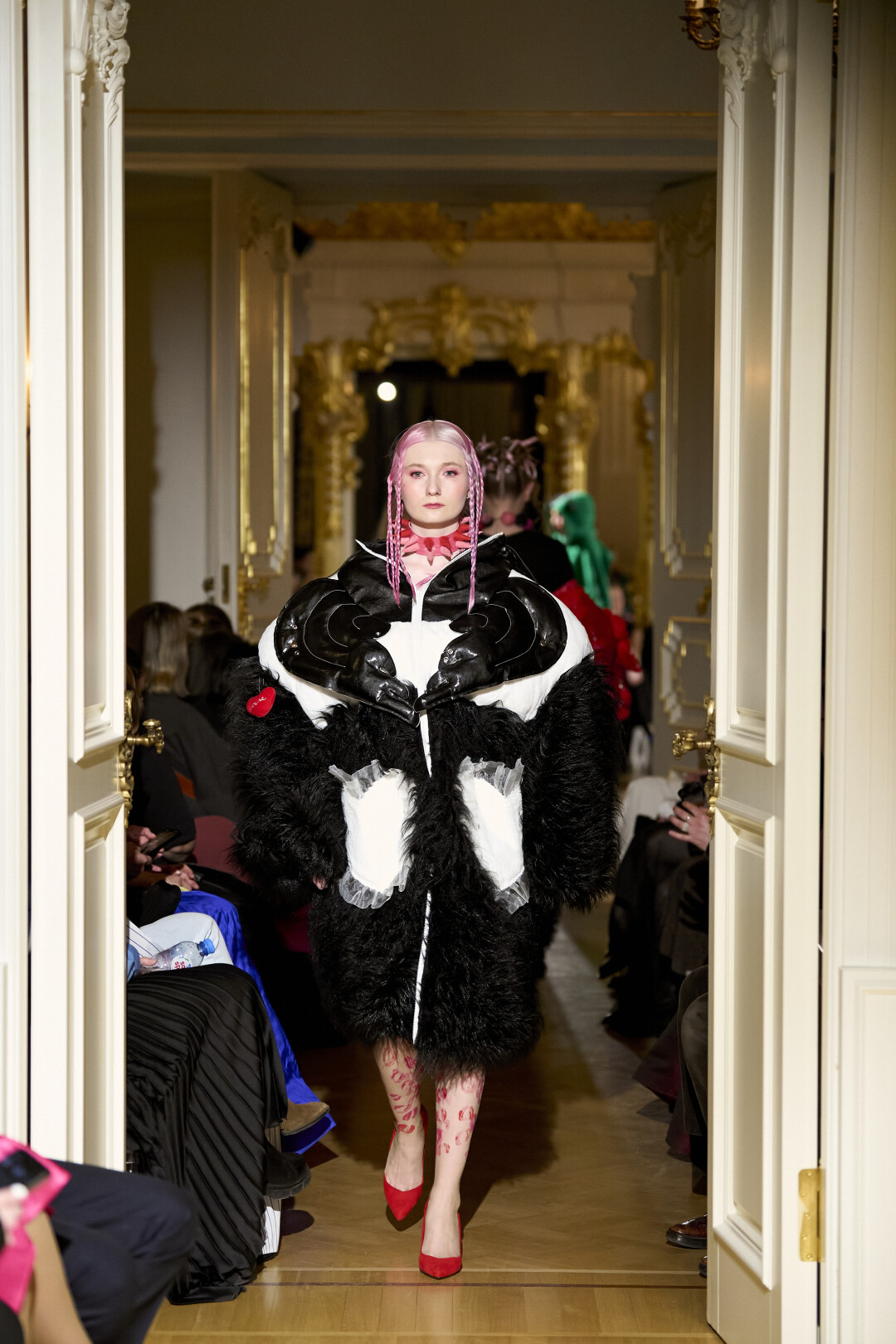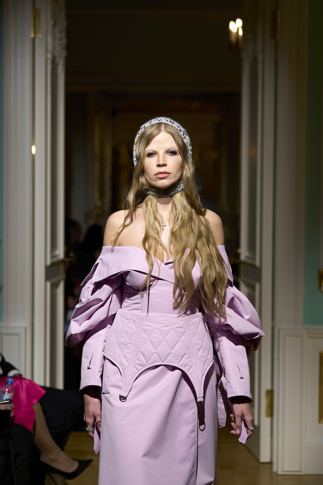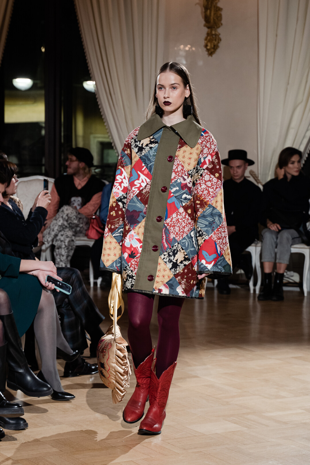 Любимые герои «Собака.ru» вышли поддержать юные дарования дрим-составом: Юлдус Бахтиозина дефилировала в характерном оперении Bagatelle, Виктория Портфолио – в искрометном чепце, приспущенном платье и стеганой баске оттенка пыльной розы BITTE_RUHE, Полина Сидихина примерила интеллектуальную (работает как SPF), но суеверную (купальники-обереги) пляжную одежду RoDaSoleil, а Екатерина Смольникова выбрала кавайно-няшные вещи в жанре трэш-манги дизайнера Алины Соткиной. Лиза Гусевская укрылась советским одеялом-курткой от Ани Рассказовой, а Евгения Сероусова прошлась в прозрачном силиконе авторства Софьи Тихоновой. Срежиссировал происходящее Сергей Луковский, а стилизовала показ (и эффектно выступала в цветочном кэтсьюте Насти Соломеиной) Эльмира Тулебаева. Было модно!
