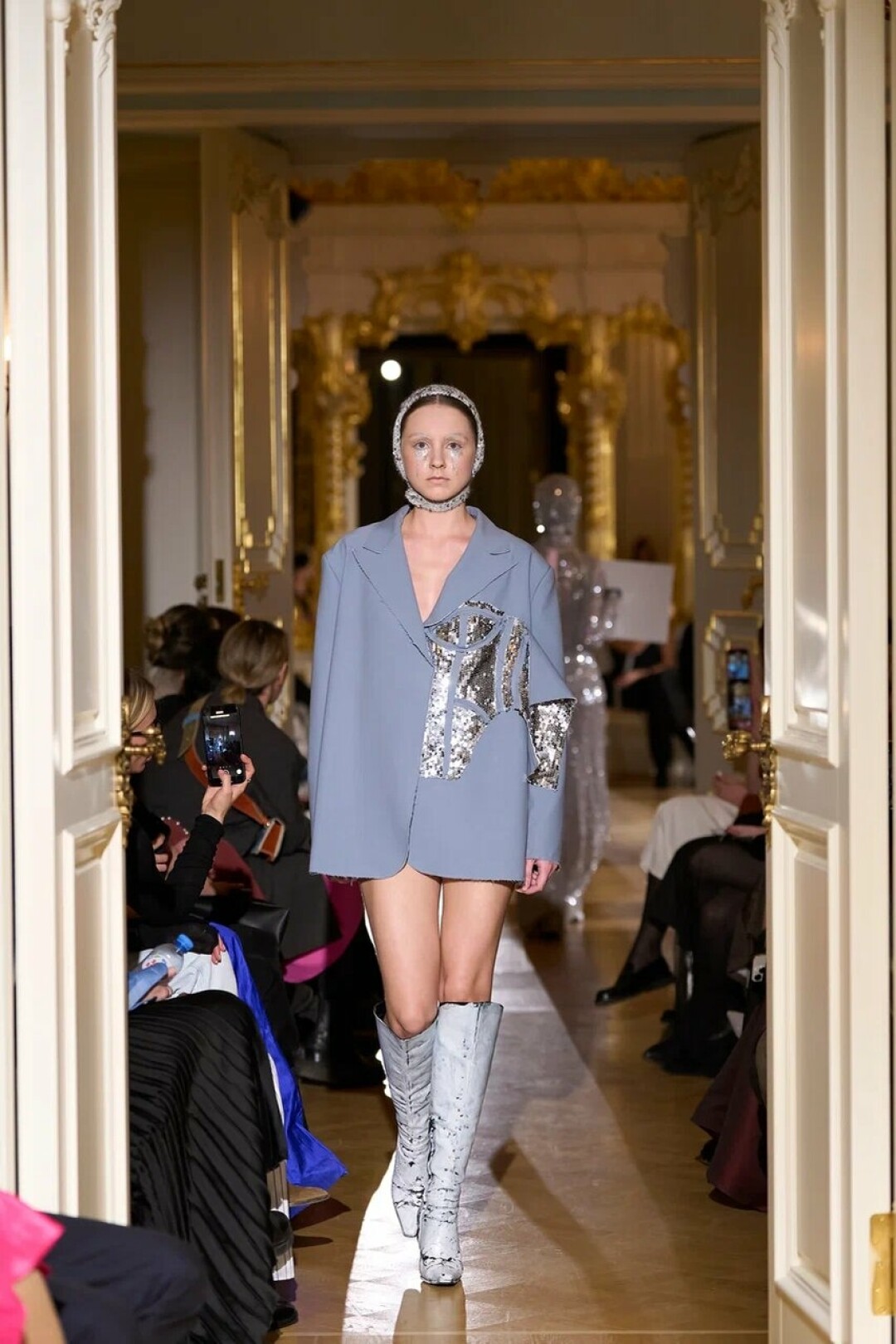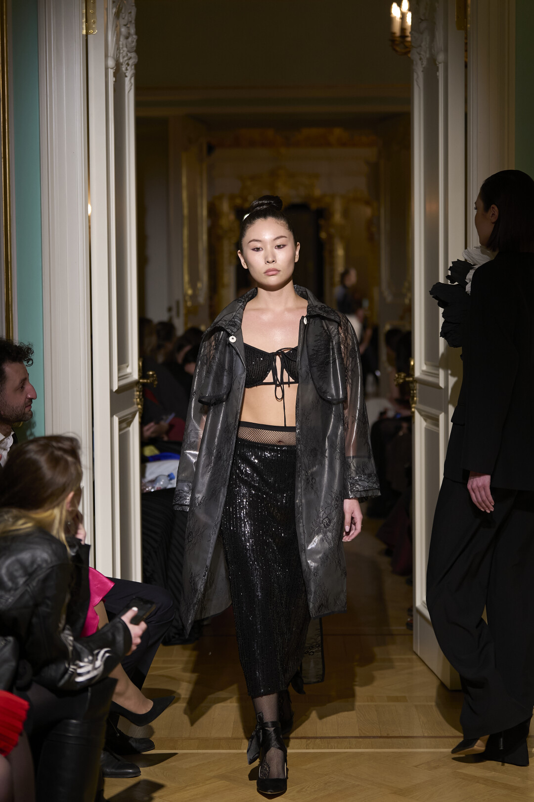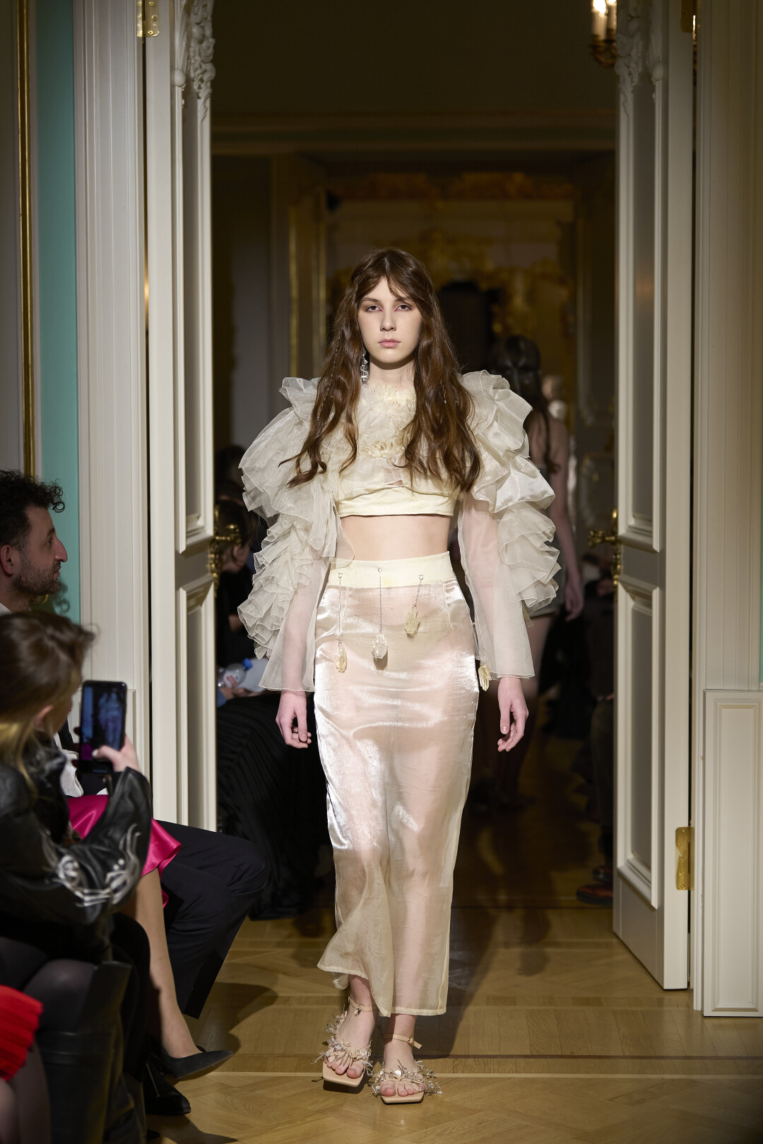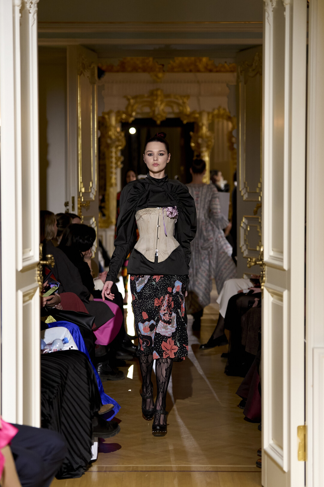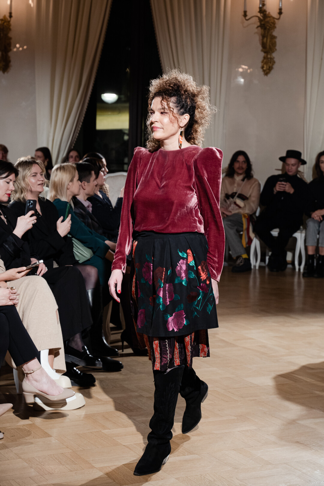 Любимые герои «Собака.ru» вышли поддержать юные дарования дрим-составом: Юлдус Бахтиозина дефилировала в характерном оперении Bagatelle, Виктория Портфолио – в искрометном чепце, приспущенном платье и стеганой баске оттенка пыльной розы BITTE_RUHE, Полина Сидихина примерила интеллектуальную (работает как SPF), но суеверную (купальники-обереги) пляжную одежду RoDaSoleil, а Екатерина Смольникова выбрала кавайно-няшные вещи в жанре трэш-манги дизайнера Алины Соткиной. Лиза Гусевская укрылась советским одеялом-курткой от Ани Рассказовой, а Евгения Сероусова прошлась в прозрачном силиконе авторства Софьи Тихоновой. Срежиссировал происходящее Сергей Луковский, а стилизовала показ (и эффектно выступала в цветочном кэтсьюте Насти Соломеиной) Эльмира Тулебаева. Было модно!