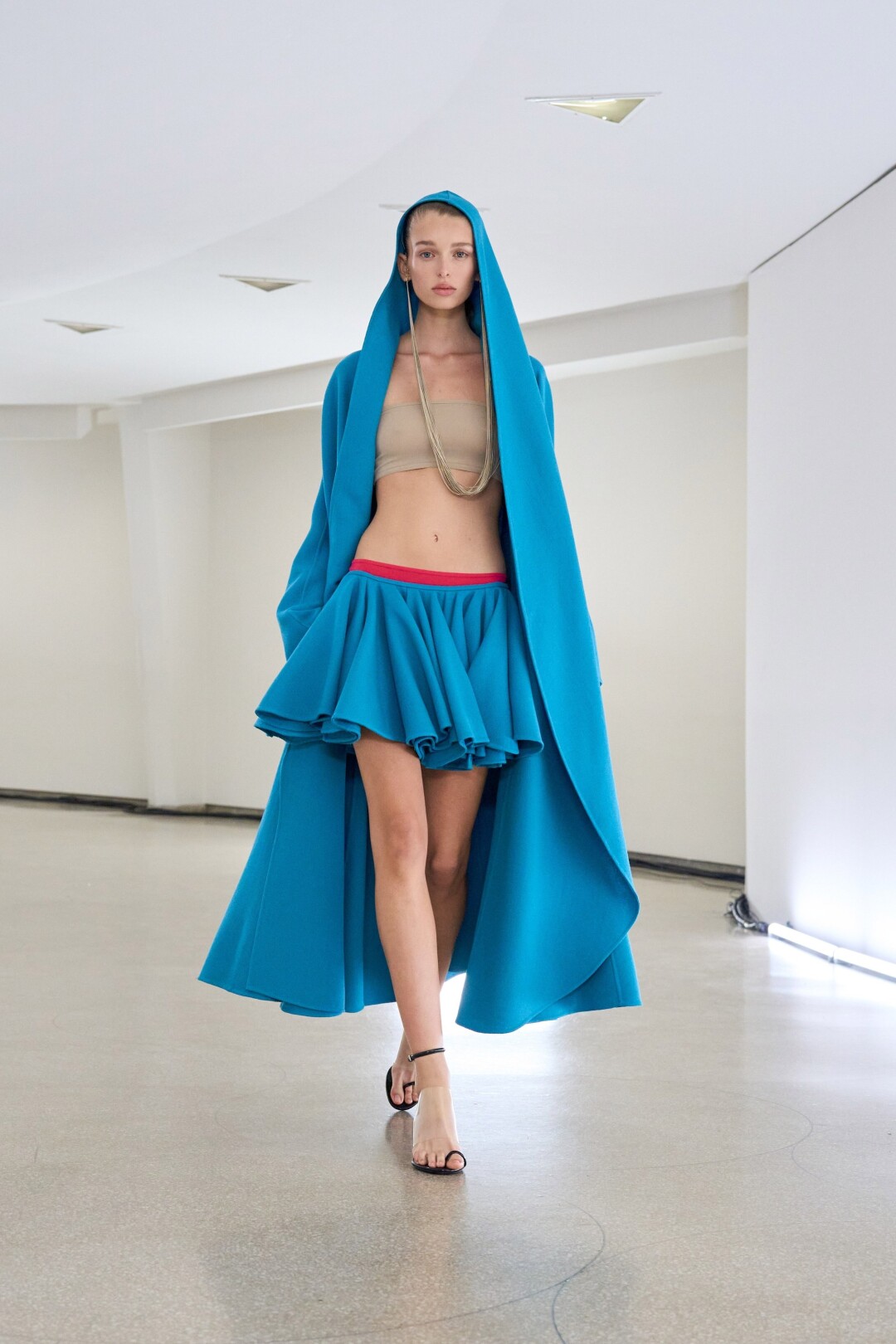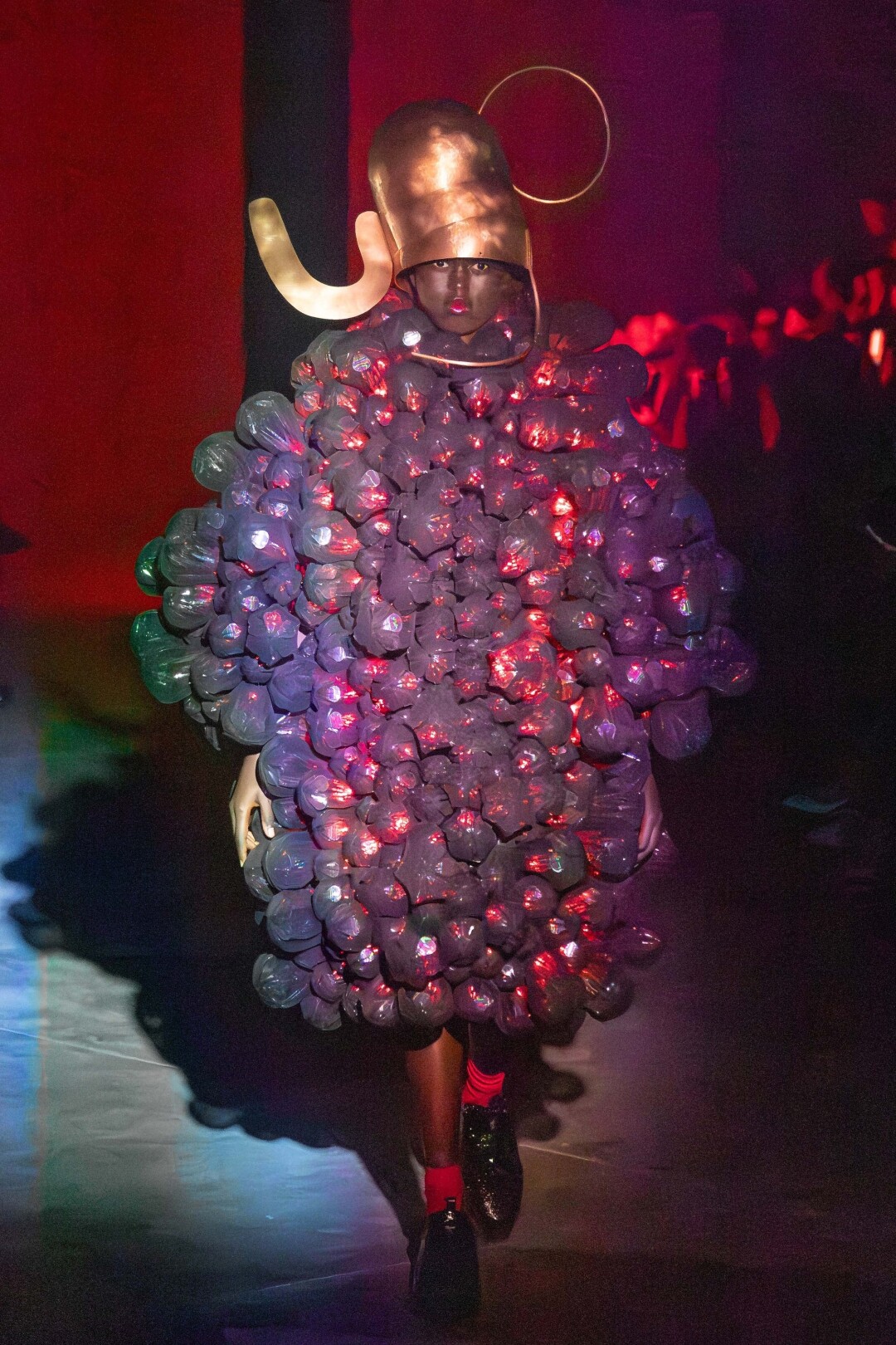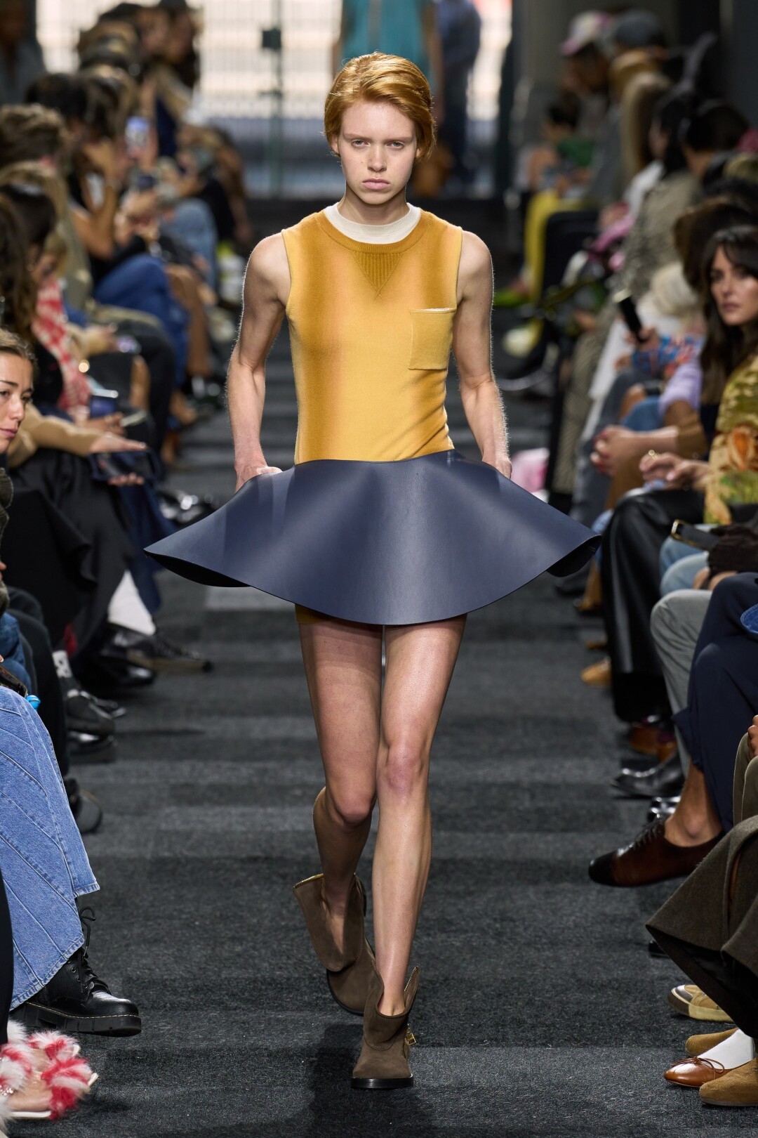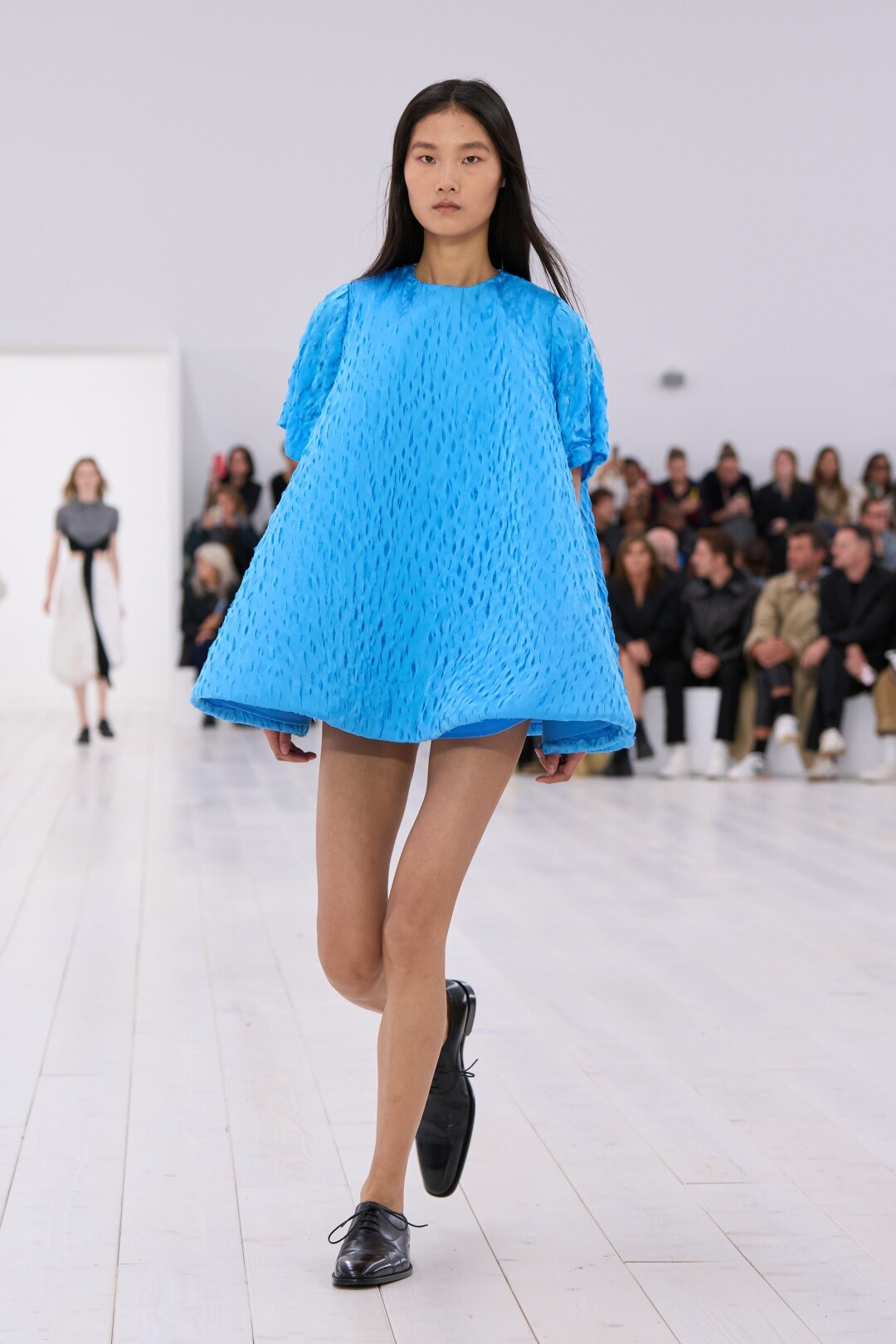 Оверсайз сдает позиции в кэужал-гардеробе, но точно не в фэшн-сюрреализме — здесь креативные директора солидарны с депрессивным вайбом endcore с показа Miu Miu и настойчиво прячут нас в коконы, спасая от окружающего мира. Можно притвориться облачком Comme des Garçons, котелком Noir Kei Ninomiya или юбкой-НЛО JW Anderson — а из более базовых вариантов предусмотрены кейпы, ориенталистские шаровары и блумерсы, которые все чаще появляются на подиуме (а следом — в луках модных инфлюэнсеров).