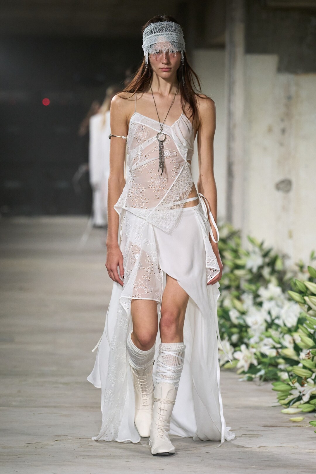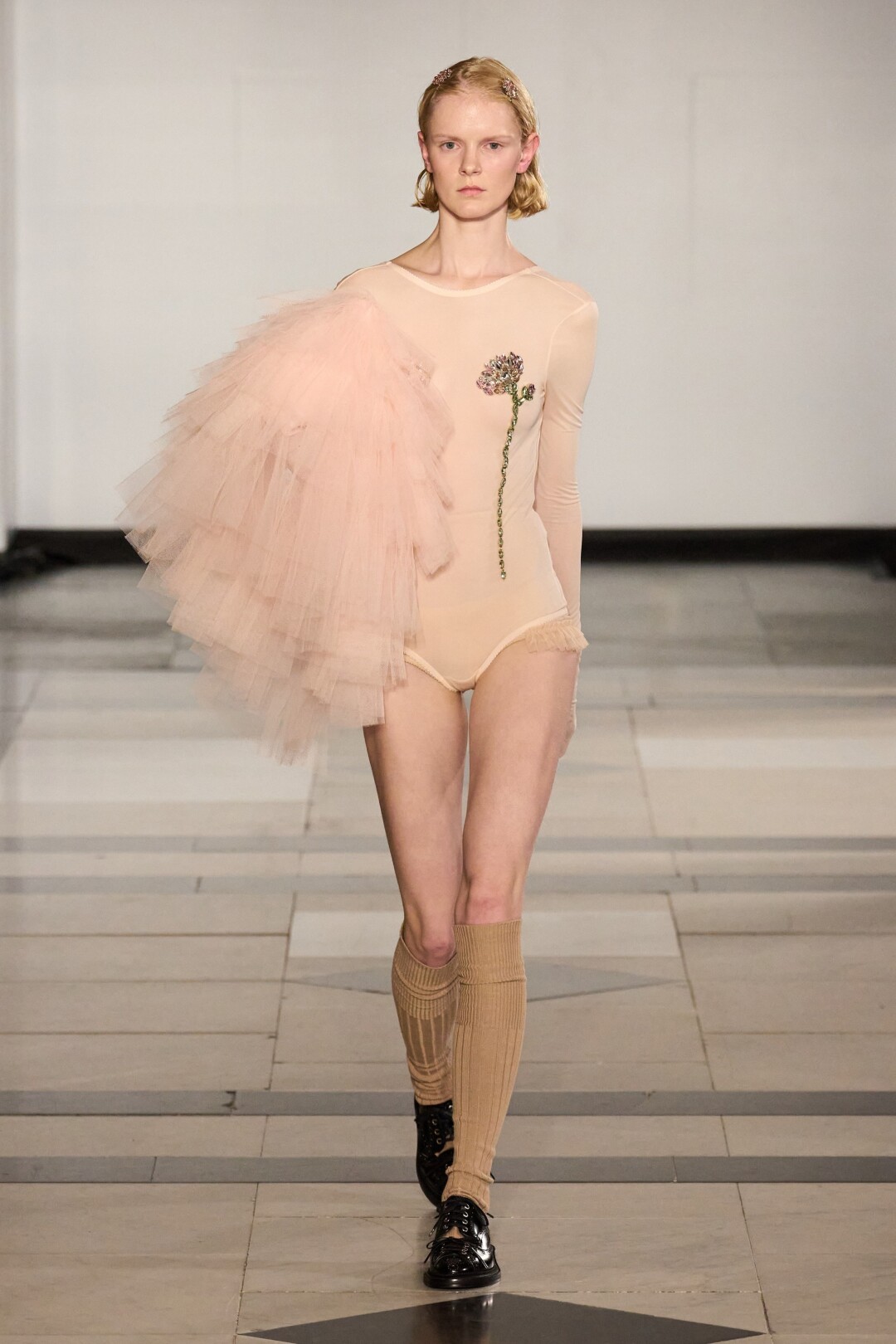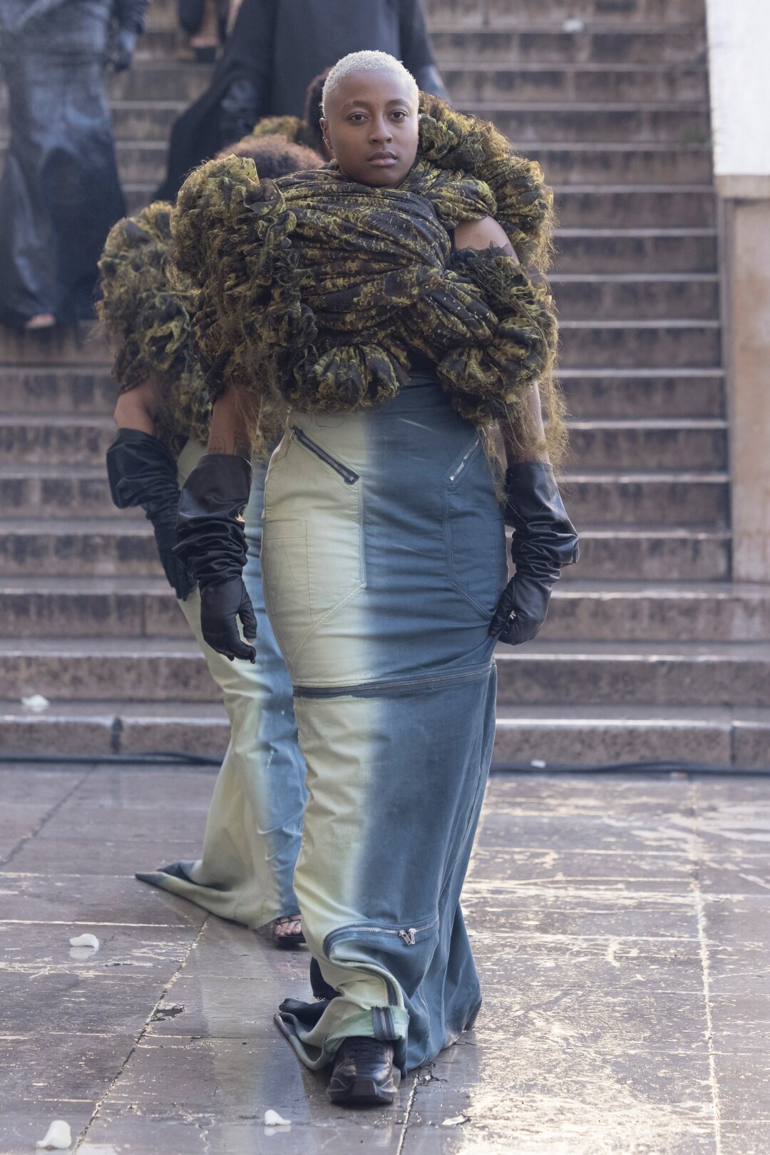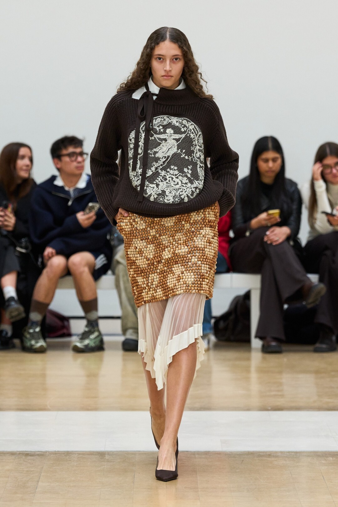 Оверсайз сдает позиции в кэужал-гардеробе, но точно не в фэшн-сюрреализме — здесь креативные директора солидарны с депрессивным вайбом endcore с показа Miu Miu и настойчиво прячут нас в коконы, спасая от окружающего мира. Можно притвориться облачком Comme des Garçons, котелком Noir Kei Ninomiya или юбкой-НЛО JW Anderson — а из более базовых вариантов предусмотрены кейпы, ориенталистские шаровары и блумерсы, которые все чаще появляются на подиуме (а следом — в луках модных инфлюэнсеров).