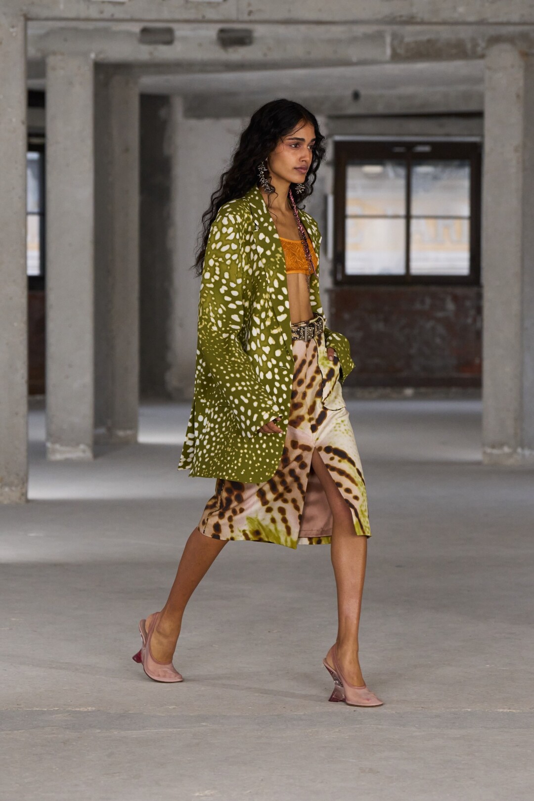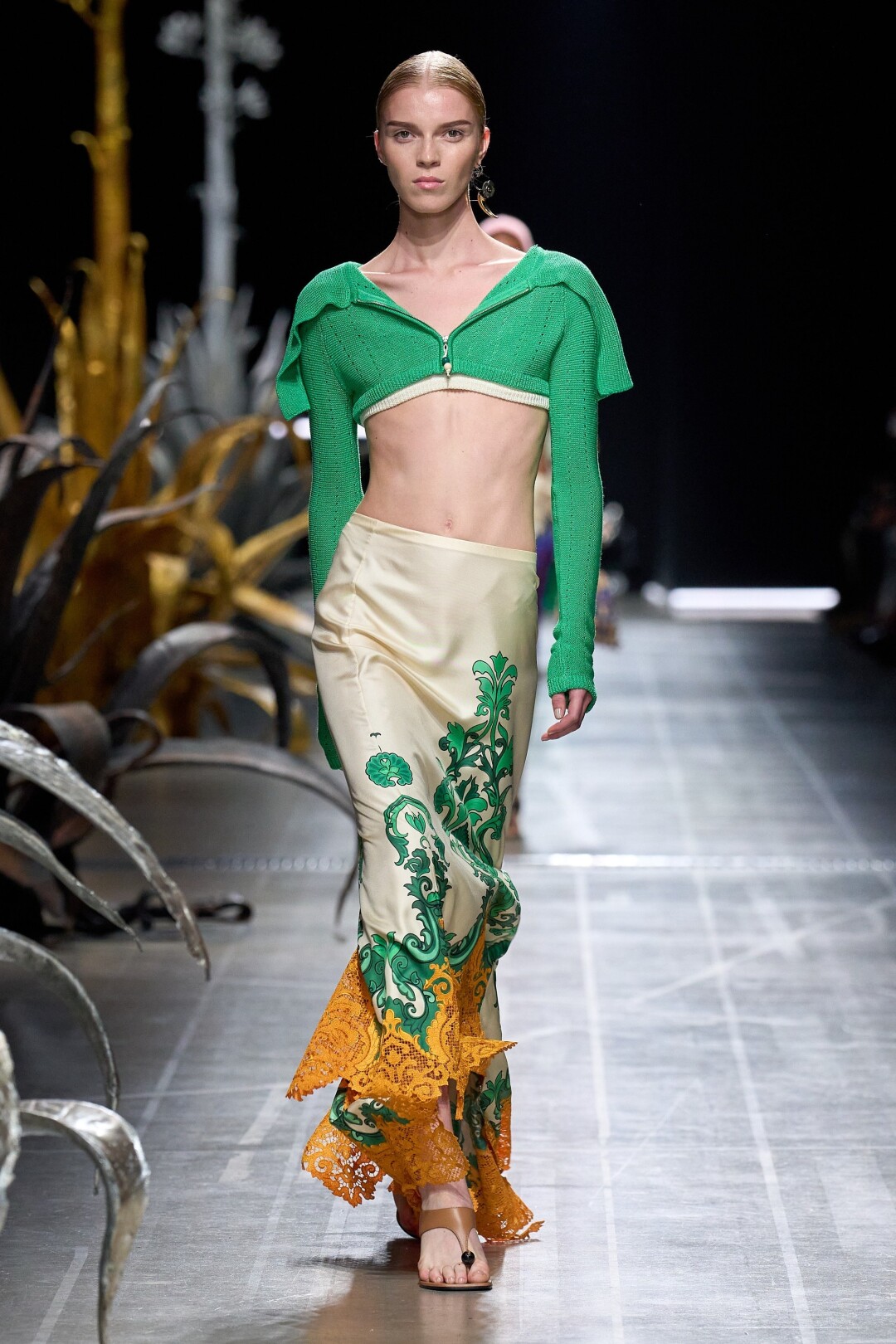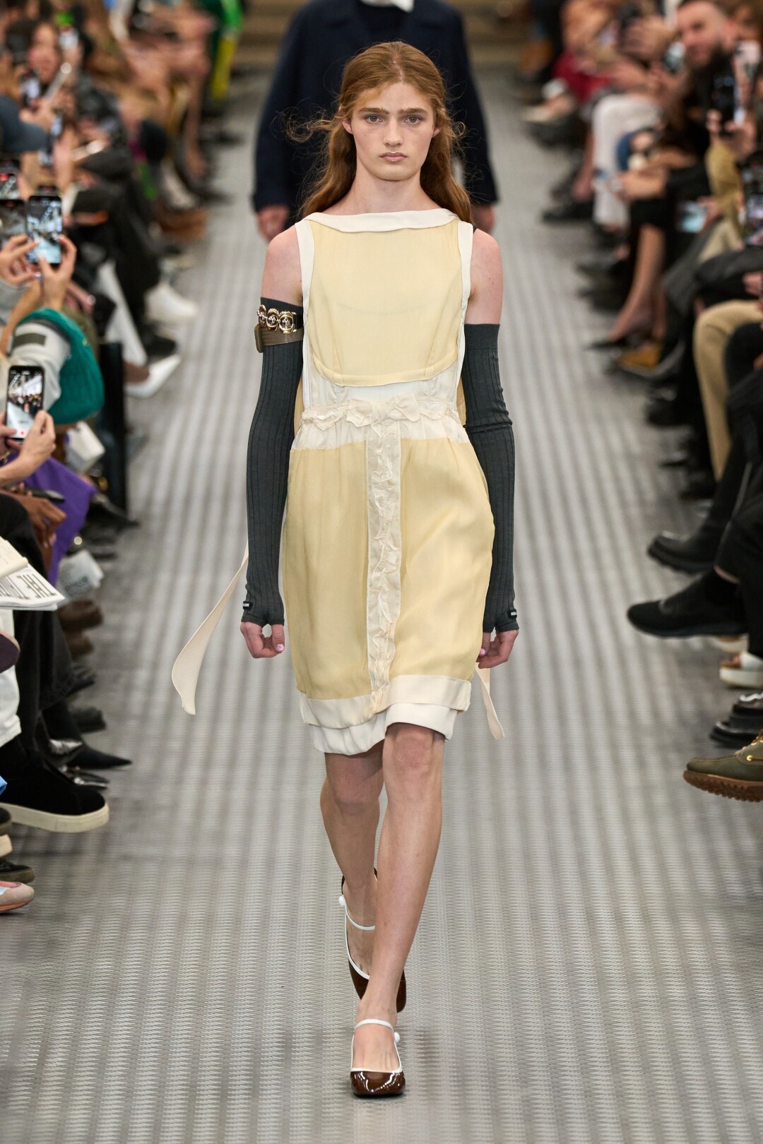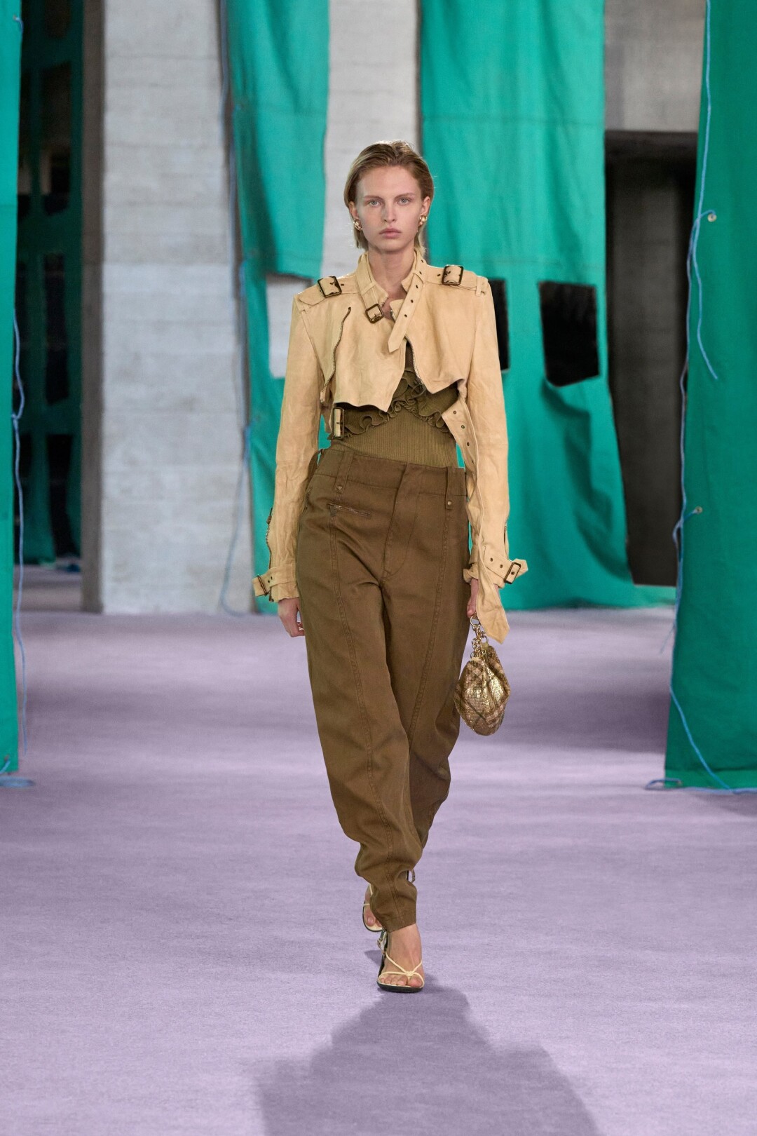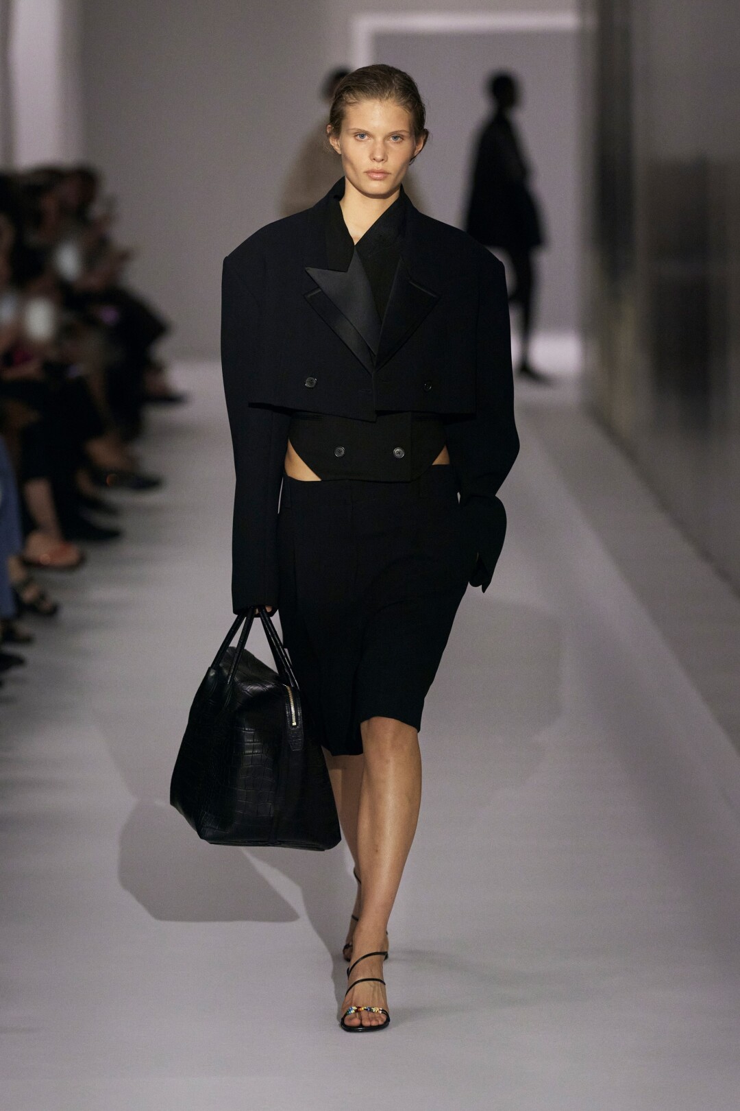 На фоне бума ladylike-силуэтов и возвращения моды 2010-х (с марантами и скинни-джинсами) оверсайз все чаще уступает место кроп-лукам (да, даже в коллекциях Balenciaga). Миучча Прада в Miu Miu показала укороченную версию ветровки, Кэтрин Гольштейн в Khaite сочинила мини-дубленки, а Дэниел Ли в Burberry и вовсе выступил с микро-версией фирменного бежевого тренча. Не обошлось без кроп-версий бомберов и болеро, которые снова можно носить с макси-юбками. Впрочем, напоследок утешим фанатов оверсайза — массивные плечистые пиджаки пока можно найти у Энтони Ваккарелло в Saint Laurent.