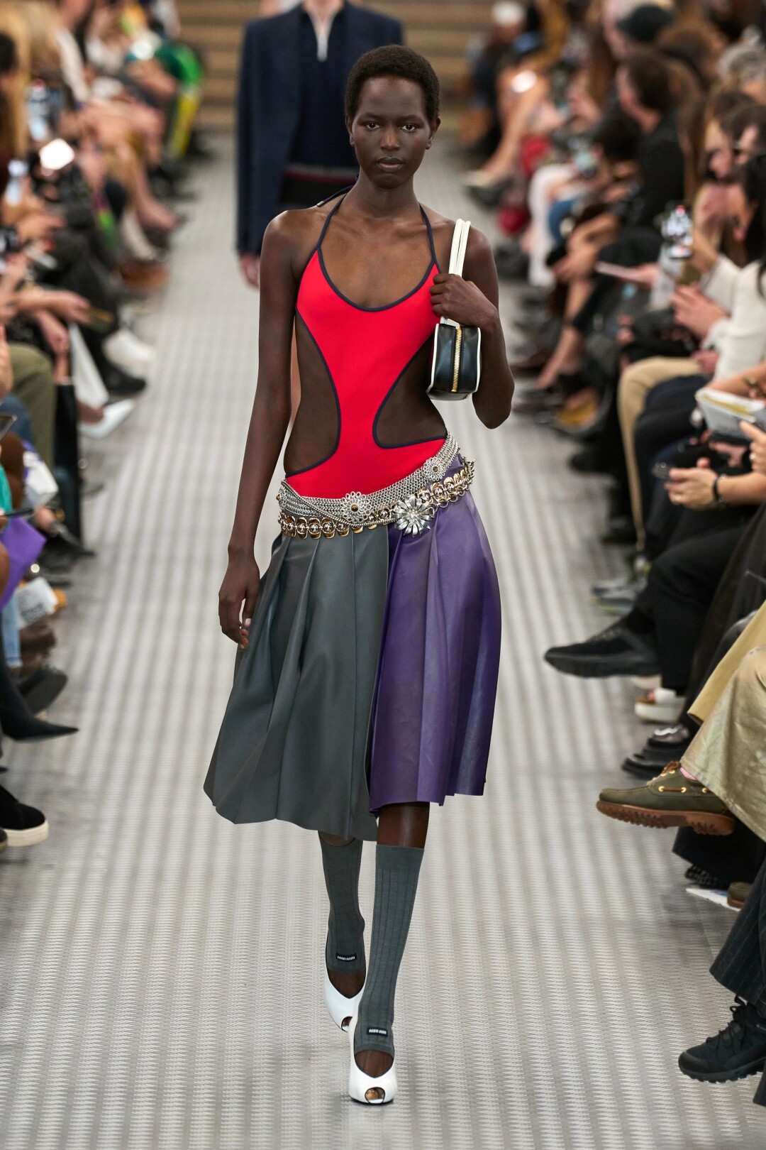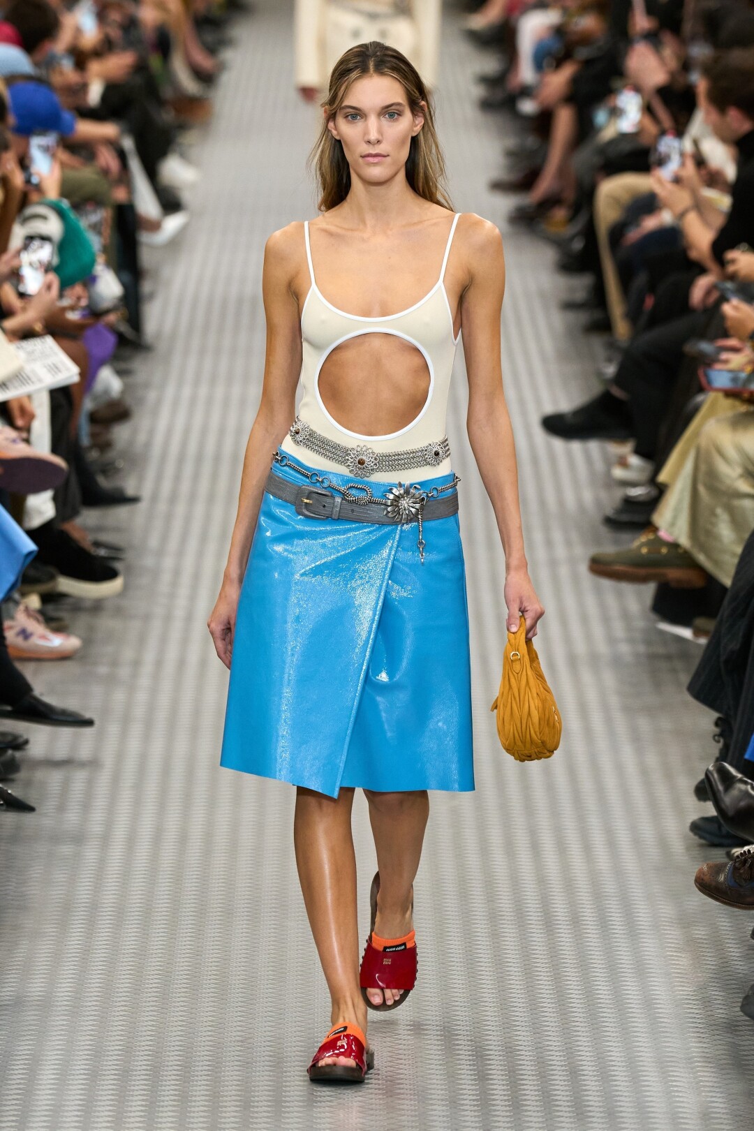 Фэшн-падение сезона! Миучча Прада спускает на бедра плиссированные мини (их, кстати, рекомендовано носить с купальником), Максимилиан Дэвис — пояса тренчей, а Дэниел Розберри и вовсе приготовил для Кайли Дженнер джинсы-декольте. Аналогичный трюк проделали Courreges с кожаными юбками-карандаши, украшенными фирменными pussy pocket, и Burberry с офискорными брюками — впрочем, дальше всех (буквально) удалось зайти Duran Lantink.