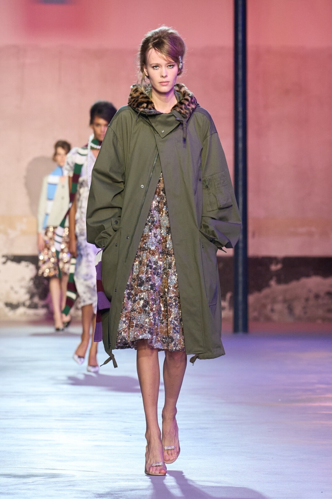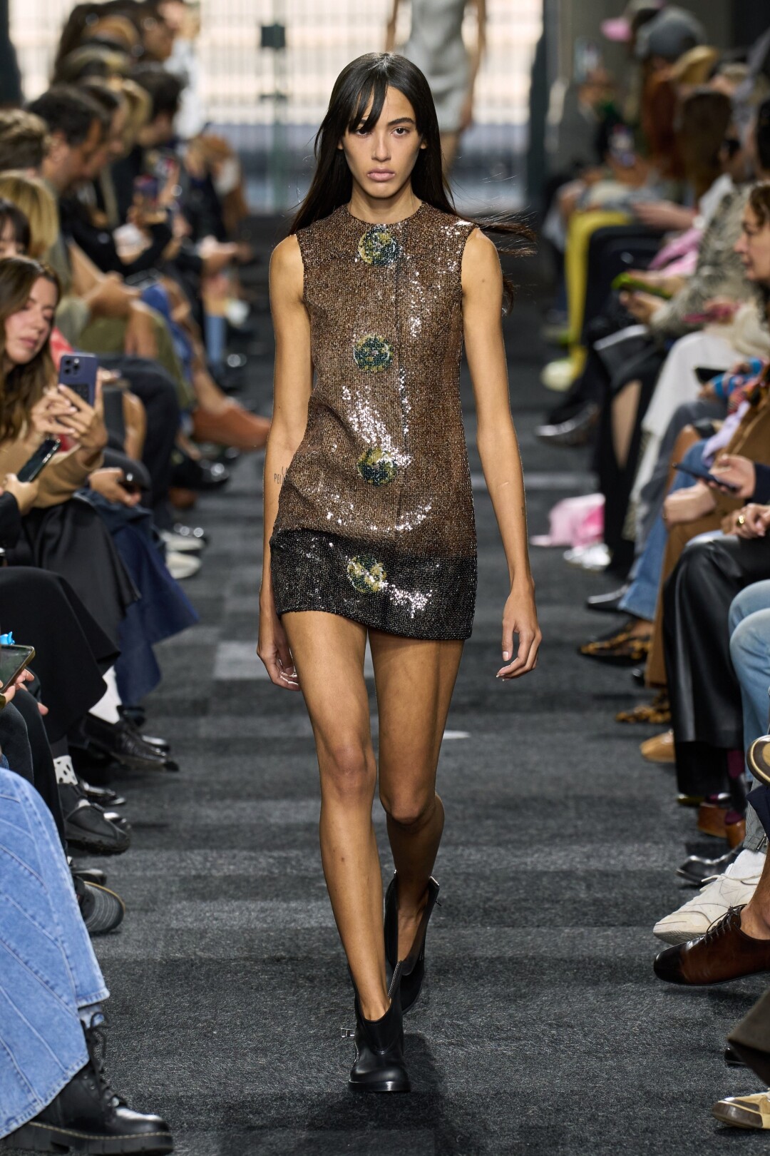 Сияющее платье в пайетках — главный наряд следующего сезона и наш спасательный круг для выбора новогоднего образа. Более того, Миучча Прада и Дэниел Ли настоятельно советуют стилизовать лук вместе с функциональной паркой (для облеченного весеннего варианта пригодится ветровка) — так хоть на рождественскую вечеринку в D.O.M. от Cava Disco, хоть в Диснейленд (само собой, в миннимаус-шузах от Coperni).