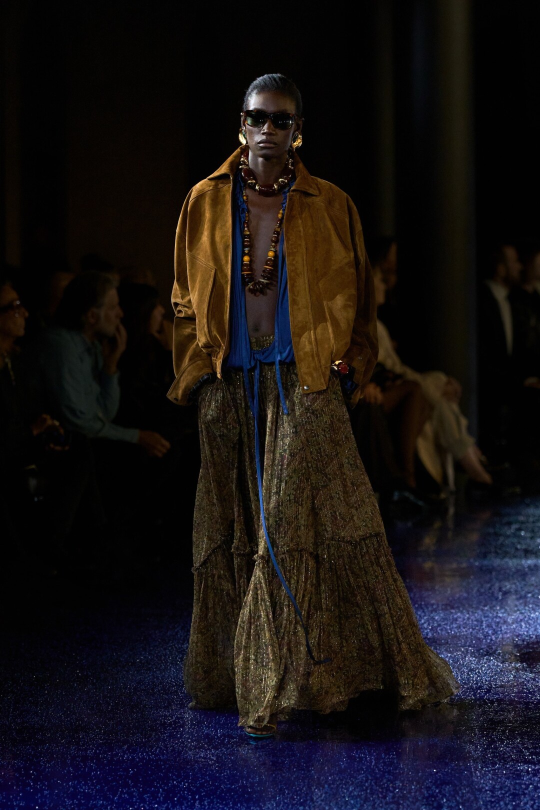Важный итог двух успешных показов Чемены Камали в роли креативного директора Chloé — возвращение бохо-эклектики в модный авангард. Теперь бахрому, цветочные принты, массивные бусы и рюши готовы носить не только гости front row Ральфа Лорена, но и дизайн-команды Valentino, Louis Vuitton и Saint Laurent. Пестрый анимализм и туфли на платформе даже сумели потеснить вечный твид на шоу Chanel в Гран-Пале. Следующим летом готовимся выгуливать туники в диких паттернах, а пока прячем под пальто-коконом воздушное каскадное платье, подпоясанное ажурным кожаным ремешком.