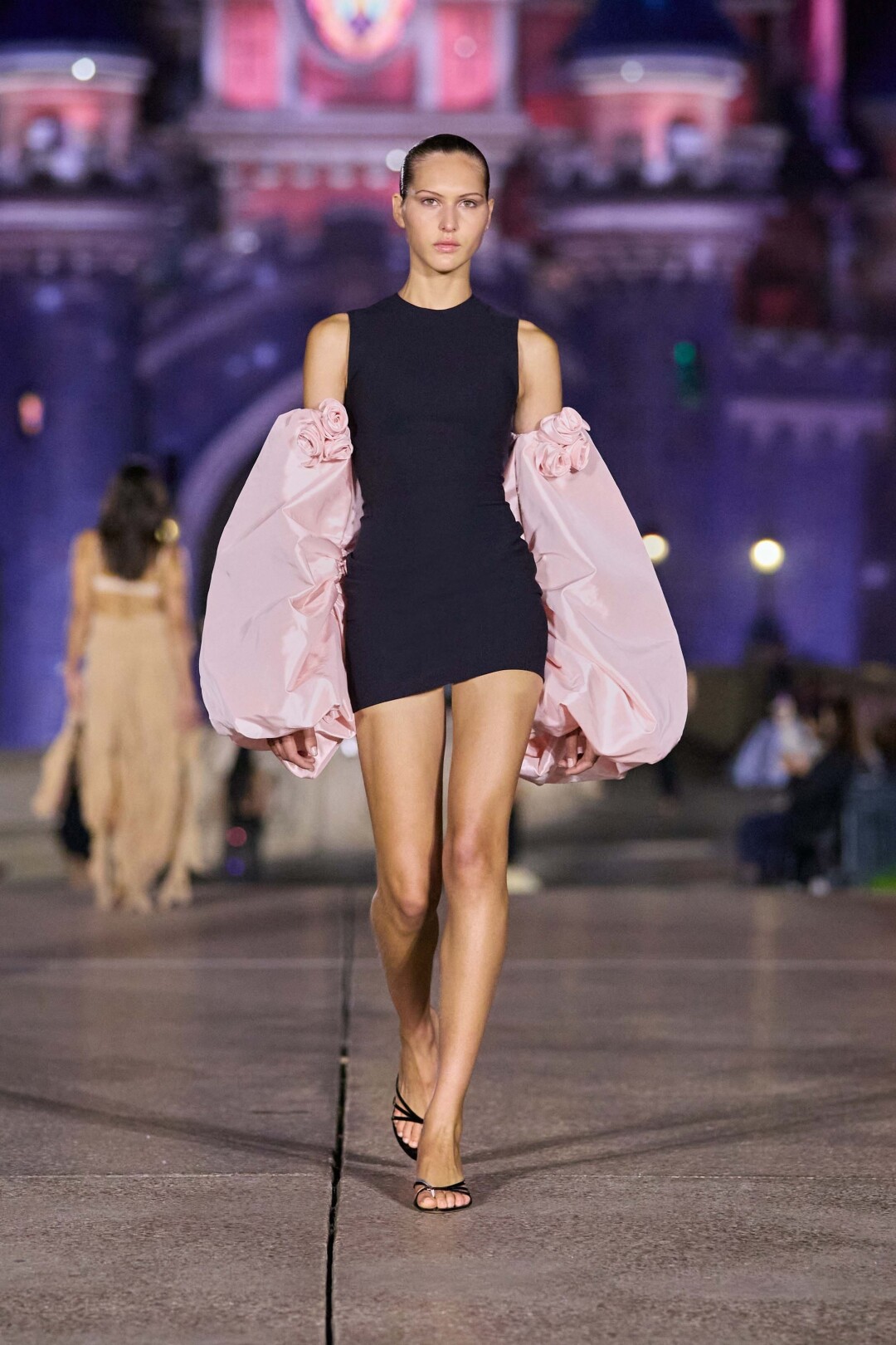 Худруки Coperni замышляли супершалость в течение двух лет — и не зря: реестр принцесс Волшебного королевства пополнился Лилой Мосс в роли диснеевской феечки, Ириной Шейк в амплуа Малефисенты и Кайли Дженнер, закрывшей показ в импровизированном образе Белоснежки (модельный дебют сезона!).