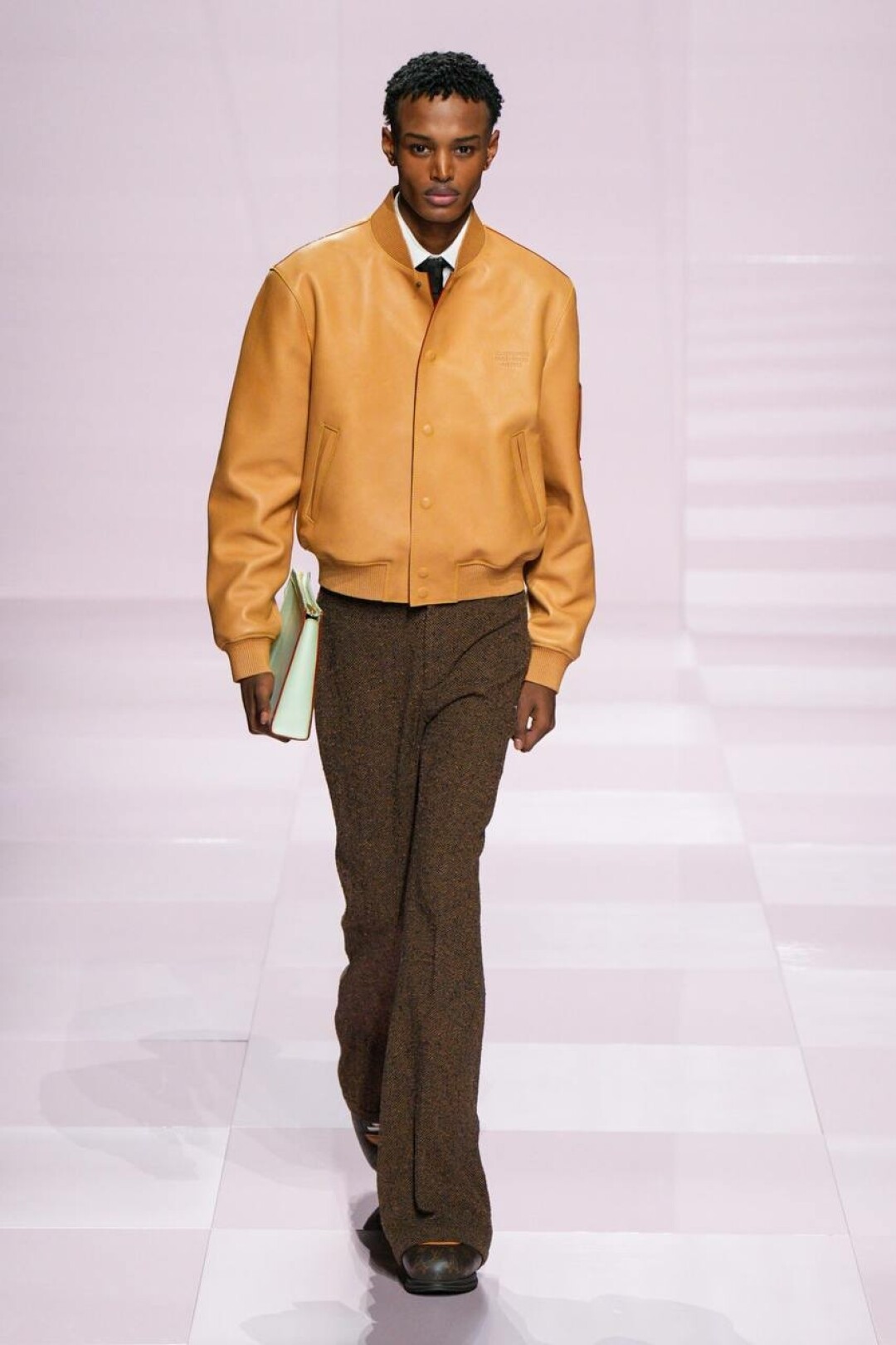 В перерывах между рэперскими шортами и гламурными кардиганами в стразах вклиниваем немного 70-х — Фаррелл и Ниго вспомнили о клешах, которые замиксовали с кожаными бомберами в оттенке горчицы, офискорными рубашками и академичными аргайл-жилетами. Главный стейтмент-аксессуар показа — разноцветные галстуки, которые по примеру Louis Vuitton женим с двойками из денима, ворквир-куртками, укороченными байкерскими косухами и зип-кардиганами.