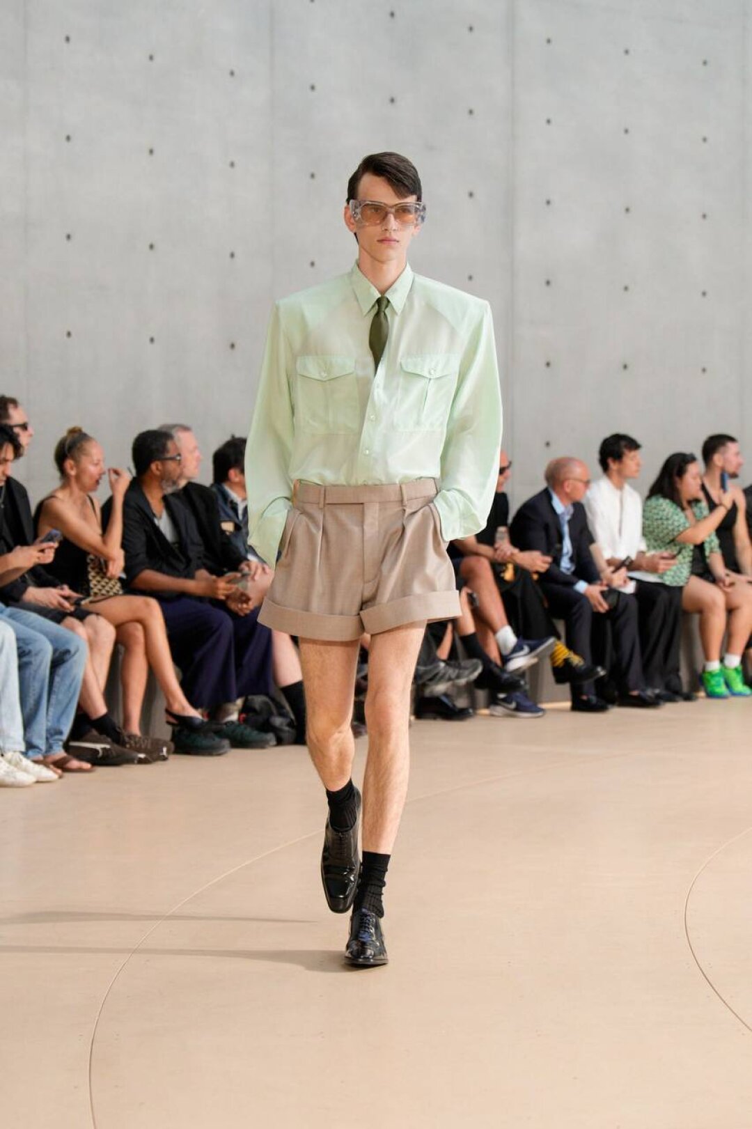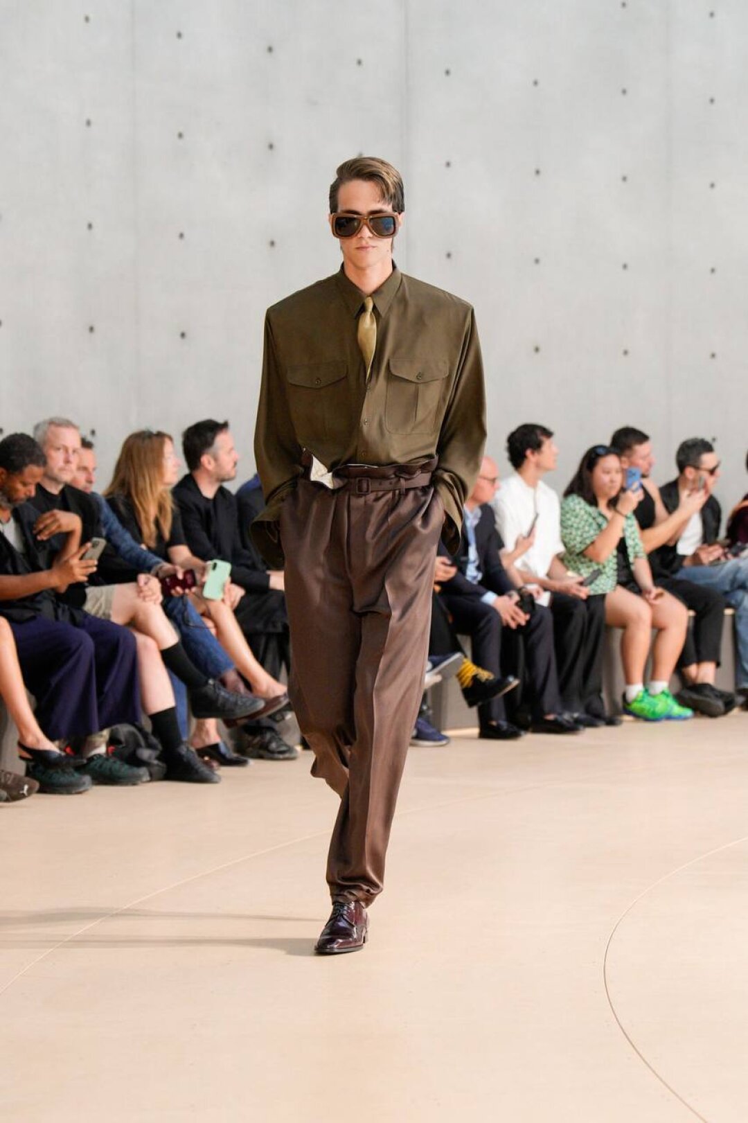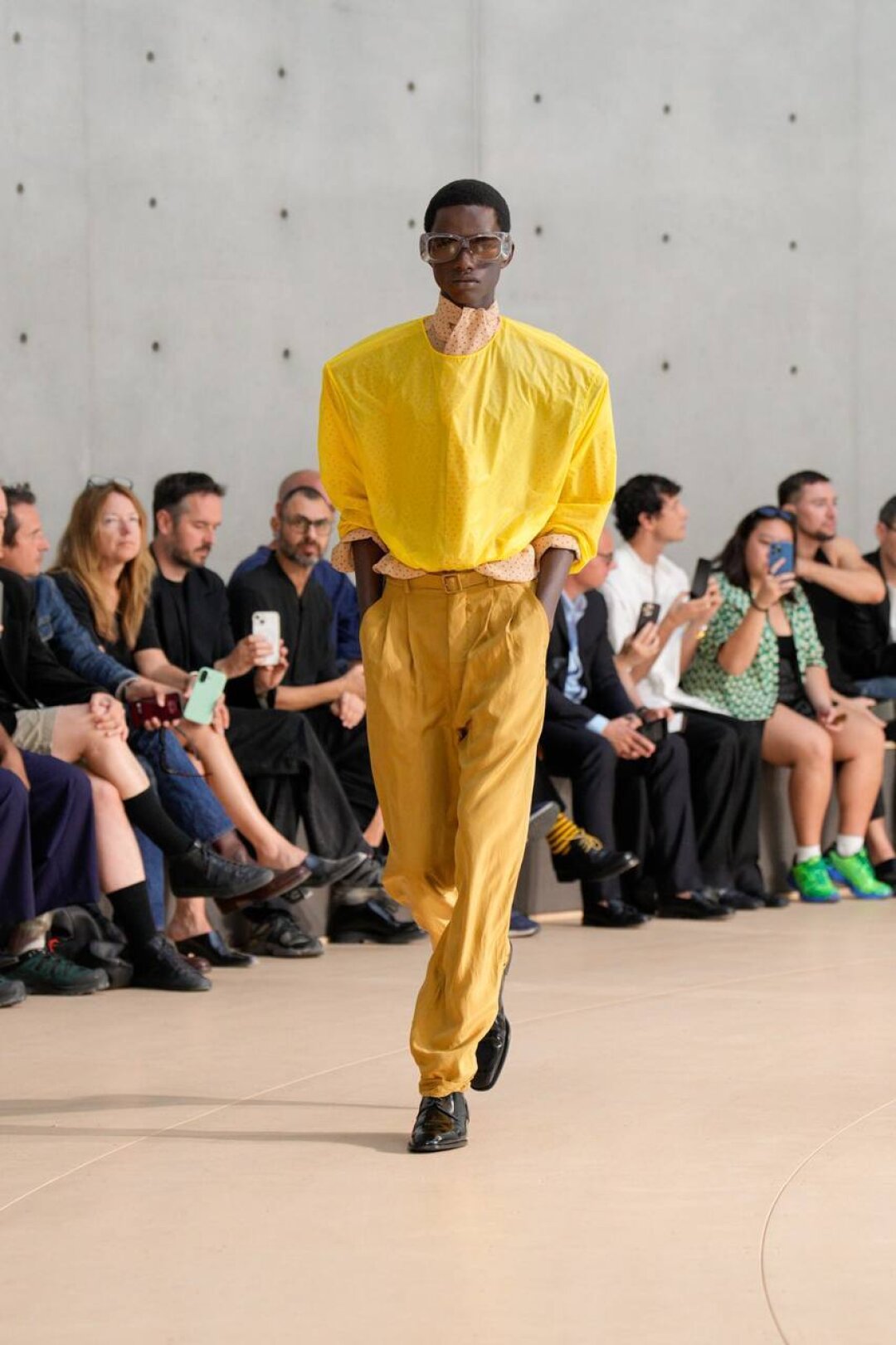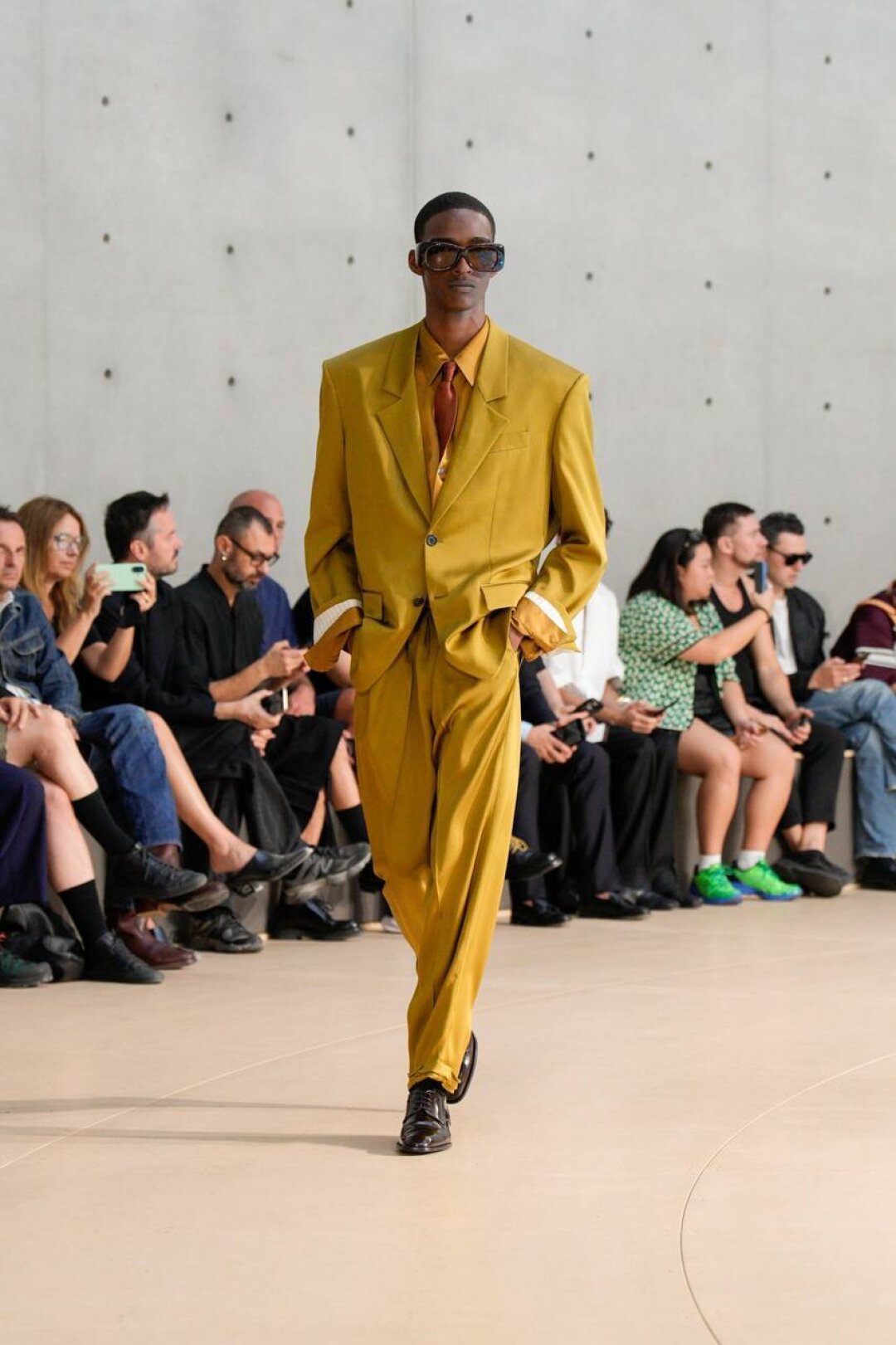 Без Словаря цветовых комбинаций Сандзо Вада в сезоне SS'26, по мнению Энтони Ваккарелло, точно не обойтись, а можно облегчить себе задачу и подглядеть уже готовые комбо с мужского показа Saint Laurent. Худрук мастерски жонглирует оттенками, собирая идеальные дуэты, трио и квартеты из обитателей цветового круга. Записываем: миксуем шафрановую двойку с горчичной рубашкой и медным галстуком, женим ментоловый с хвойным и песочным, сталкиваем баклажановый с болотным, оливковым и сочным манговым.