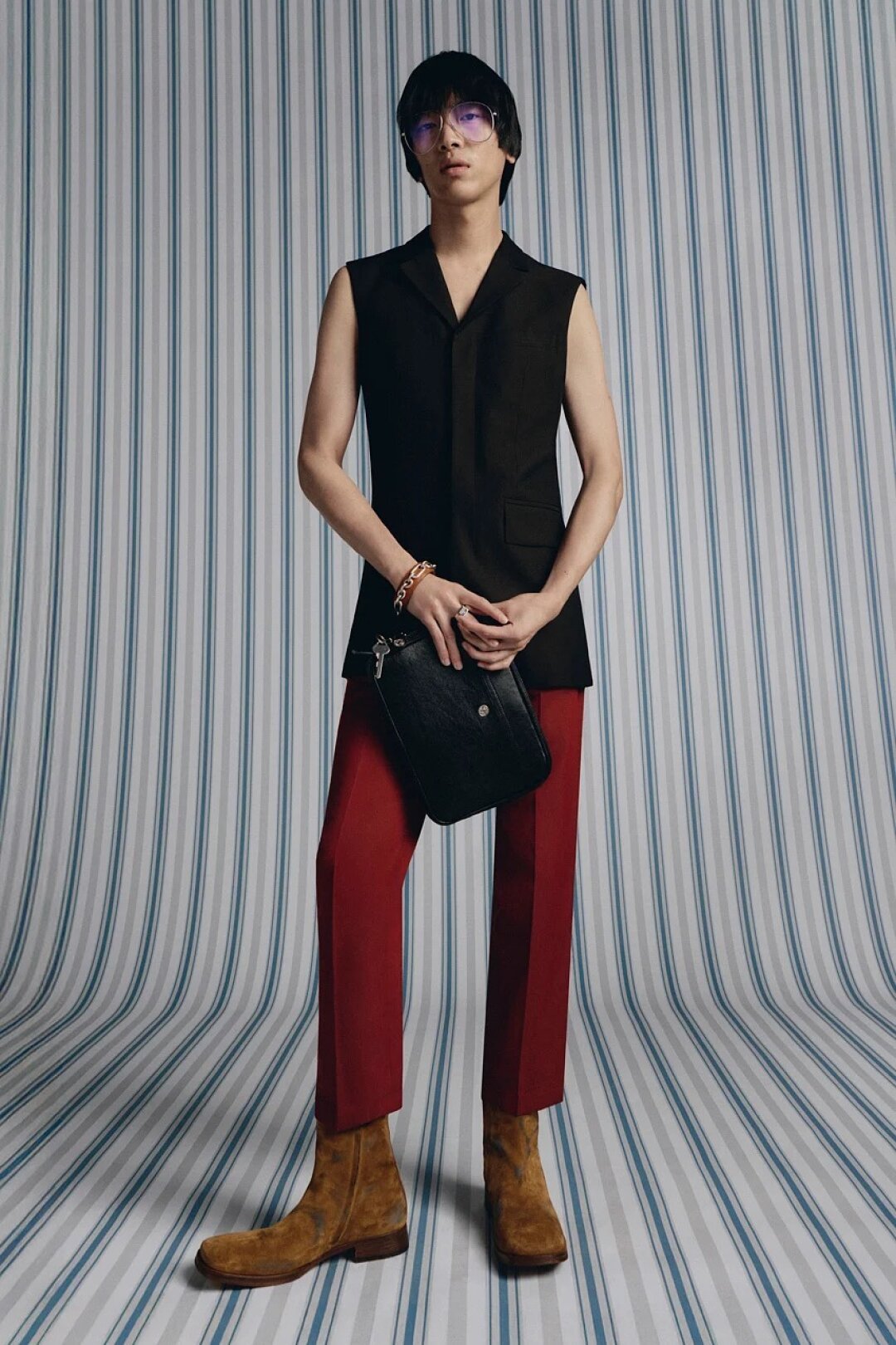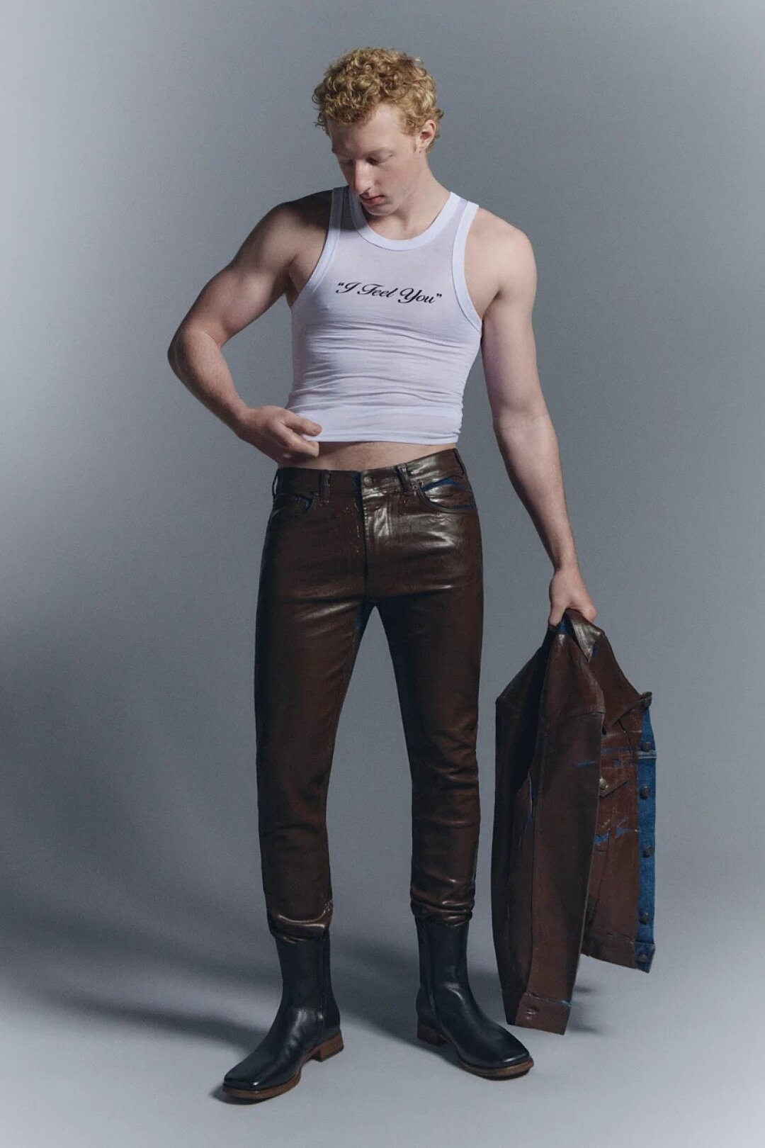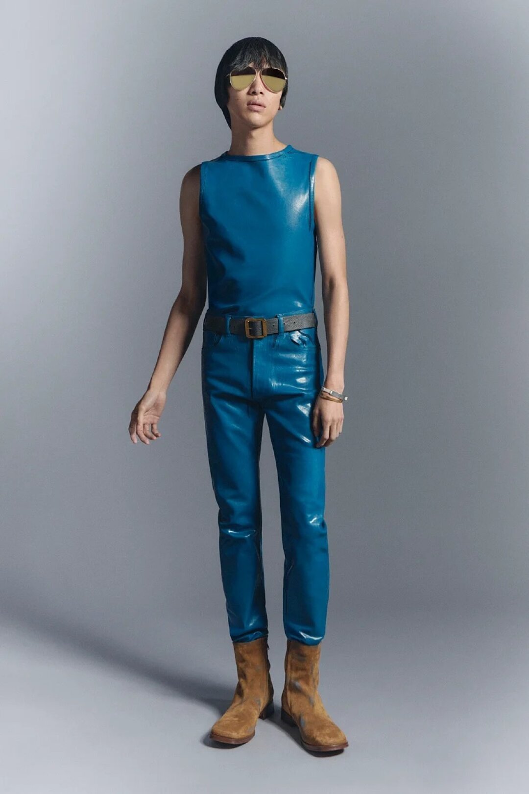Мужчина версии Джонни Йоханссона — идеальный бойфренд, чей гардероб можно полностью одолжить (если вы понимаете, о чем я!) без риска затеряться в оверсайзе (и образе мальчика-тинейджера). А если серьезно, худрук Acne Studios продолжает жонглировать фэшн-составляющими маскулинности, демонстрируя их через «эклектичную и спонтанную призму». Так, Йоханссон наотрез отказывается от лишних объемов в пользу приталенного кроя — примеряем двойки с зауженными брюками и укороченным пиджаком-ципао, втискиваем скинни-джинсы в лазурные казаки (ковбой 2.0!), носим мотокуртку в качестве топа (под низ вряд ли что-то поместится) и смело забираем из женского гардероба (туше!) пушистые кардиганы и майки из полупрозрачного трикотажа.