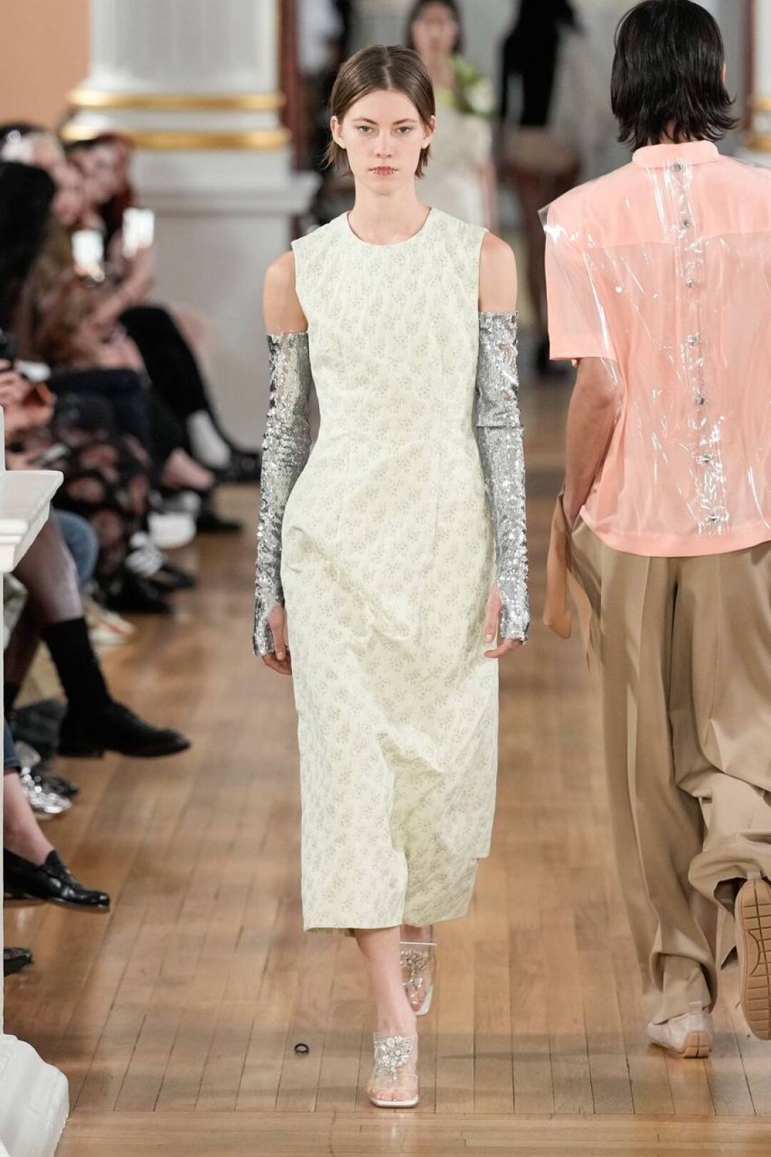 Судя по весенне-летней коллекции Simone Rocha, старомодные (в лучшем смысле слова!) кринолины и панье с нами надолго: по мотивам шоу миксуем с юбками из полупрозрачного шифона, пасторальными платьями-бандо из хлопкового шитья и нейлоновыми гибридами dollcore-платья и аутдор-ветровки. Не спешим расставаться и с обувью из прозрачного пластика (внезапно снова in!) и к ним в придачу примеряем виниловые плащи и даже платья с рукавами-фонариками (запоминаем стайлинг-трюк на случай дождя и надеваем фэшн-дождевики поверх шелковых миди в стиле ретро, стеганых пальто и расшитых жемчугом кардиганов!).