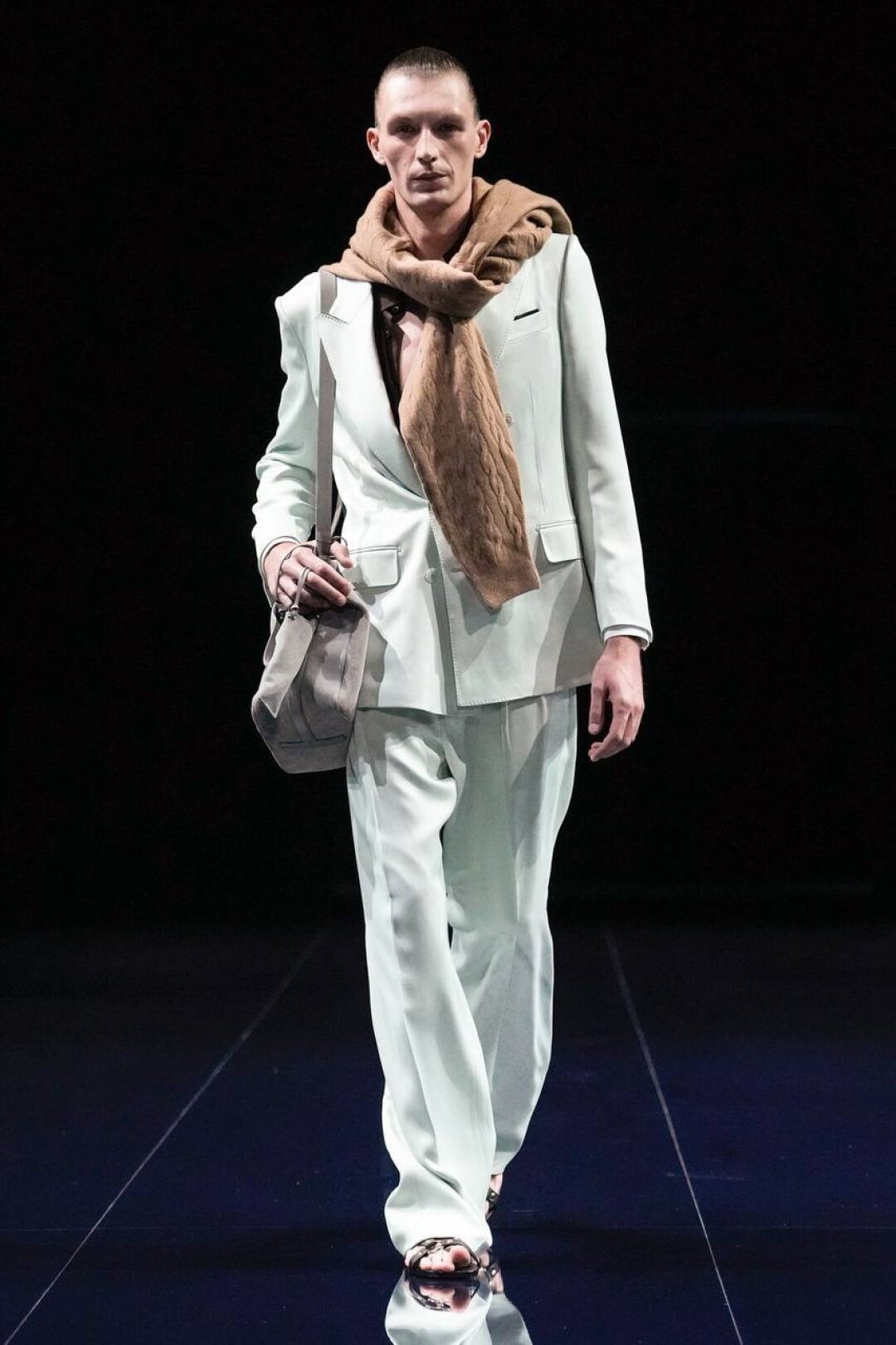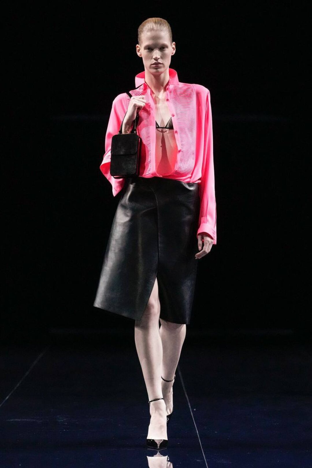 Образы для кинки-вечеринки (с дресс-кодом extremely fashionable!) чередовались с безупречно выполненными костюмами (очень по-фордовски!). Шоу открыла бургунди-двойка с приталенным жакетом и юбкой-карандашом, созданная будто из упаковочной крафт-бумаги с эффектом пчелиных сот. За ней показались белоснежные брюки и жакеты расслабленного кроя, варианты из кобальтового атласа (по мотивам показа забираем для эффектного даблдрессинга!) и карамельной кожи, а еще — приталенные костюмы в неоново-зеленом и пастельно-розовом.