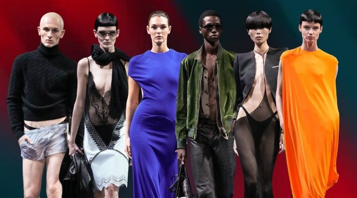 Было всё — от полупрозрачных намеков (увидели струящиеся шелковые халаты, хитоноподобные туники очерчивающие грудь и повторяющие контуры тела нюдовые платья, не говоря про расстегнутые до пупа рубашки и экстремальные мини-шорты) до прямолинейный фэшн-заявлений (виднеющиеся из-под шифонового платья-монокини стринги, шортики из невидимого нейлона и комбинации из кружева и немного шелка).