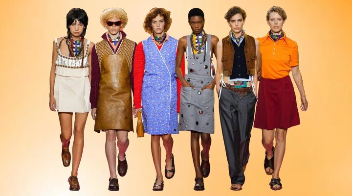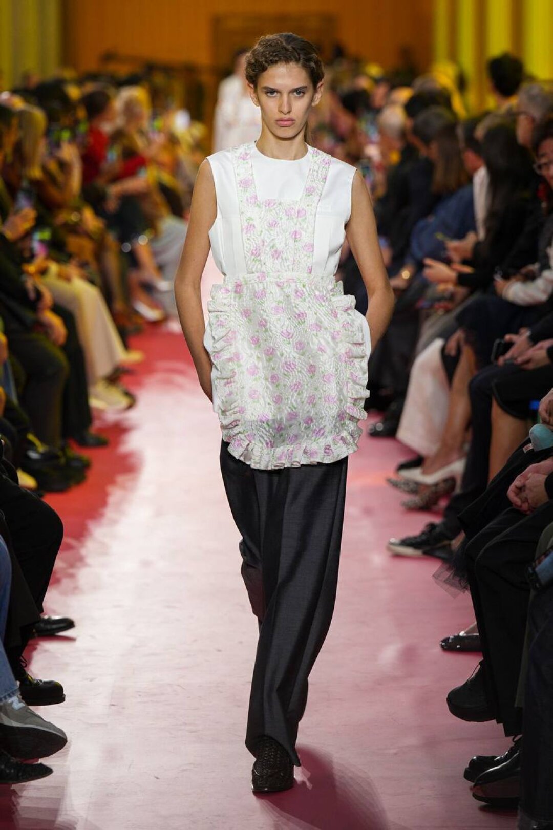 Всё бы ничего, и фэшн-архетипы теперь в моде (Демна, привет!), но только не выглядит ли это с виду безобидное заигрывание с атрибутами далекой от моды реальности издевкой? Мол, на заводы не ходим, ужин на пятерых не готовим, так хоть попритворяемся для своих! А может, это попытка вспомнить о бесхитростной жизни, когда обязанности разделены и понятны, а дорога — предсказуема и потому безопасна? И возможно, Миучча, родившаяся в Милане наследница фэшн-империи, всего лишь хочет сказать: «Давайте наденем фартук и жизнь станет проще!».