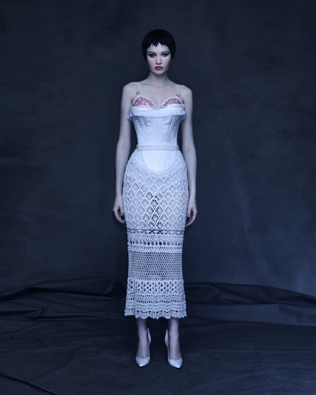 В Ulyana Sergeenko Haute Couture сезона осень-зима 2021/2022 вошли корсетные платья и корсеты отдельно, мини-шорты, пальто и укороченные кожаные куртки, украшенные перфорацией, жакеты с объемными плечами, шляпы и балаклавы. Традиционно Ульяна Сергиенко обратилась к народным промыслам — так при создании коллекции использовались хрусталь из Гуся Хрустального и елецкие кружева.