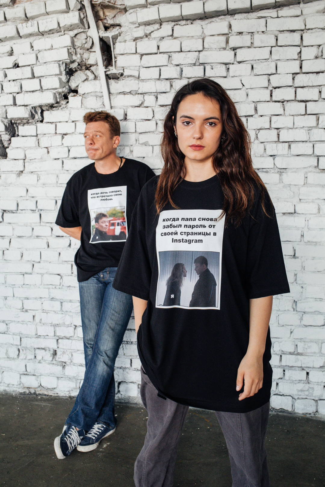Первыми коллекцию, в фирменной манере обыгрывающую смешные казусы и ситуации недопонимания в семье, примерили на себя исполнители главных ролей Павел Майков и Ирина Паутова. На принтах с героями сериала и @llllllll1111llllllllll передают всю палитру эмоций моментов, когда родители просят помочь залогиниться в соцсети, или, наоборот, когда дети выбирают такой лук, что «папа просит одеваться поскромнее».