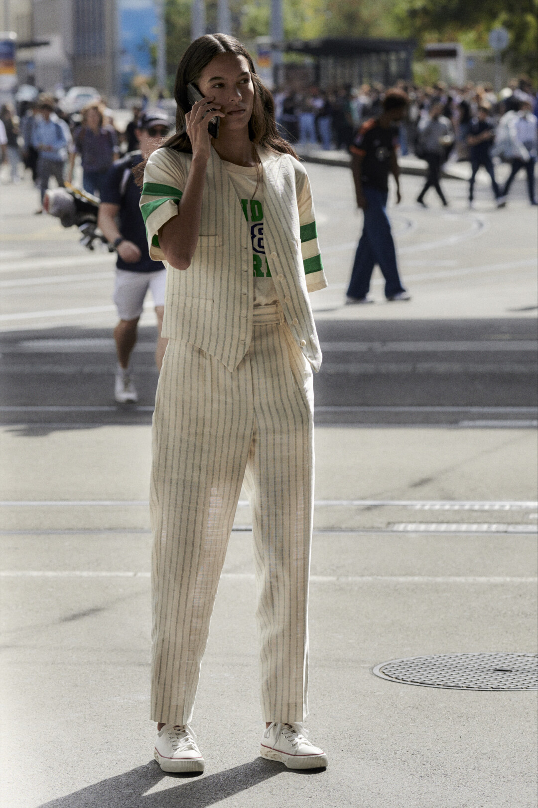 В своей новой коллекцией Sandro рассказывают историю о средиземноморском побережье, провоцируя в нас желание скорее отправиться на летний отдых. Отпускной гардероб по версии французского бренда состоит из вещей, которые можно легко миксовать между собой: костюма-тройки в полоску, бейсбольной футболки, джемперов, твидовых жакетов, объемных курток, рубашек и словно винтажных вязаных комплектов. Главные цвета коллекции весна-лето 2022 — розовый, оранжевый, бирюзово-синий, травянисто-зеленый и пурпурный.