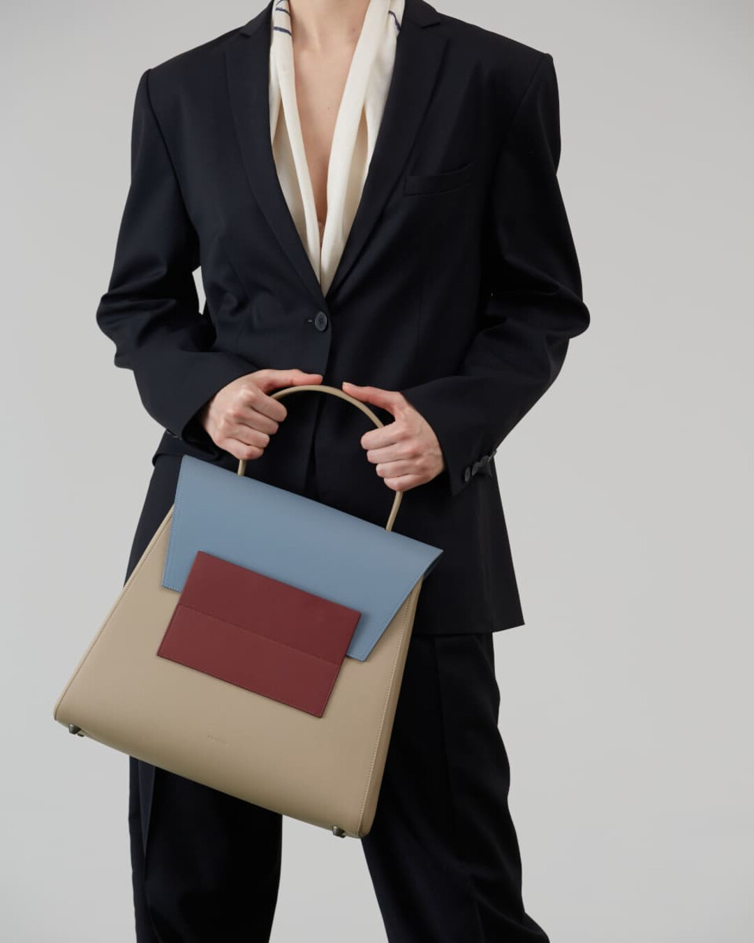 Архитектор Екатерина Ростова первую сумку создала для себя — как это часто бывает — за отсутствием альтернативы. Она склеила макеты из кальки, за основу для формы взяла тарелку из IKEA, а в качестве материалов выбрала стоковые итальянские ткани. С тех пор подход не изменился — все изделия шьются и вяжутся вручную из стоковых материалов в небольшой мастерской в Петербурге. Добавим к натуральным тканям простые формы, тактильность и агендерность моделей и срочно захотим себе такую сумку.