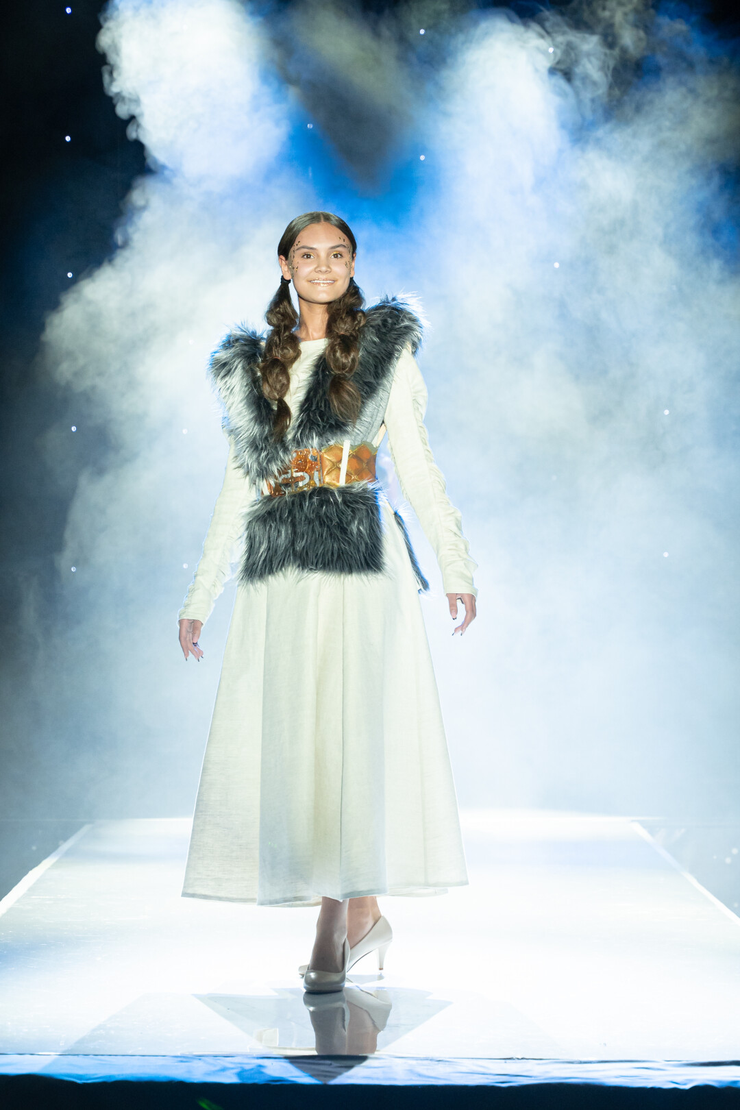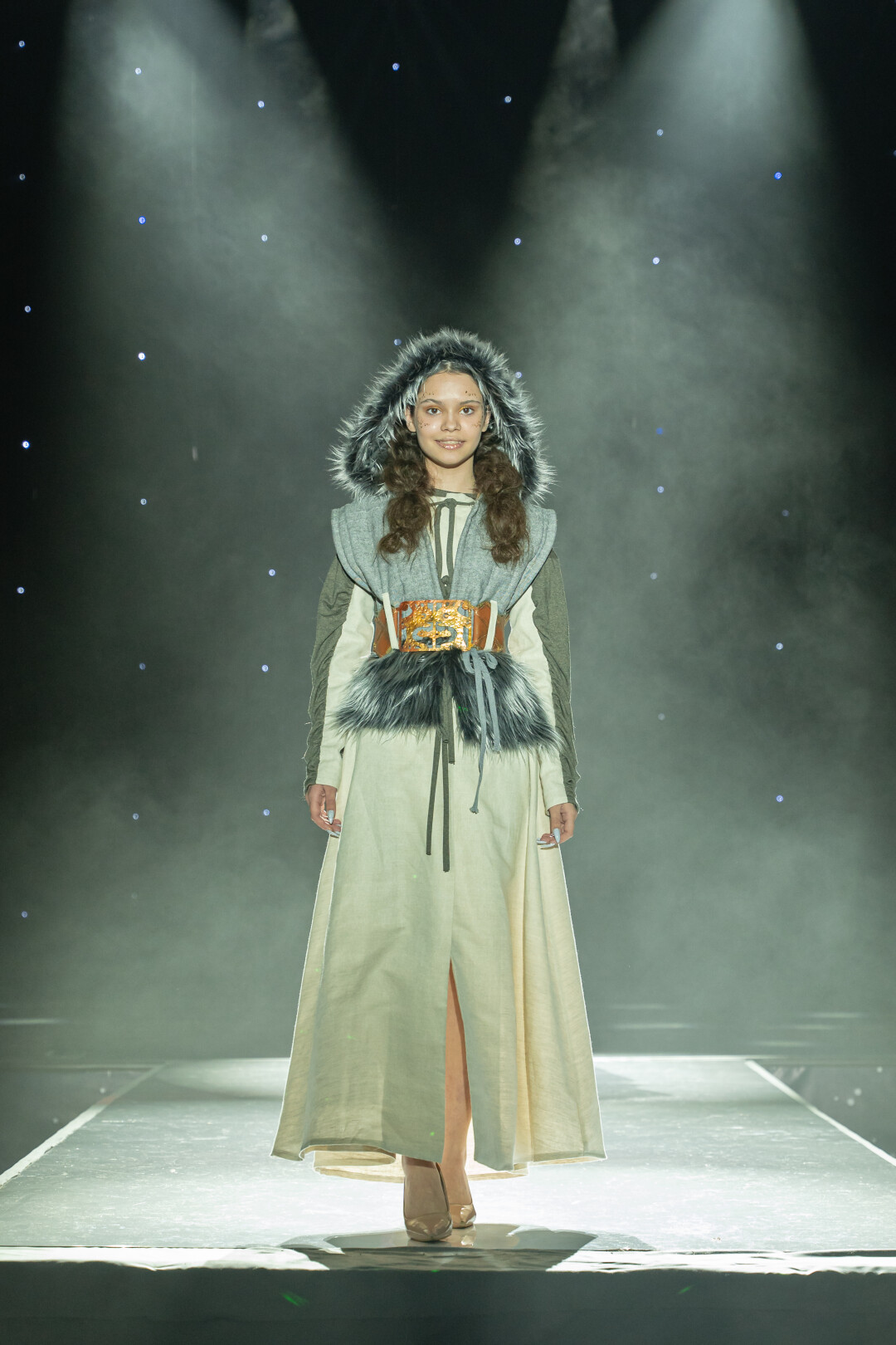 Одежду, несмотря на кажущуюся историчность, можно комбинировать и с повседневными вещами. Костюмы выполнены из натурального льна и дополнены искусственным мехом, а все украшения головных уборов, пряжки и броши выкованы мастером Игорем Шиловым вручную.