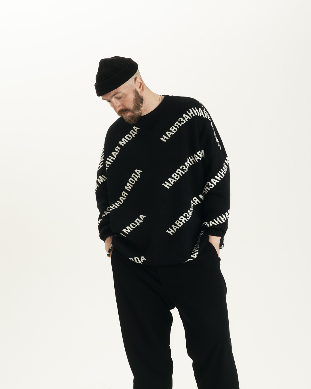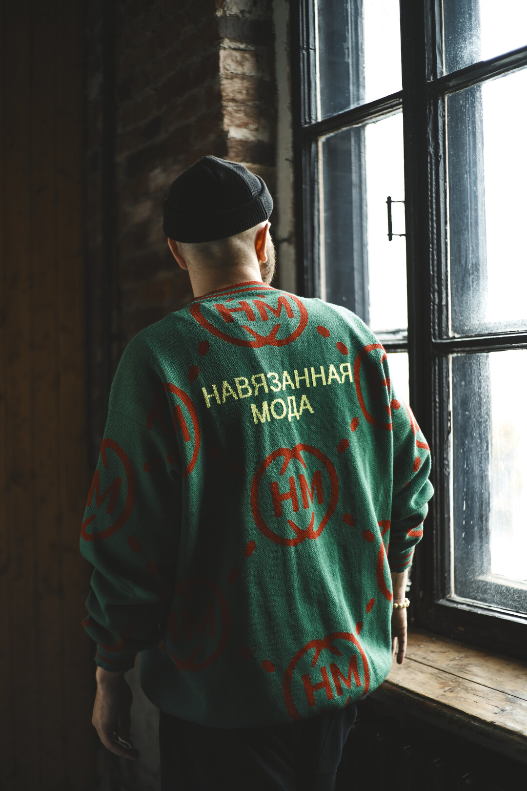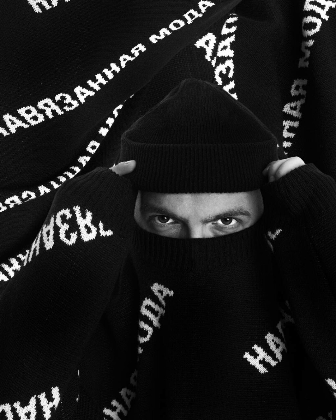 Так, в принципе, из моих соображений о праве человеческого выбора и влияния запада на нашу модную индустрию и родилась хит-коллекция "Навязанная мода", первая партия которой была полностью раскуплена. В коллекцию входят являющиеся иконам стиля вязаные кофты брендов Gucci, Balenciaga и Vetements, но переделанные в иронической мимикрии: к примеру, я взял кофту Balenciaga с ее фирменным шрифтом и кроем, повторил нитки, — при этом нитки у Balenciaga акриловые, я же выбрал более качественные, шерстяные, — и добавил надпись "навязанная мода". История считывается очень легко — моду-то, конечно, бренды навязали, а сами с российского рынка ушли, что для нас обернулось крупной проблемой.