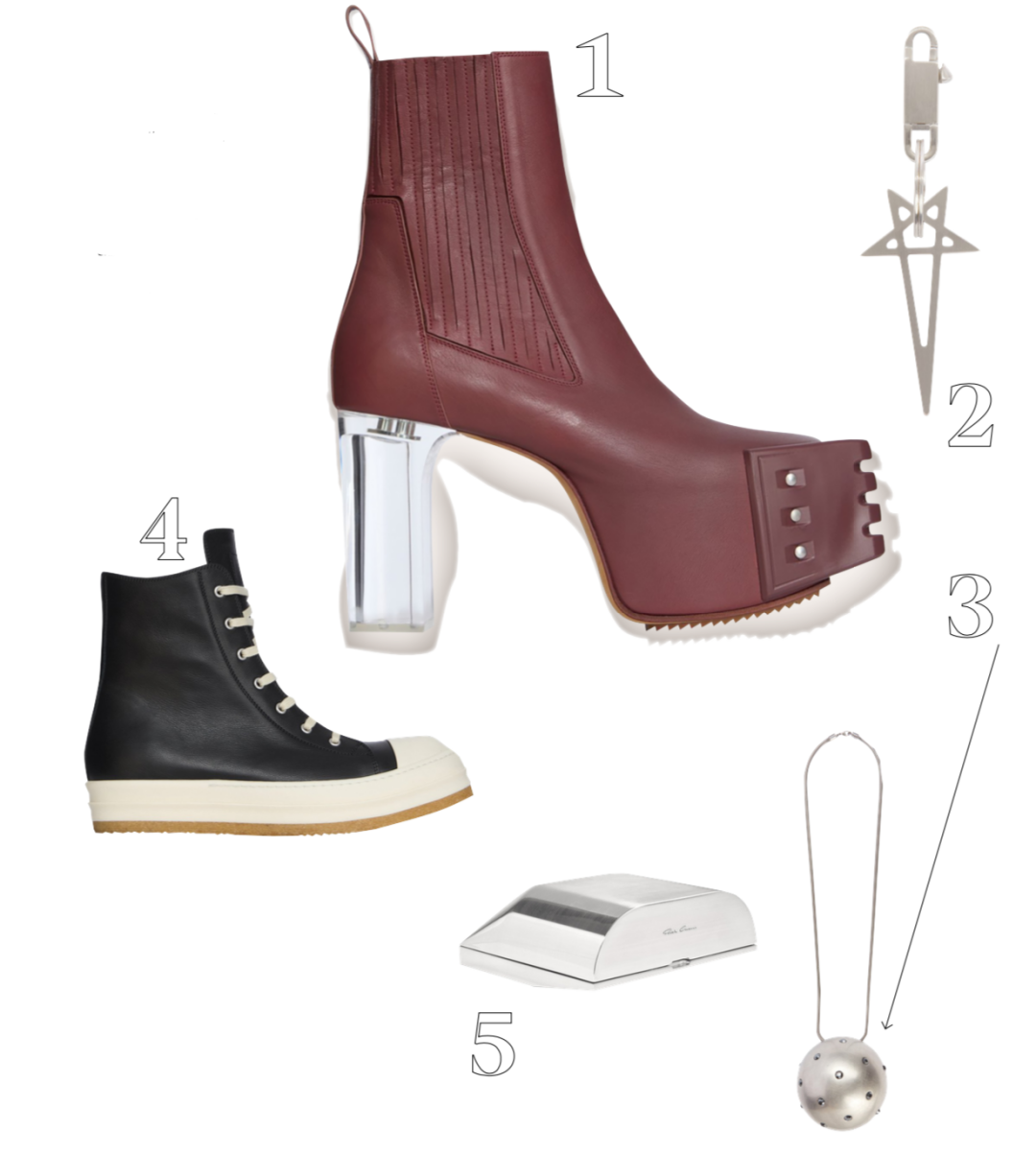 Фиксируем триумфальный успех оккультистского готик-гланжа Rick Owens (Prada для зумеров!). Следуя собственному кредо (с потенциалом мема!) “You should shut up and work and work and work!”, калифорнийский дизайнер-феномен Рик Оуэнс за 30 продуктивных лет собрал монументальный корпус работ (хватило на грандиозную выставку-ретроспективу Temple of Love во Дворце Гальера!), возвел музу Мишель Лами в ранг мировых фэшн-див и влюбил модную индустрию в эпические шоу (с ходящими по воде моделями в Palais de Tokyo!). В России от Рика тоже без ума: его номад-тоги не снимает худрук musicAeterna Теодор Курентзис, а в стейтмент-ботильонах { 1 } бодро вышагивает готическая дива Salavat Kypere. Мы же забираем в новый сезон копытца в остромодном терракотовом оттенке, которые будем чередовать с фирменными спортшик-кедами { 4 } и меховыми кроссами (тренд!). Ну а кожаные косухи и бруталистские пальто-гробики дополним звучным обвесом: кулонами-пентаклями { 2 , 3 } и бесценными клатчами-слитками { 5 }.