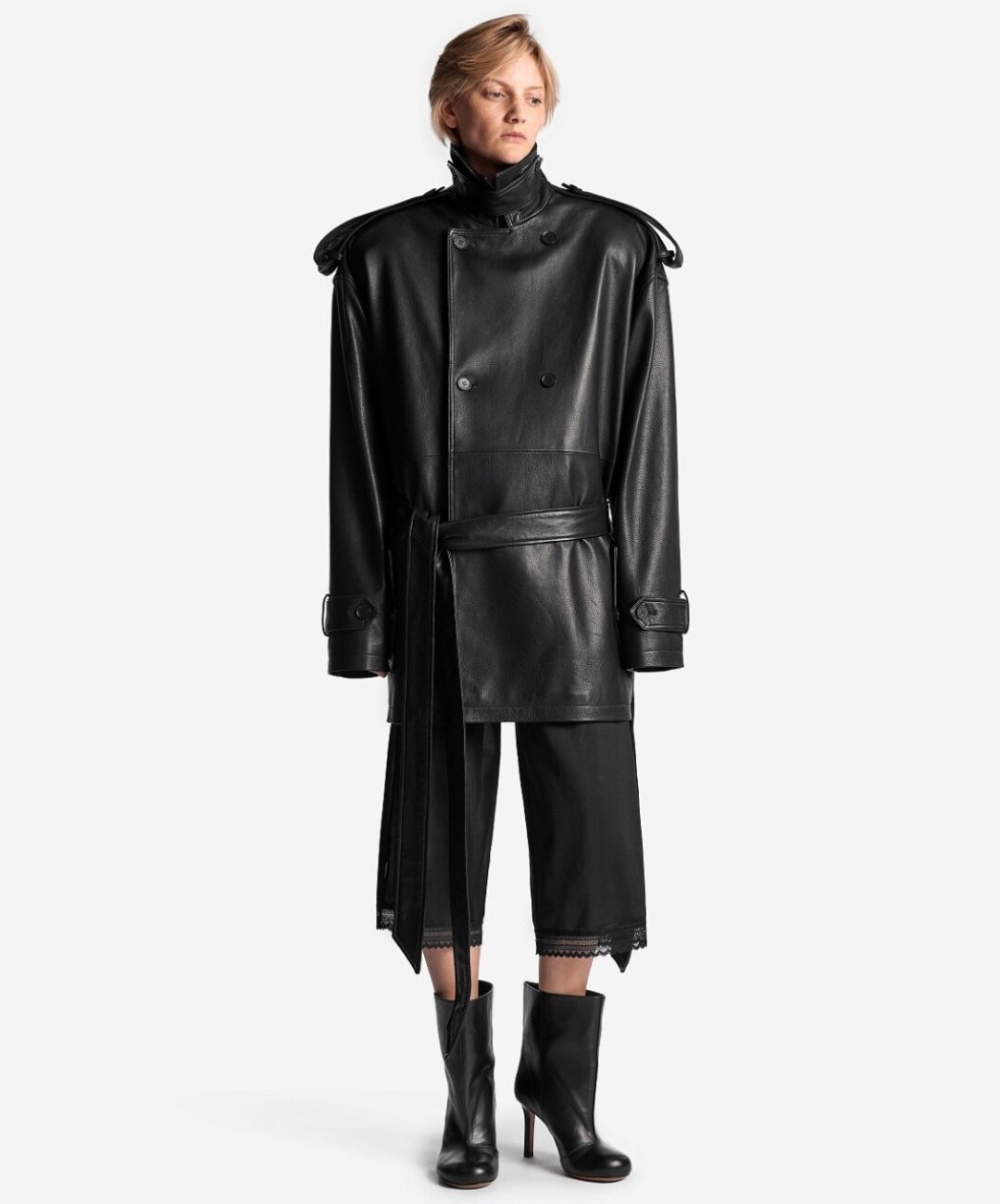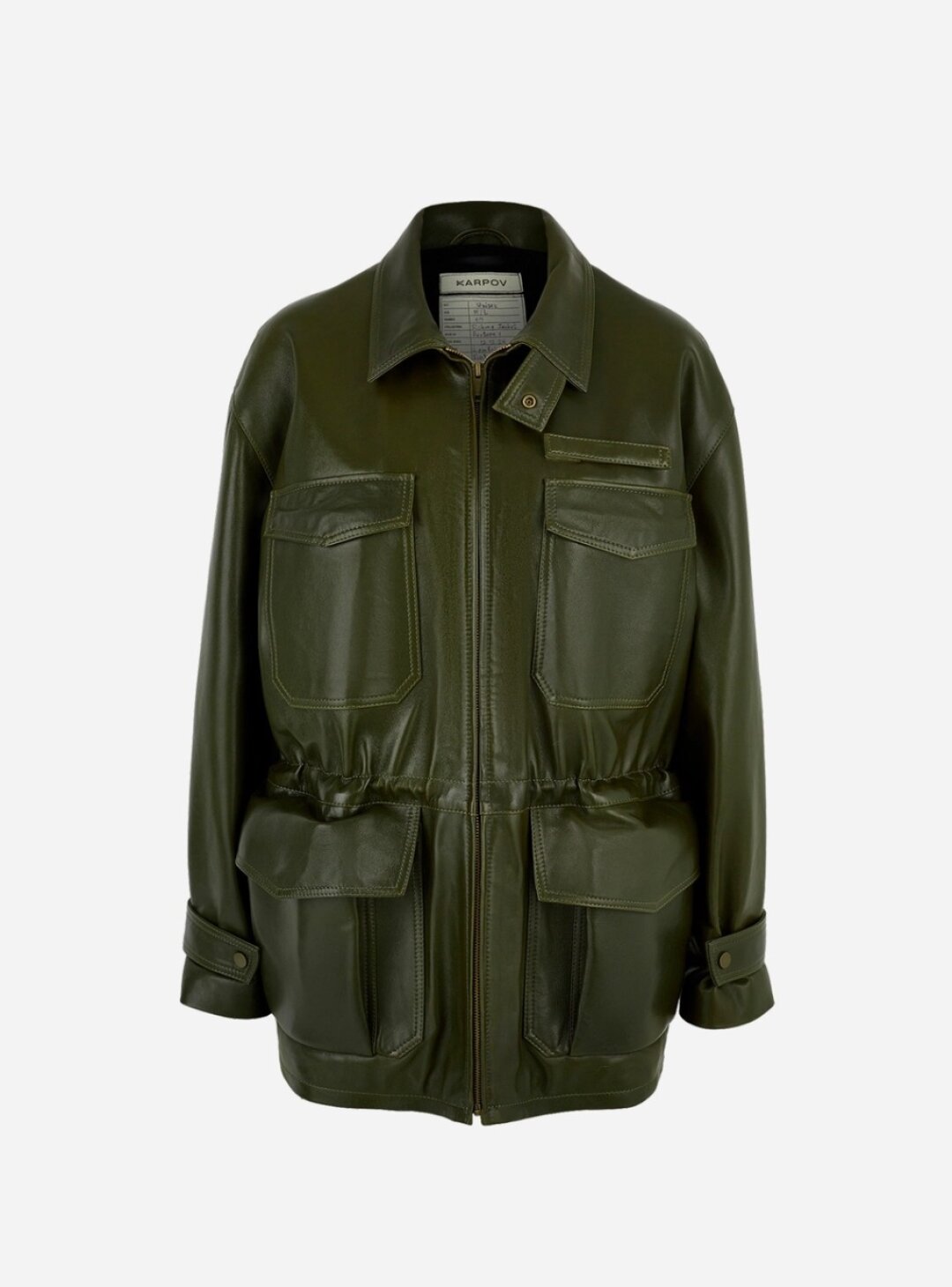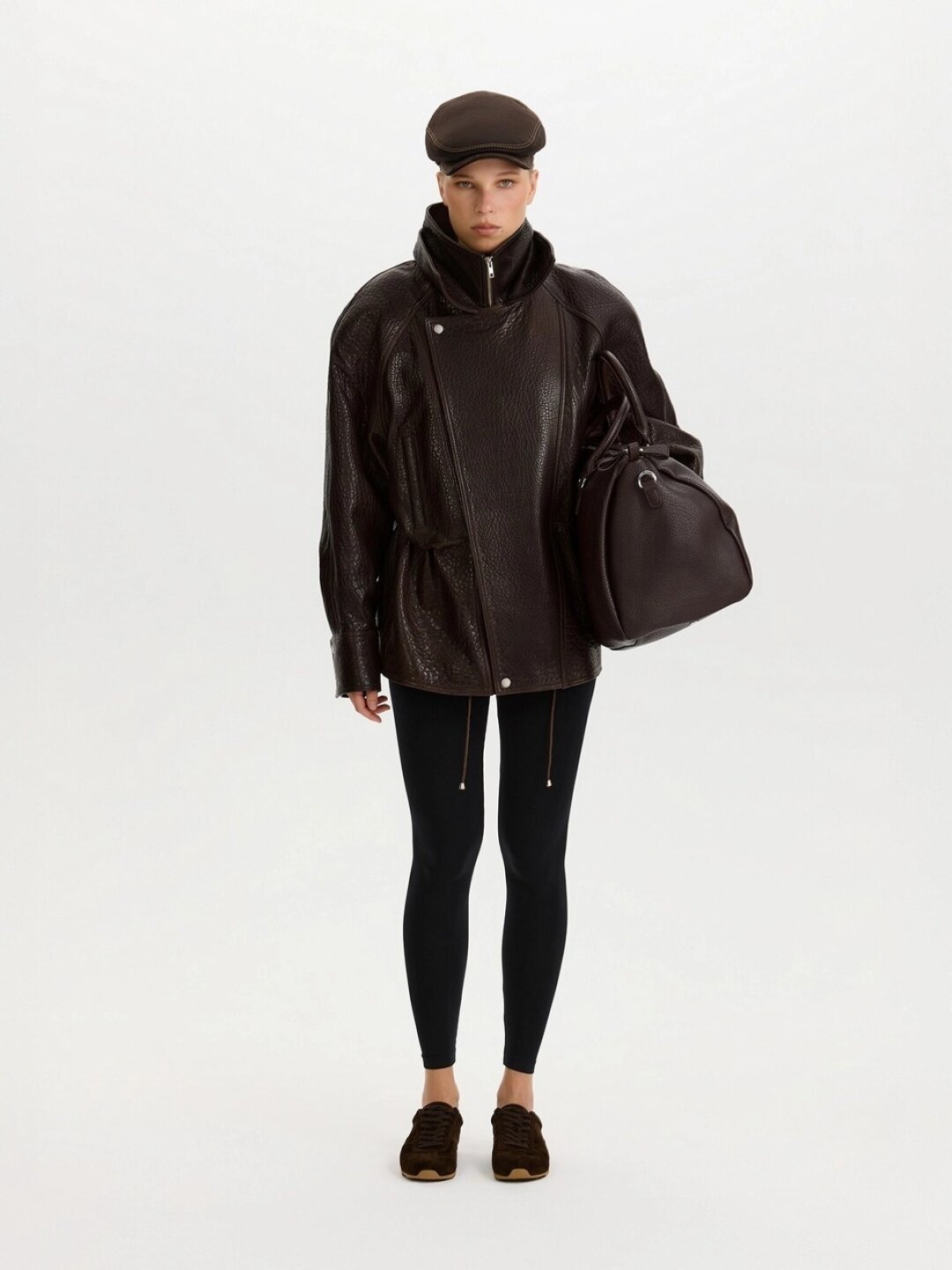Главная кожанка сезона — парка с поясом или кулисками на талии. Модель Эльза Хоск миксует вариант из шоколадной кожи с гибридами ботфортов и рыбацких сапог Alaia, а фэшн-инфлюенсер Мария Червоткина выгуливает по парижскому саду Тюильри куртку Karpov Studio в оттенке хаки. Айтемы не хуже отшили локалы Rockabi и Lesyanebo (в глянцевой коже винного цвета!).