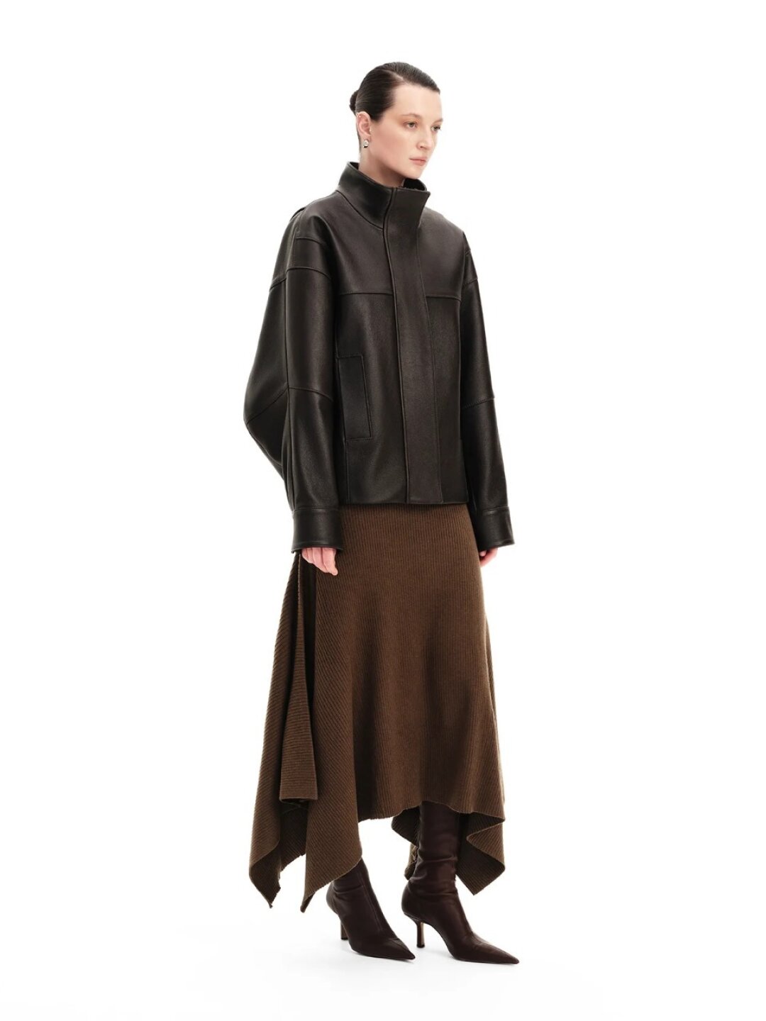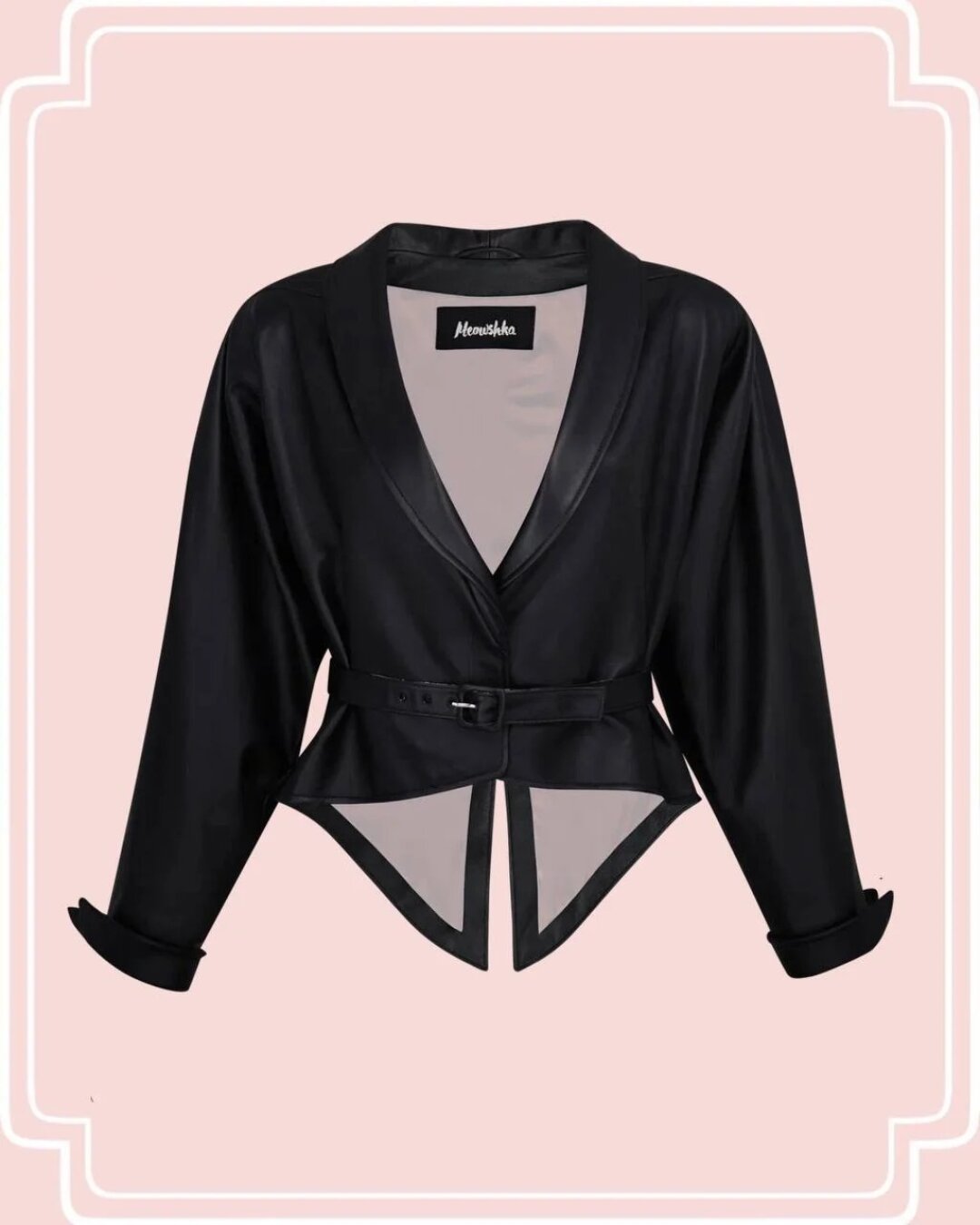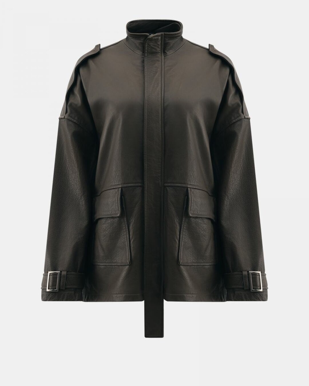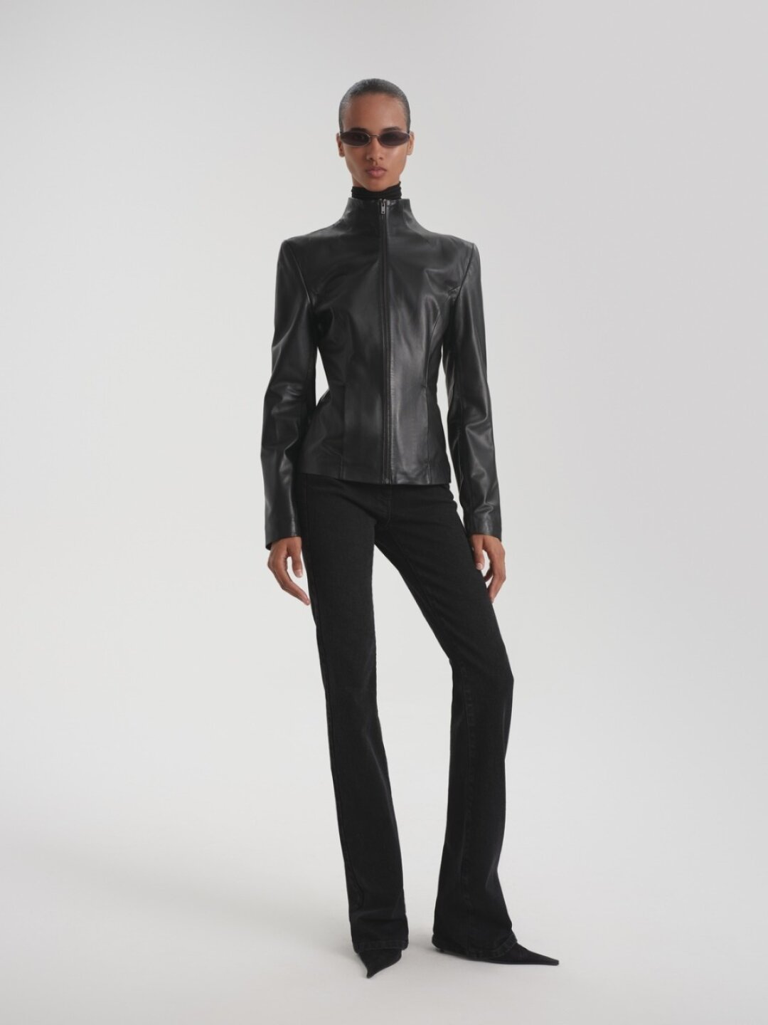 Главная кожанка сезона — парка с поясом или кулисками на талии. Модель Эльза Хоск миксует вариант из шоколадной кожи с гибридами ботфортов и рыбацких сапог Alaia, а фэшн-инфлюенсер Мария Червоткина выгуливает по парижскому саду Тюильри куртку Karpov Studio в оттенке хаки. Айтемы не хуже отшили локалы Rockabi и Lesyanebo (в глянцевой коже винного цвета!).