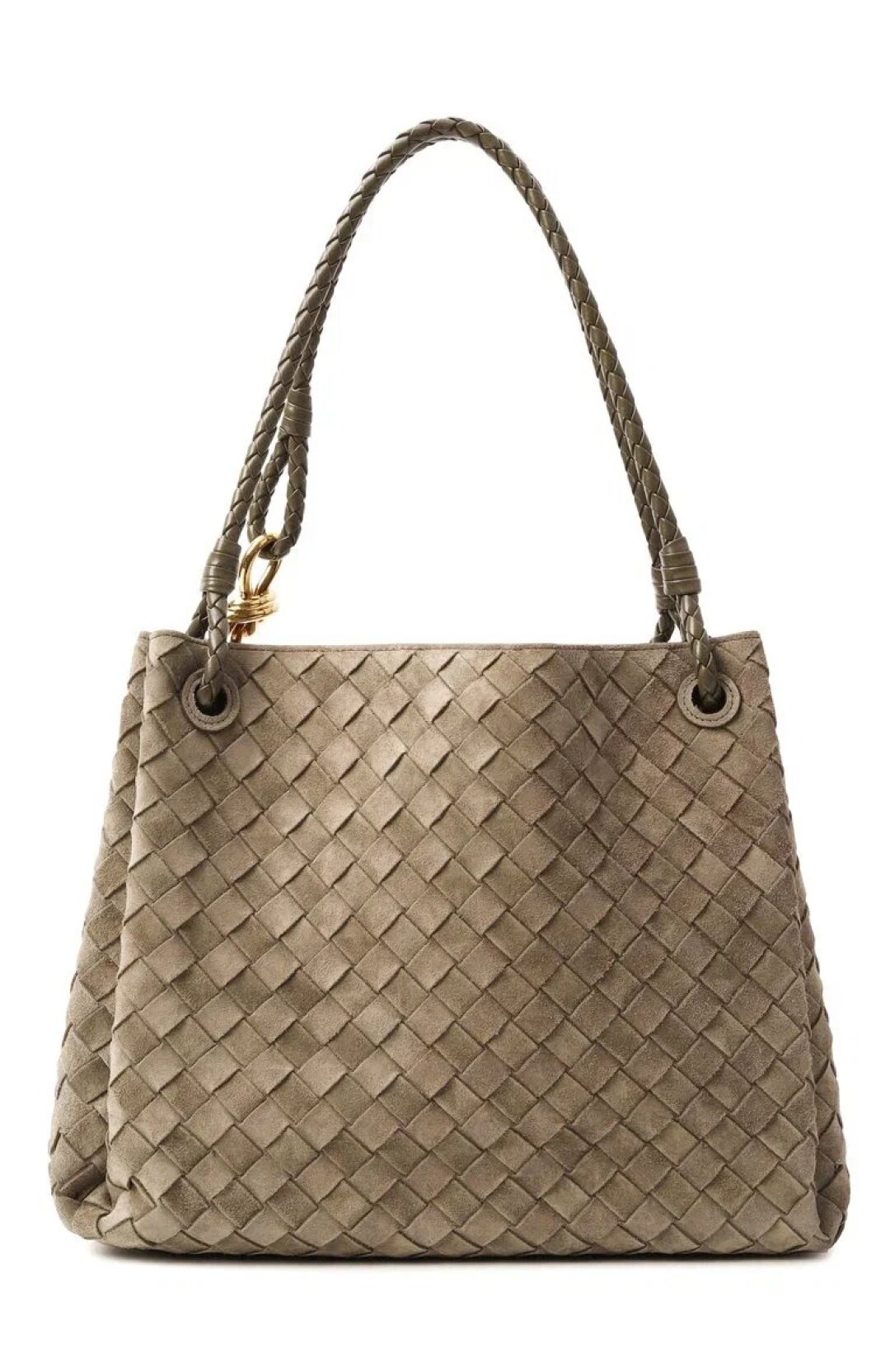Наш фаворит — плетеный гранд-тоут Bottega Veneta в модном оливковом оттенке (миксуем с серыми офискорными двойками и тотал-денимом!).