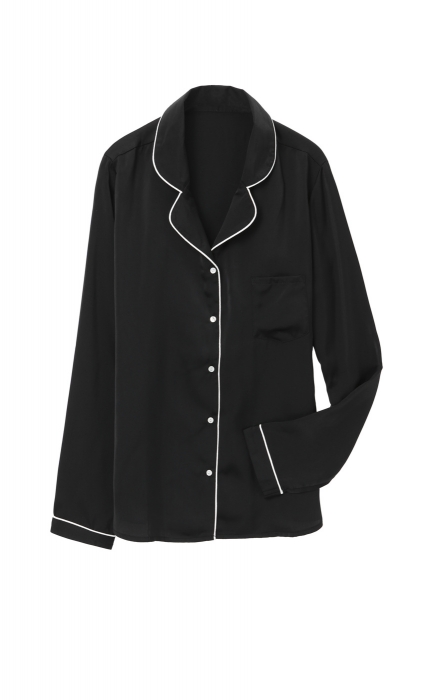 Если бы Марлен Дитрих и Кэтрин Хэпберн осмелились выйти в свет в пижамных рубашках, то черная блуза Etam, безусловно, стала бы их фаворитом — этой зимой пижамам надлежит покидать пределы спальни, подменяя смокинги. (Etam)