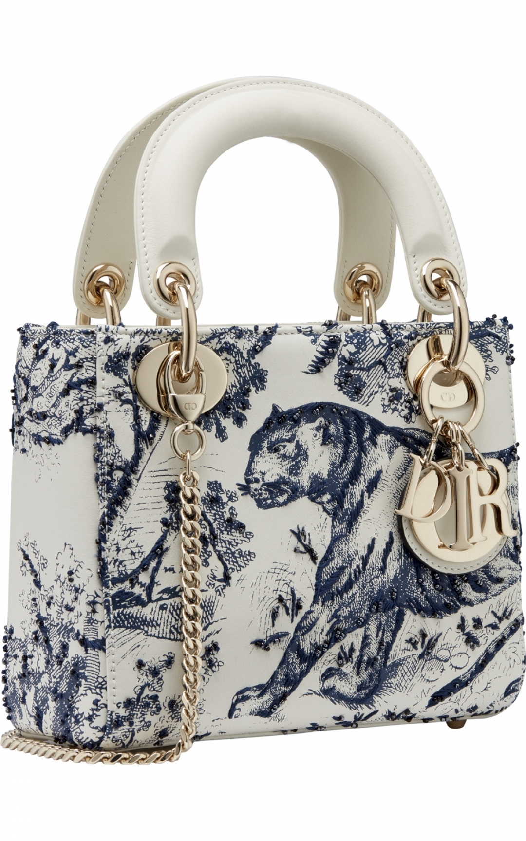 Культовую сумку Lady Dior заполонили джунгли: тигры, львы и крокодилы вручную нарисованы пером, наподобие старинных гравюр, а потом еще и расшиты аккуратными стежками. Изображения стилизованы под французский классический принт туаль де жуи (его обожала Мария-Антуанетта), но дизайнер дома отказалась от идиллических картин с любовными сценами и сельскими зарисовками. «Больше дичи!» — решила Мария Грация, и в традиционных для техники цветах на хлопке, шелке и кружеве на главных вещах коллекции, включая плащ-макинтош, оказались вышиты или набиты звери, будто сошедшие с иллюстраций индийских романов Киплинга. Вероятно, это символизирует свободную и немного агрессивную женщину нового времени — и такой феминизм нам по сердцу. (Dior)