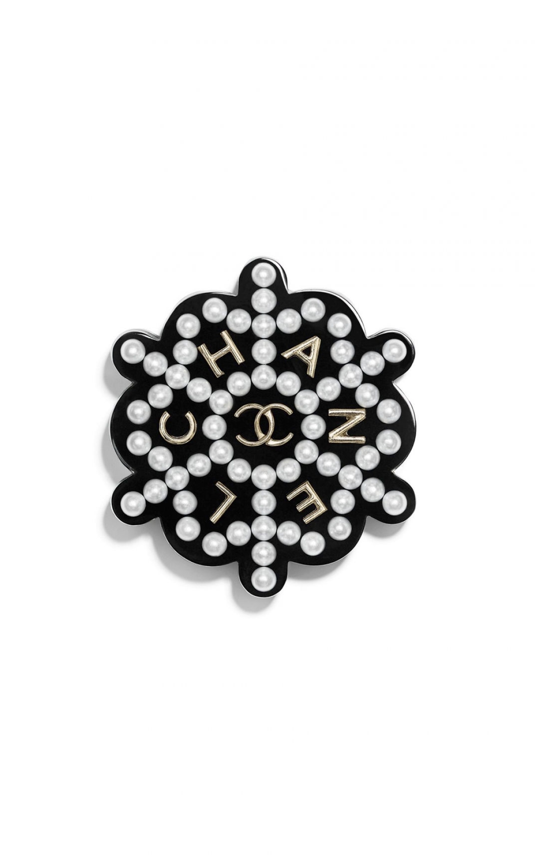 Новая линия Coco Neige от Chanel посвящена зимним видам спорта и, конечно, искусству apres-ski. Сумки-дубленки, стеганые варежки, шапки-ушанки ослепят любого на склоне в Санкт-Морице. Но мы голосуем за брошь-снежинку с логотипом марки и жемчугом, под неусыпным взором Карла Лагерфельда сложившимся в морозный узор. (Chanel)