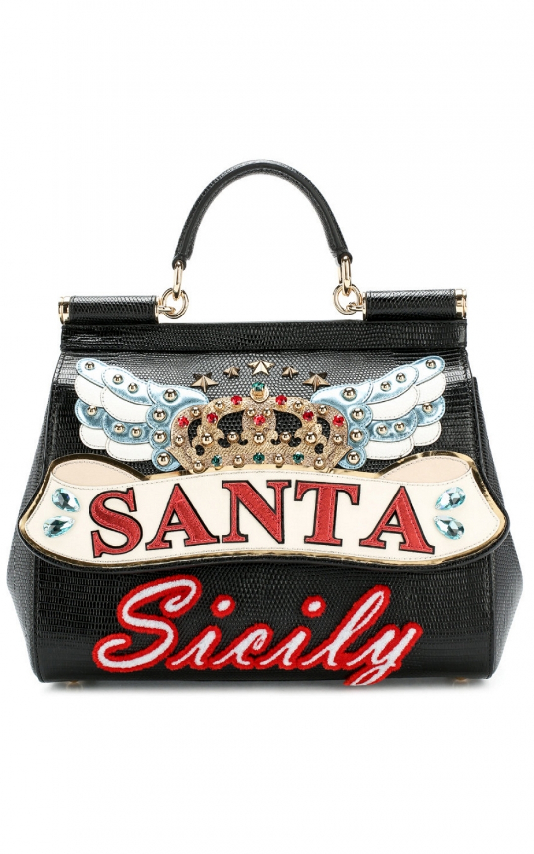 На знаковой для Dolce & Gabbana сумке Sicily красуется аппликация с надписью Santa. Может, это и означает «святая», но мы считаем, что это вопль-намек, обращенный к Санта-Клаусу! Мы были хорошими девочками весь год! Ну или почти. (ДЛТ)