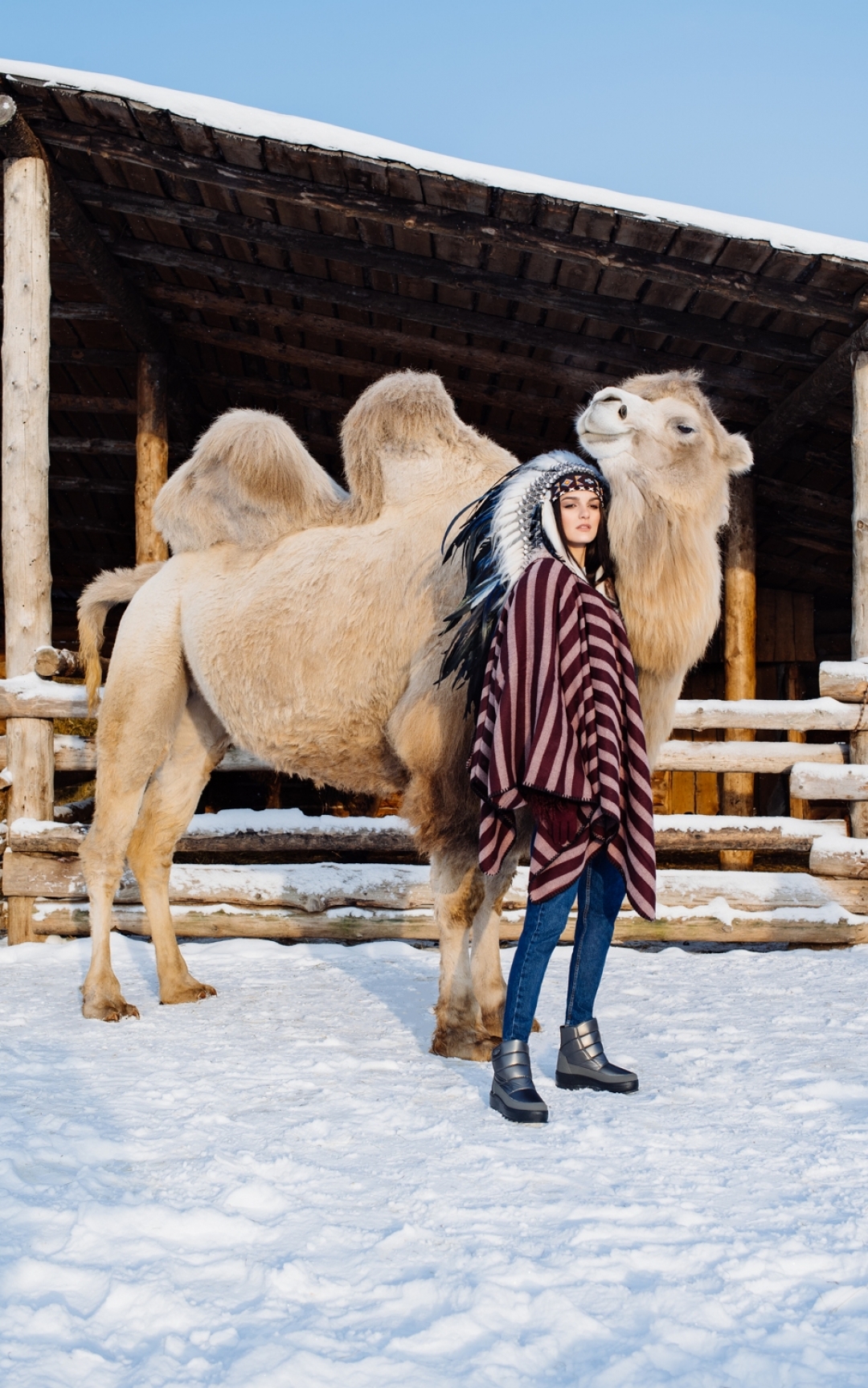 В зимней коллекции Bosco Fresh дизайнеры отлично поработали с русскими кодами: тут и шерстяные свитеры как у полярников, и ностальгичные принты с Эльбрусом как у советских альпинистов, и вышитые на свитшотах пушистые обитатели сибирского леса: медведи, волки, лисы и зайцы. В парках с отделкой из меха норки, лисы и енотовидной собаки хочется немедленно снарядить полярную экспедицию, но мы будем носить их в городе, воображая себя Руалем Амундсеном или Фредериком Куком. Самые отважные могут начать покорение вершин с курорта «Роза Хутор» — красные, синие и желтые горнолыжные костюмы будут отлично видны на склонах. (Bosco Fresh)