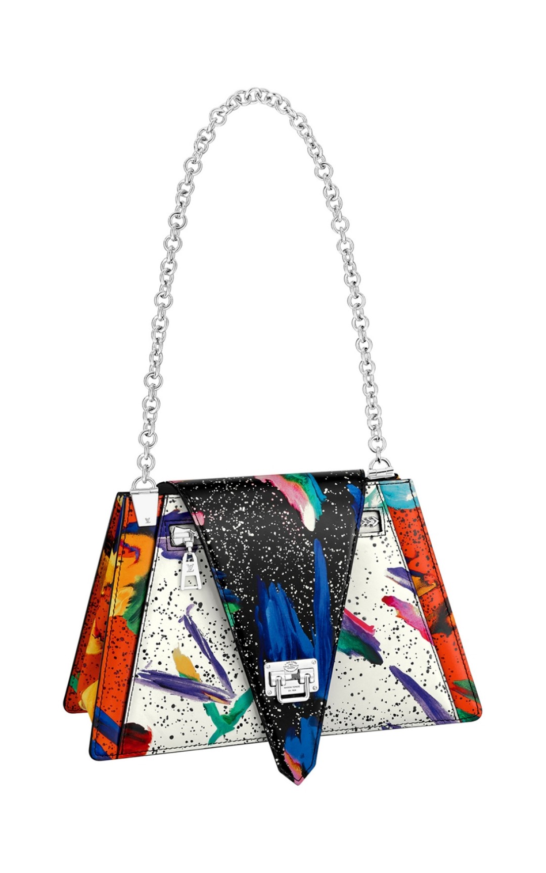 Хотя креативный директор женской линии Louis Vuitton Николя Гескьер и взялся за тотемы сорокалетней давности, он превратил их в гостей не из прошлого, а из будущего. Сумка-пришелец будто из sci-fi-фильма расписана броским принтом итальянских футуристов культовой дизайн-группы Memphis (да, тоже из 1980-х!), но брутальная серебряная цепь и застежка точно прилетели из гранжа. В неожиданном сплаве эпох у Николя получился постнеофутуризм без ностальгии и пыли. Разве что звездной. (Louis Vuitton)
