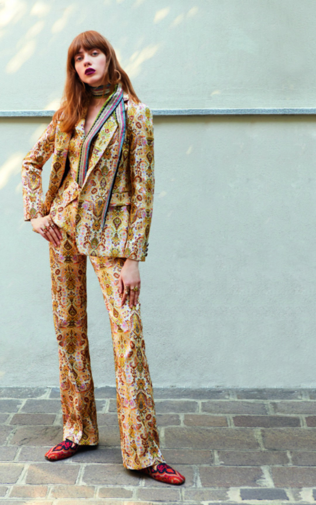 Дизайнер Вероника Этро назвала летнюю коллекцию Paсific Zen и переосмыслила знаковые для бренда элементы в манере стран побережья Тихого океана. Оверсайз-клатчи украшают мексиканские помпоны, жаккардовые брюки и мини-платья из крепдешина — гавайские тропические принты, пальто скроены на манер кимоно, а шелковые блузы — вьетнамских туник. Мы в восторге от расшитого пейсли богемного парчового костюма-тройки с легким калифорнийским акцентом 1970-х. Вот бы так преподавали географию! (Etro)