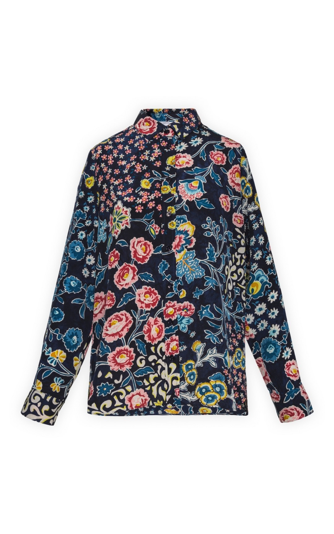Рубашка с буйным цветочным принтом от Gerard Darel — воплощение курортной беззаботности. Представьте ее хоть с белоснежными брюками, хоть с голубыми джинсами клеш: идеальнее пары не найти. Уместна на любом берегу — от Финского залива до набережной Биаррица. (Gerard Darel)