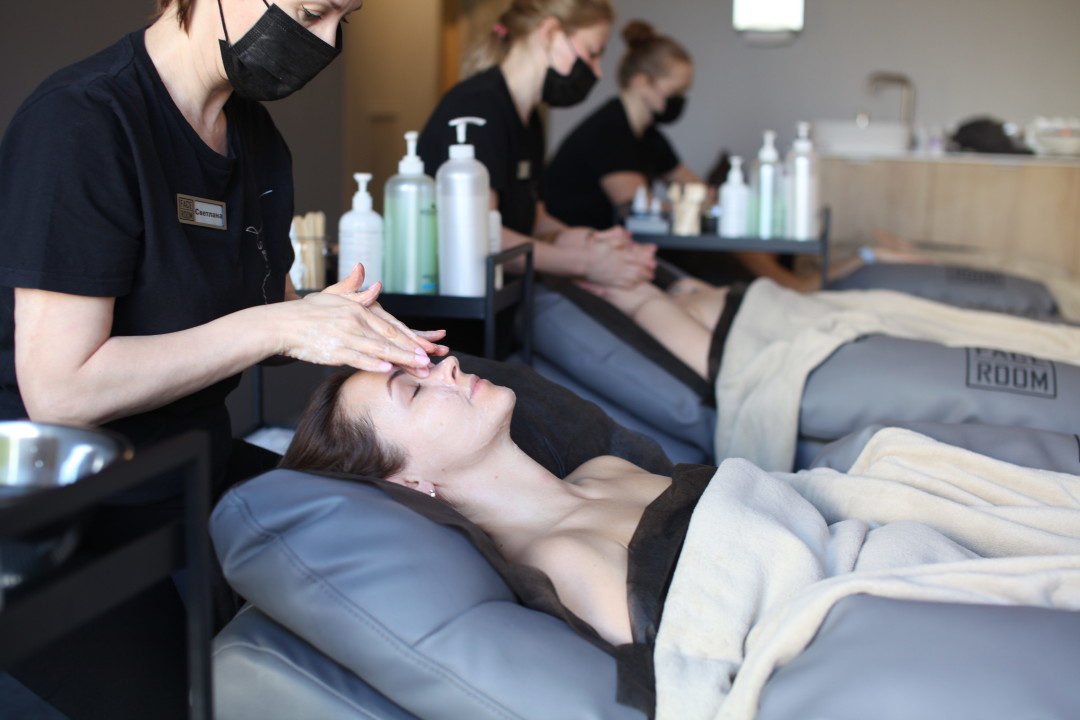 Студии придерживаются концепции open-space*, чтобы избежать тесных помещений и добавить воздуха в пространство естественной красоты. Отдельное внимание стоит обратить на кресла-реклайнеры, которые производятся под заказ и спроектированы так, чтобы обеспечить анатомически правильное положение тела во время процедуры. Кресла в FaceRoom разработаны для удобства и полного погружения клиента в процесс и для правильной работы фейс-гуру.