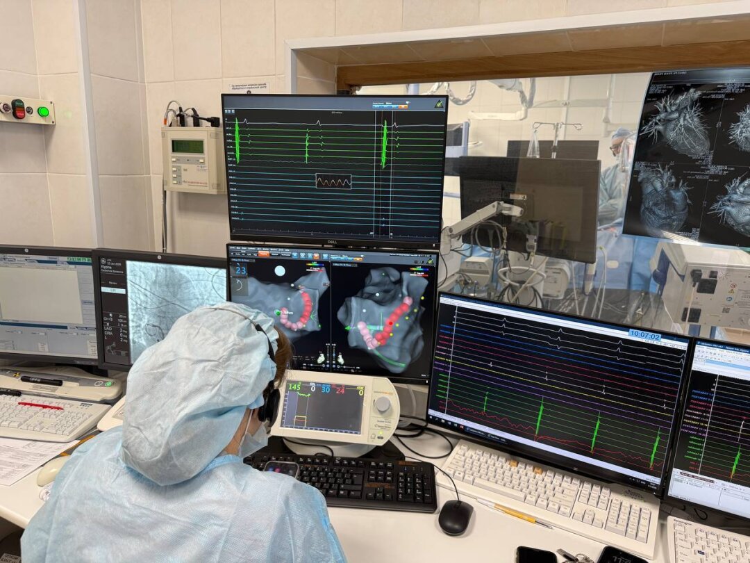 Состояние 51-летнего мужчины, страдающего аритмией, в течение нескольких лет ухудшалось, и он вынужден был регулярно ложиться в больницу. В апреле 2025 года врачи более точно определили вид аритмии — желудочковая экстрасистолия (ЖЭС). Она опасна тем, что может спровоцировать жизнеугрожающие состояния, ведущие к внезапной остановке сердца. У пациента внеочередные сокращения (экстрасистолы) желудочков достигали очень высокого показателя — 40 000 в сутки. Помочь ему могла только радиочастотная абляция, во время которой с помощью катетера «прижигаются» участки сердца, генерирующие лишние импульсы.