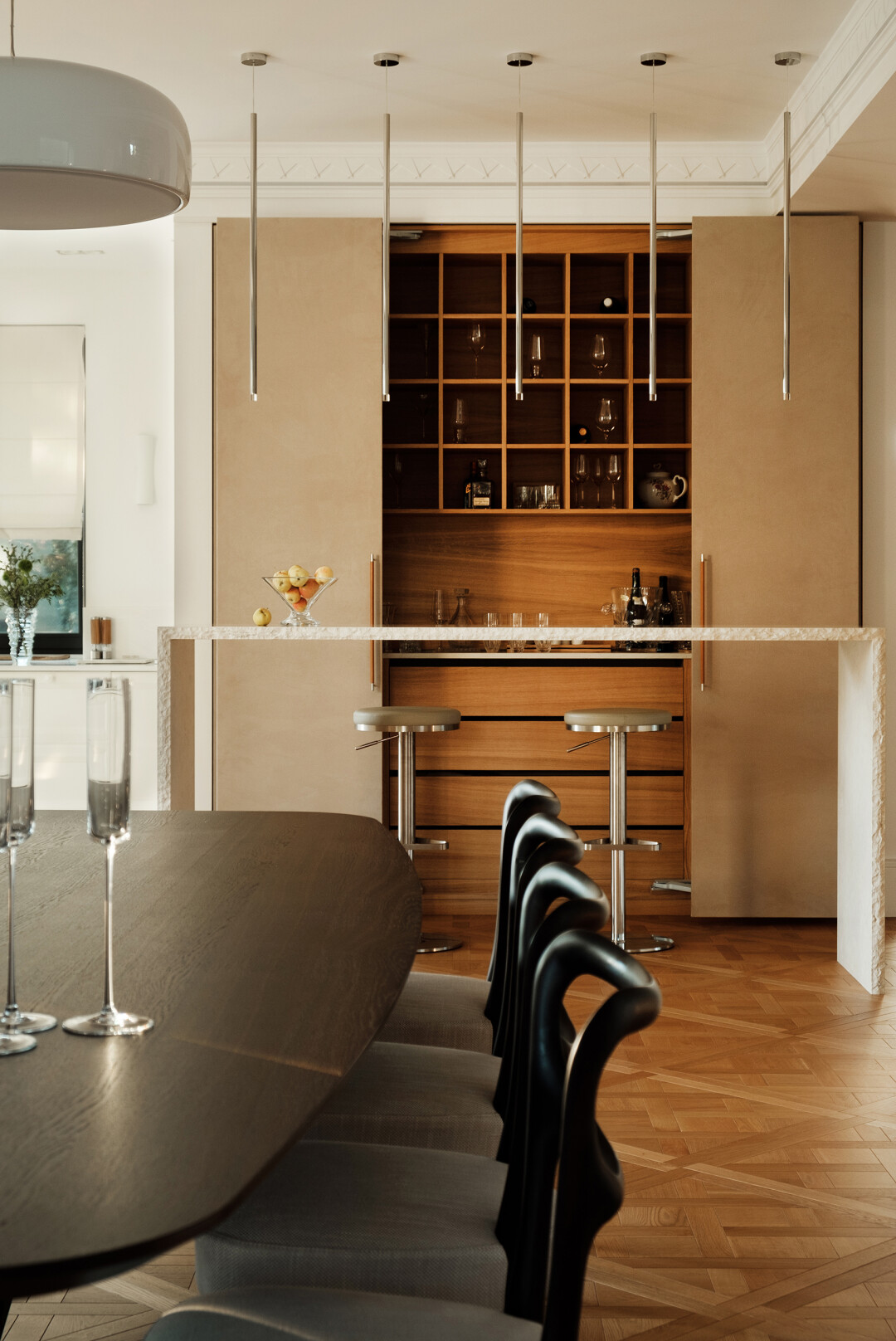 Главную роль в интерьере играет винтажная мебель. В процессе ее поиска мы познакомились с очень интересными и уникальными людьми. Что-то ребята сами привезли из Парижа на обычном самолете. Но, конечно, после такой доставки мебель пришлось реставрировать.