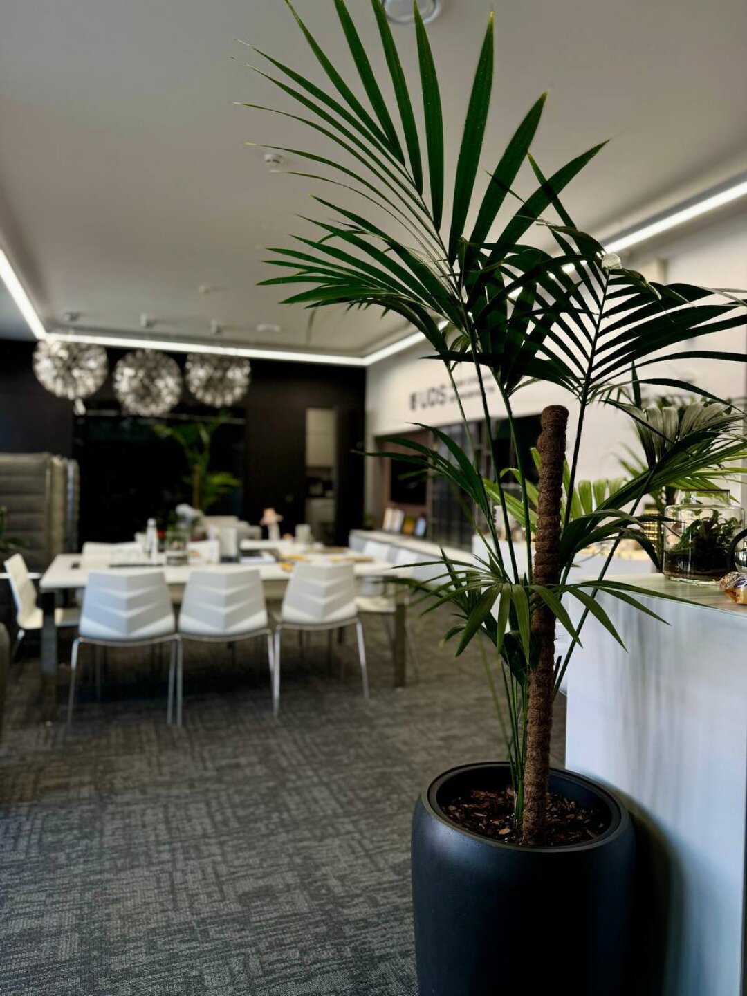 Для озеленения офисов в ход часто идет строгая геометрия: сансевиерии, фикусы лираты, замиокулькасы — стильные, выносливые и с характером. В ресторанах зелень становится важной эстетической составляющей: она может свисать, виться и создавать полутени, похожие на джунгли. Главное — чтобы растения выглядели живыми, а не пластмассовым оазисом для фото.