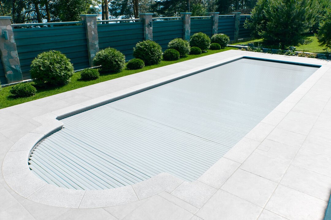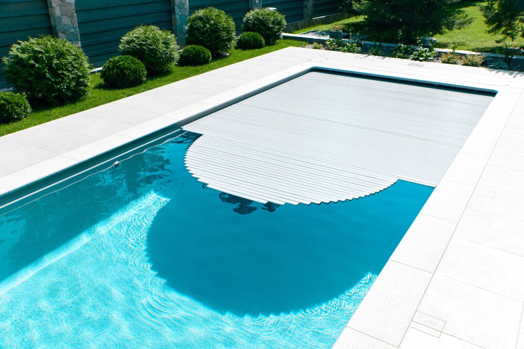 Особая гордость — наше роллетное покрытие, которым можно управлять одним нажатием кнопки. Оно состоит из специальных пластин: верхняя часть прозрачная, а нижняя — черная. Такая конструкция собирает солнечные лучи и ускоряет нагрев воды, при этом сохраняя до 80% тепла. Благодаря этому бассейном можно пользоваться даже в самые холодные месяцы.