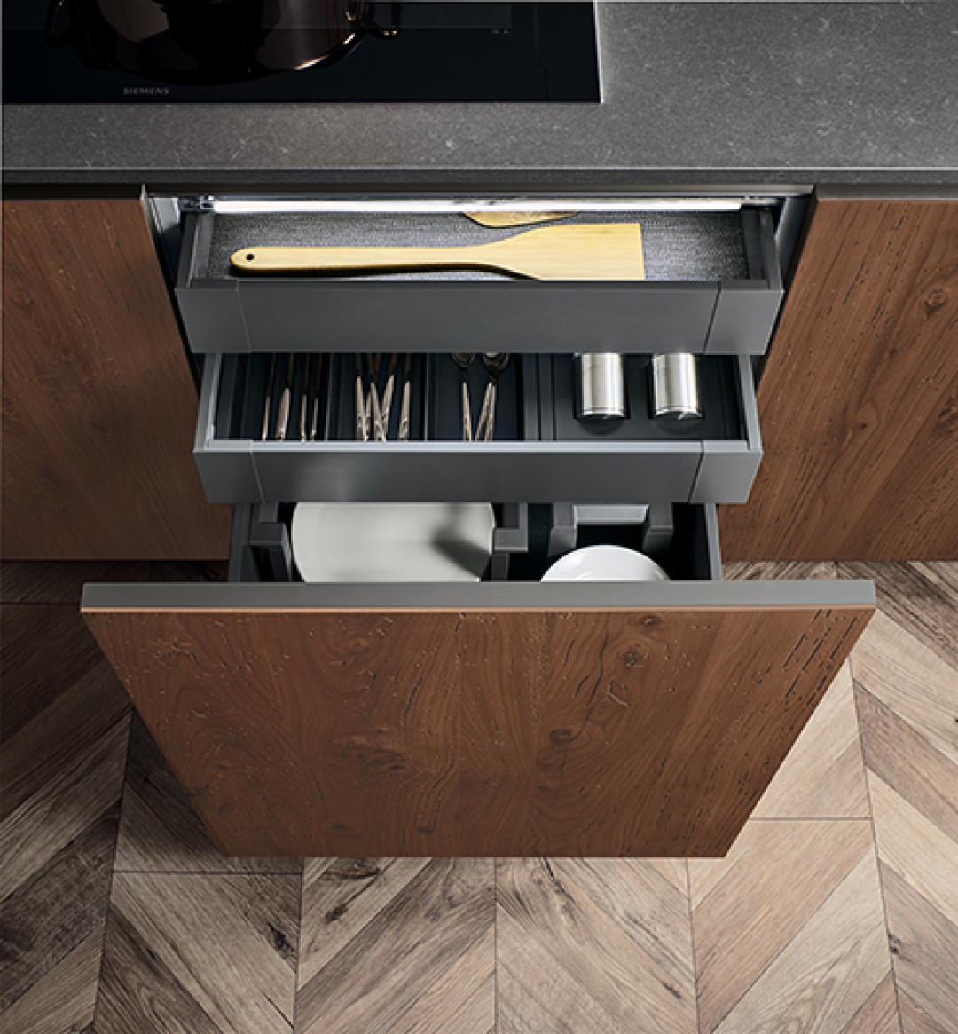 Компания Veneta Cucine имеет свое собственное бюро разработок, где трудятся опытные дизайнеры, художники, конструкторы и архитекторы. Благодаря этому, на выходе получается качественное и функциональное изделие, отвечающее всем нормам и стандартам. Дизайнеры фабрики делают ставку на создание прочной и практичной мебели, которая отличается эксклюзивностью моделей и оригинальным дизайном по последним тенденциям кухонной моды. Для изготовления применяются натуральные материалы: древесина отборных пород, шпон, фанера, ламинат, МДФ, ДСП, металл, мрамор, гранит, пластик и стекло.