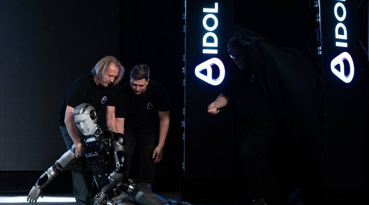 В России представили первого антропоморфного робота Aidol с искусственными интеллектом, который умеет ходить, коммуницировать с людьми и взаимодействовать с предметами. Его презентация состоялась в Москве 12 ноября, созданием занималась компания «Айдол», входящая в Новую технологическую коалицию, как и «Промобот», которой руководит пермяк Алексей Южаков.