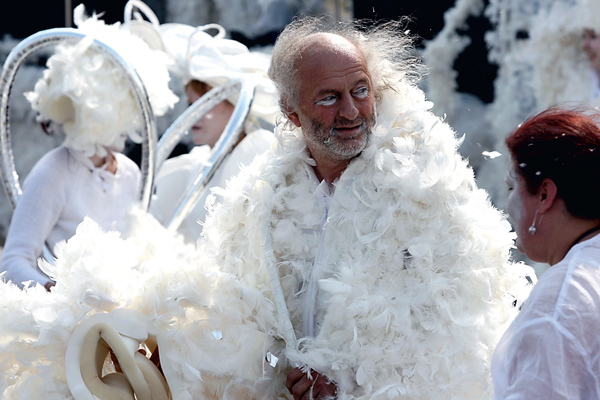 Мы приспосабливаем наши идеи к ситуации и месту, при этом важно, чтобы нам самим было интересно. Но когда к нам обращаются с просьбой устроить праздник, чтобы на всю катушку, мы всегда предлагаем Белый карнавал. В сентябре 2007 года для самого масштабного Белого карнавала в московском Коломенском я собрал все лучшее в мире из того, что есть в романтическом уличном театре, связал вместе, создал единую среду, и праздник продолжался десять часов без остановки! Не было начала, не было финала! До и после мы делали подобные карнавалы в усеченных вариантах. Например, в том же году поставили три шапито у Петропавловки, а вокруг выступали танцоры в образах белых фантастических бабочек. Их создал голландский хореограф японского происхождения Шусаку Такеучи. Но продюсеры, к сожалению, не смогли вытянуть все шоу в полном объеме.