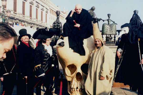 Как-то на выставке в Париже я увидел удивительной красоты акварельную серию Шемякина «Карнавал СанктПетербурга». Когда в 1994 году Cirque du Soleil гастролировал по США, я узнал, где под Нью-Йорком живет Шемякин, напросился в гости и начал уговаривать Мишу поучаствовать в «Дьяболо», ведь вся эта история началась именно с его акварелей про карнавал, где внешнее — это праздник, а внутри — чертовщина и метафизика. Я подумал, что интересно соединить праздничность клоуна и метафизику демона в одном сюжете, к тому же взять в партнеры интересного человека и вместе покопаться в этой теме. Шемякин в молодости пробовал что-то делать в театре, но потом бросил, и я постарался вернуть ему интерес. В результате сюжет спектакля был построен на крысах: Шемякин сделал маски, а Адасинский с его девчонками играли крыс. Многие говорят про Мишу: «Суровый, тяжелый!» А я его таким не вижу. Очень светлый человек, мне с ним легко. Я его очень люблю. У него потрясающая библиотека, величиной с дом. В нее можно зарыться и не вылезать оттуда никогда. Мы подумали, что, раз мы оба так любим карнавал, нам надо в Венецию. В 1998 году Миша решил поставить в Венеции статую Казановы и попросил меня приехать. Я позвал с собой Анвара Либабова и Антошу Адасинского — поучаствовать в открытии памятника. Мы привезли в Венецию шемякинскую скульптуру «Череп» на колесах и катались на ней по главной площади: Антоша сидел на черепе и играл на свирели, я тащил эту арбу, а Анвар черным ангелом на ходулях следовал за нами. Через несколько лет Миша создал большой красивый спектакль на площади Святого Марка.