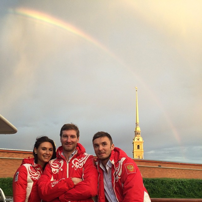 На снимках с вечеринок форума Ульяна замечена не была, зато Фрол неустанно делал фото Сергеенко с видами родного города.