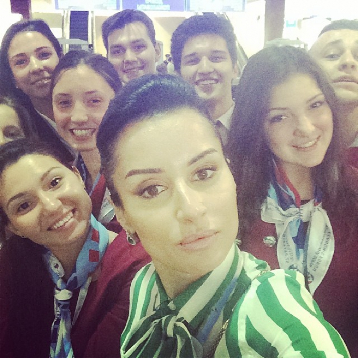В павильоне «Ленэкспо» Тина не удержалась и сделала «голливудский селфи» с волонтерами форума.